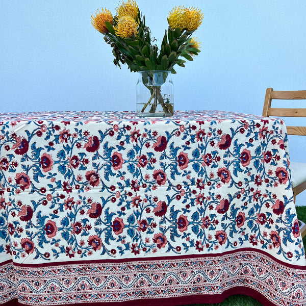 Product type: Hand Block Printed table cloths rectangular and round all sizes. Cornflower blue