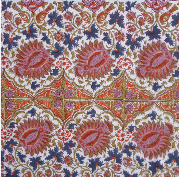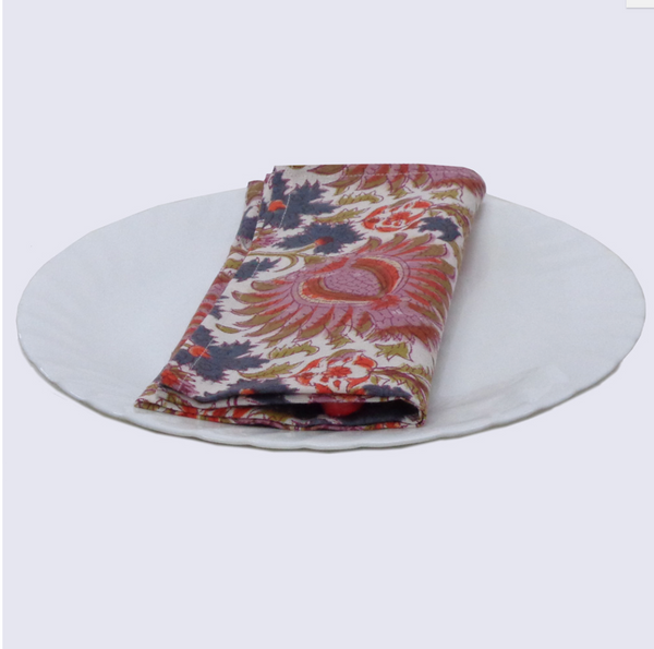 More photos to come! Complete your indoor/outdoor table with napkins as a small, extravagant luxury. Made from 100% cotton and hand block printed in a gorgeous motif of dusky pinks, orange and blue, these napkins add a beautiful, personal touch...View more