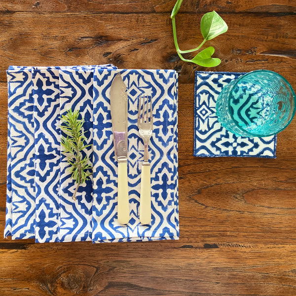 Product type: Hand Block Printed table cloths rectangular and round all sizes. Cornflower blue