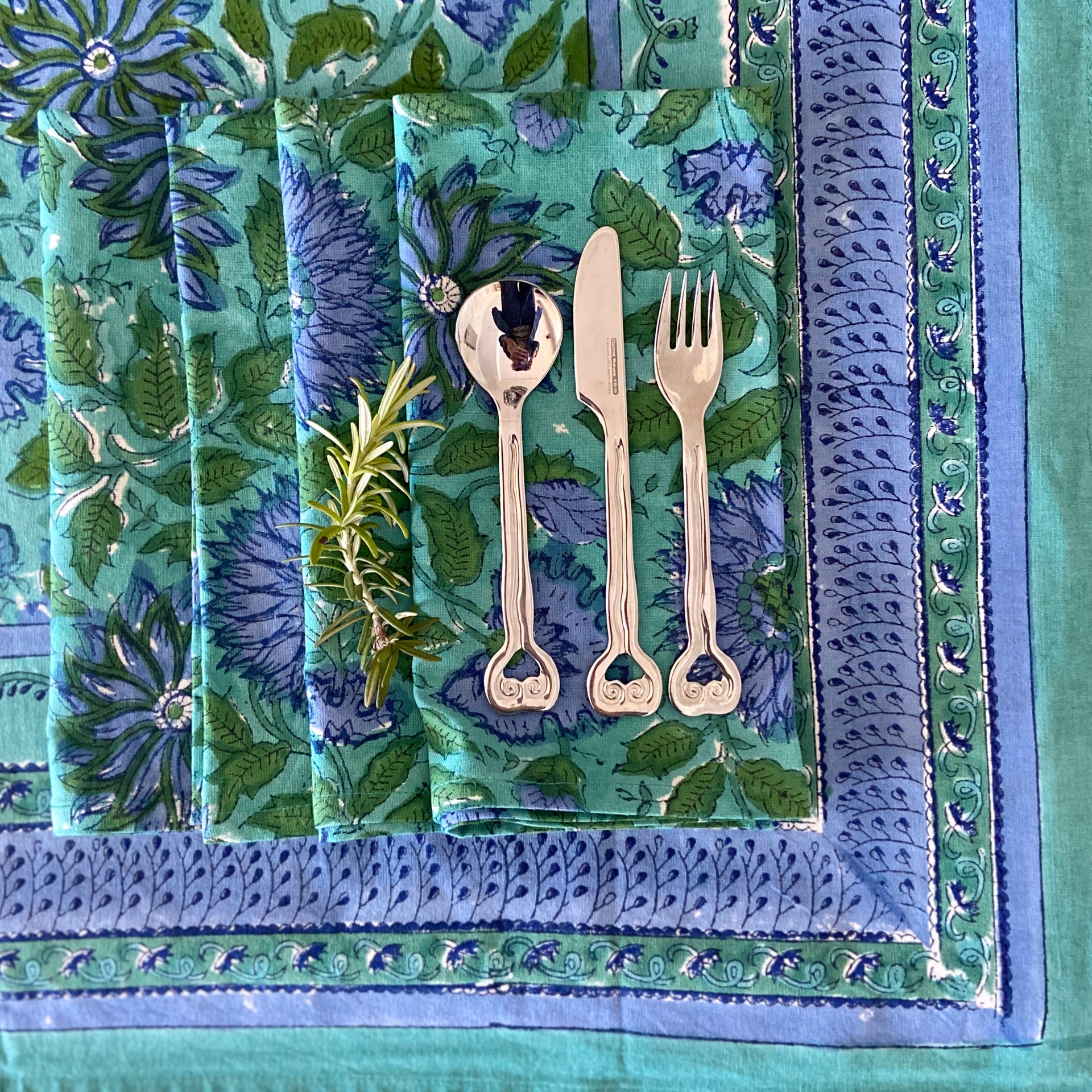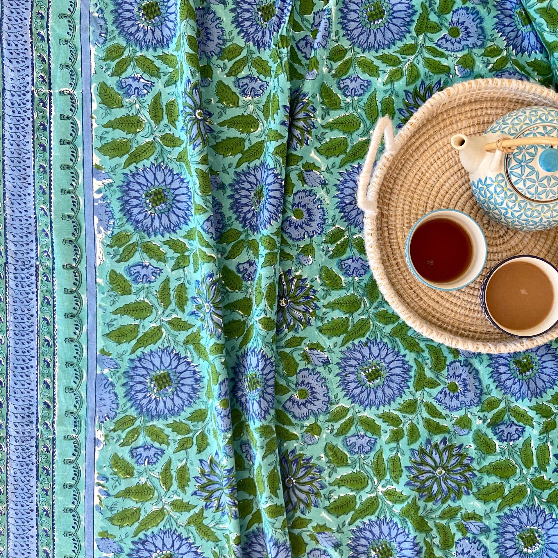 Product type: Hand Block Printed table cloths rectangular and round all sizes. Cornflower blue