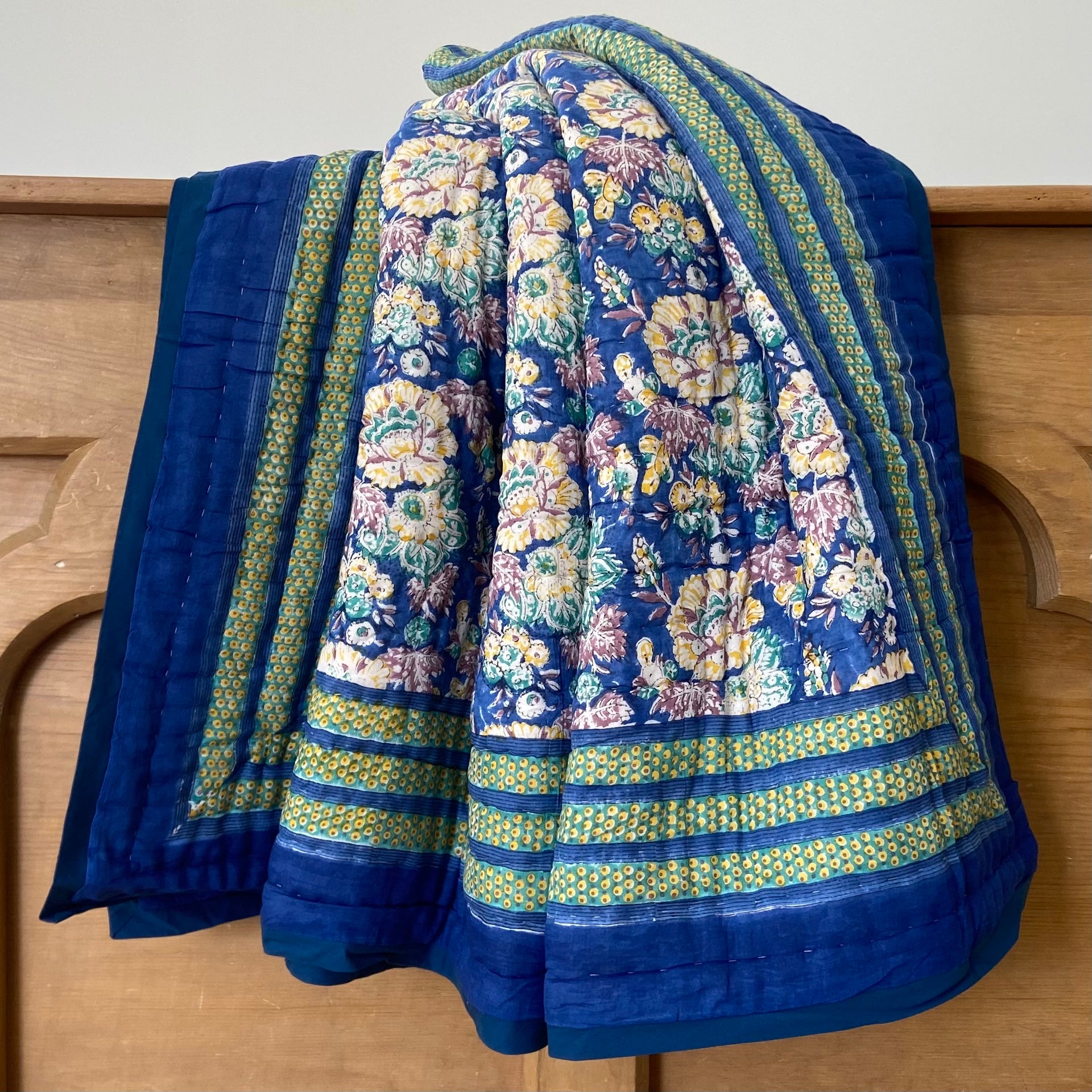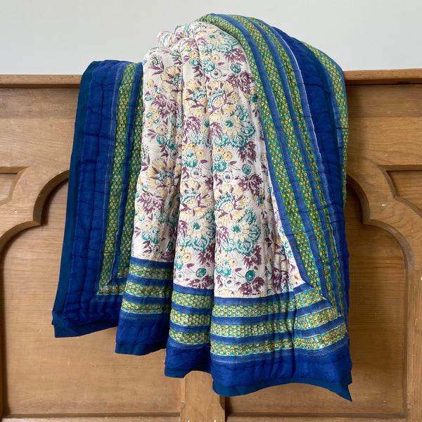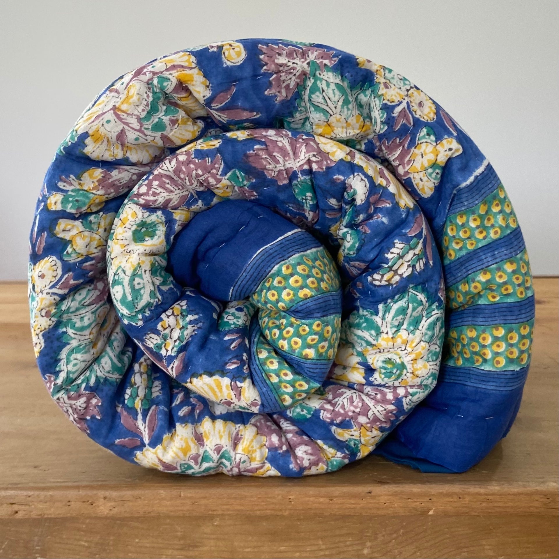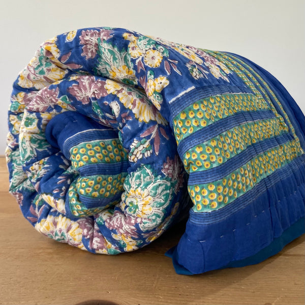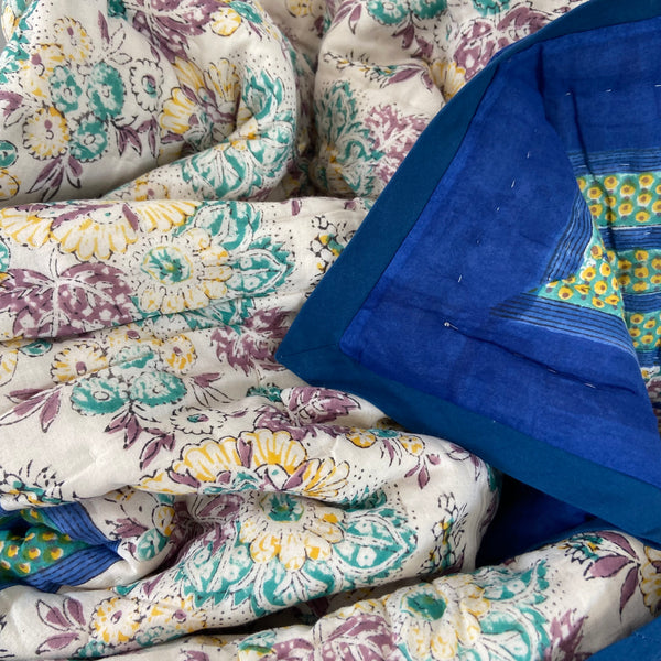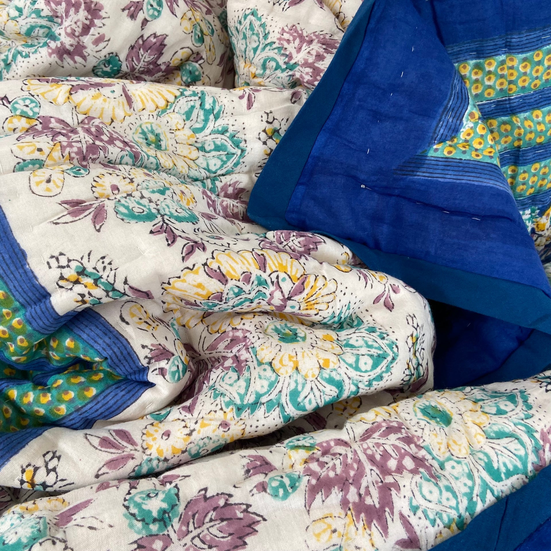 Handmade Indian Cotton Quilt- Gerbera Sky (TWINx1 remaining)