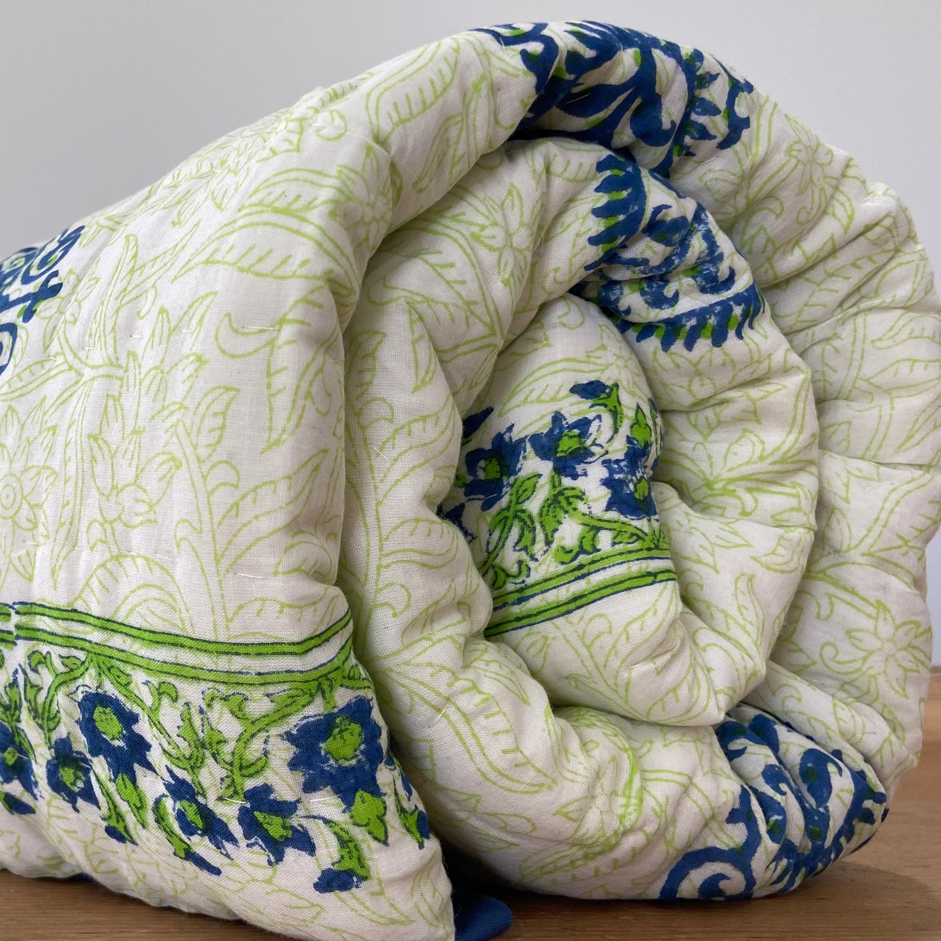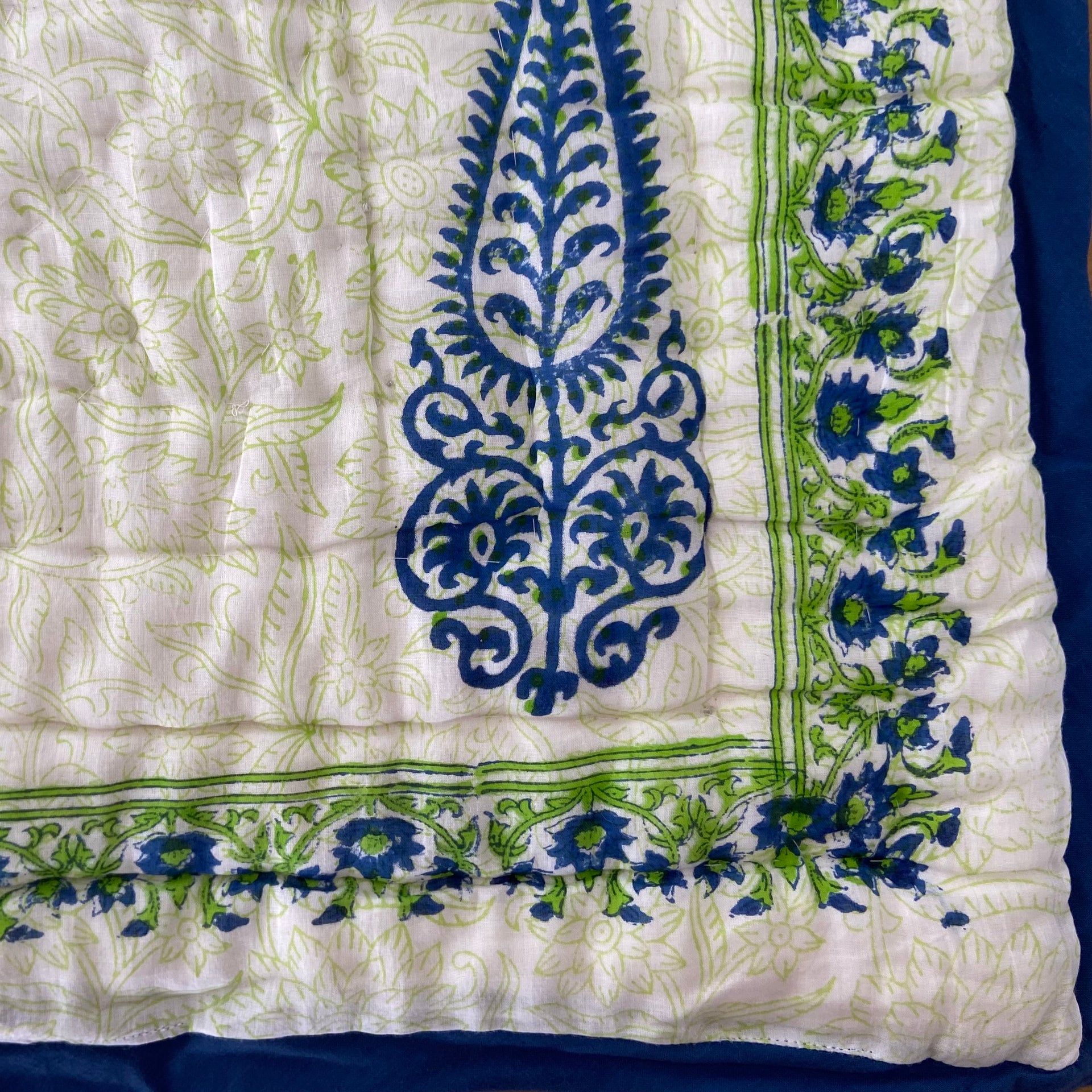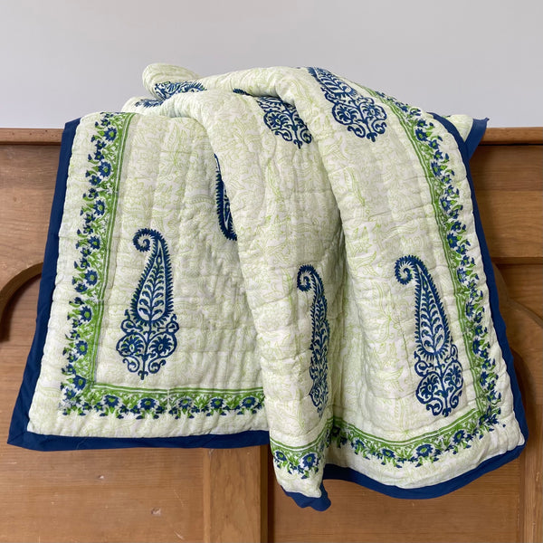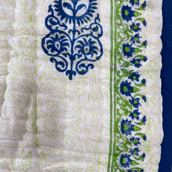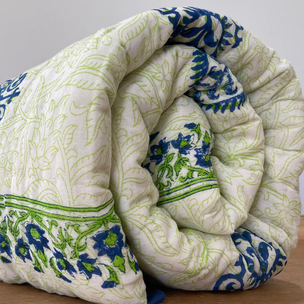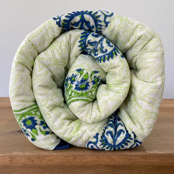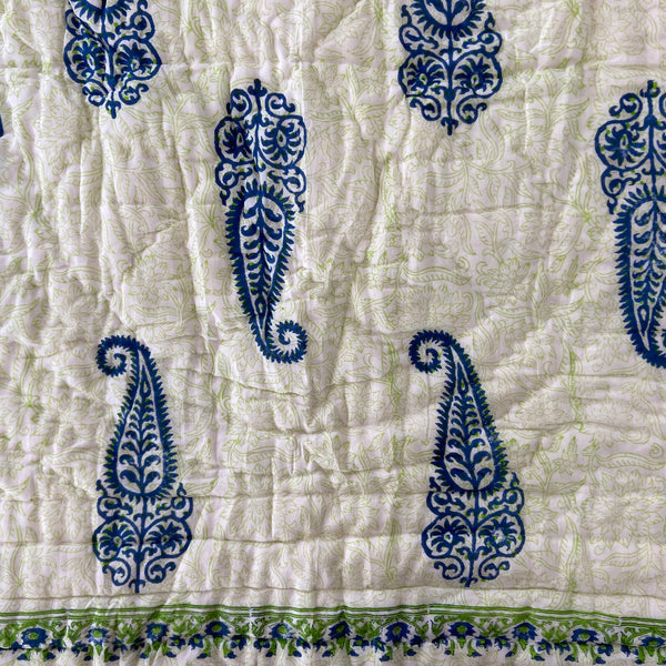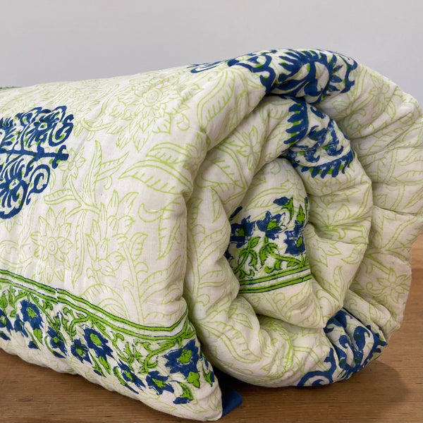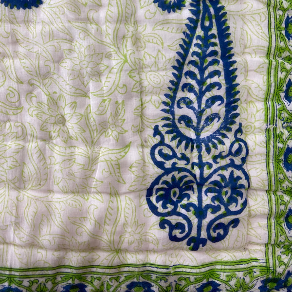 Handmade Indian Cotton Quilt- Gulabo Blue