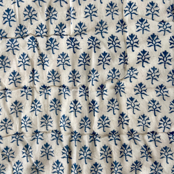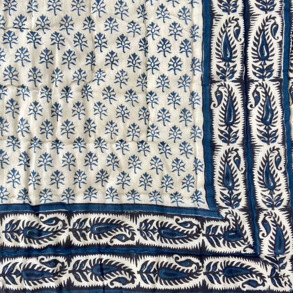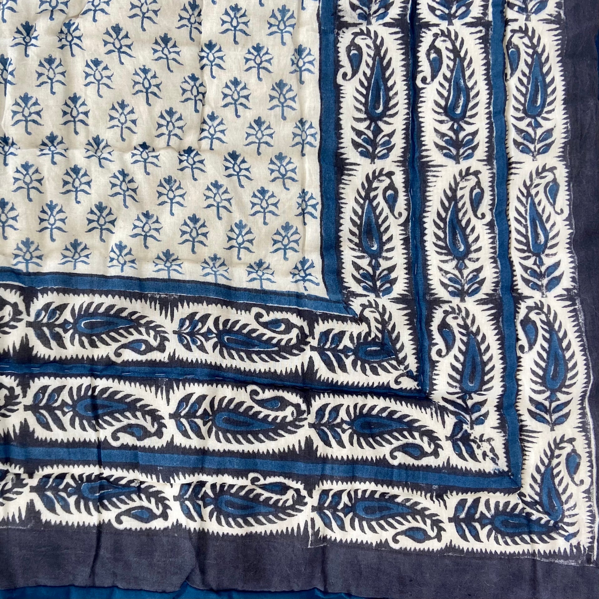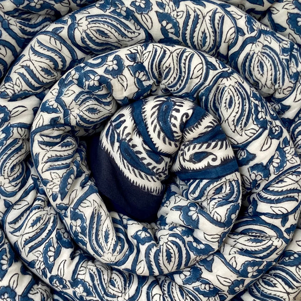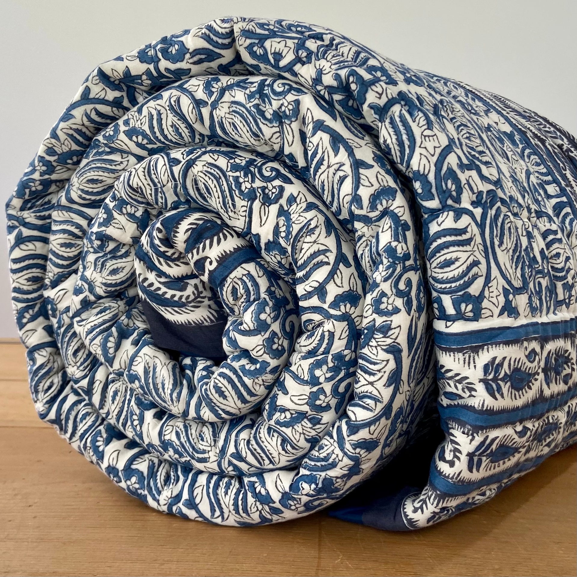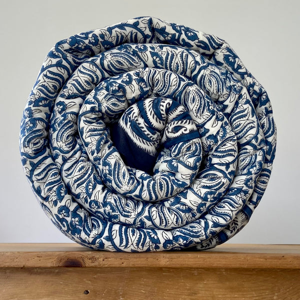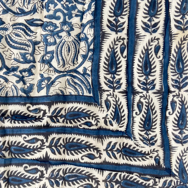 Handmade Indian Cotton Quilt- Two Lotus Blue