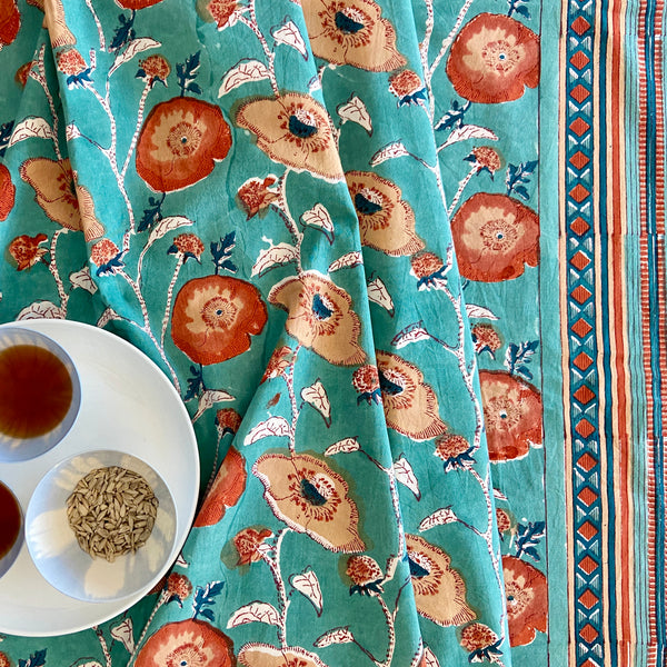 Product type: Hand Block Printed table cloths rectangular and round all sizes. Cornflower blue