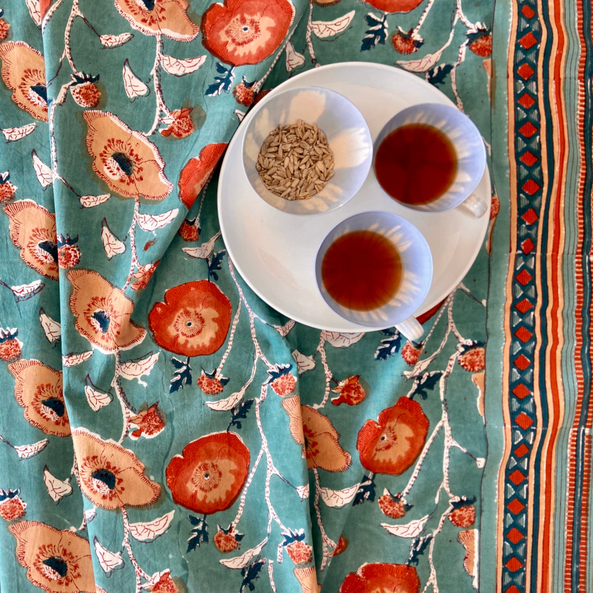 Product type: hand Block Printed Table Cloths rectangular and round Winter Fall Tree