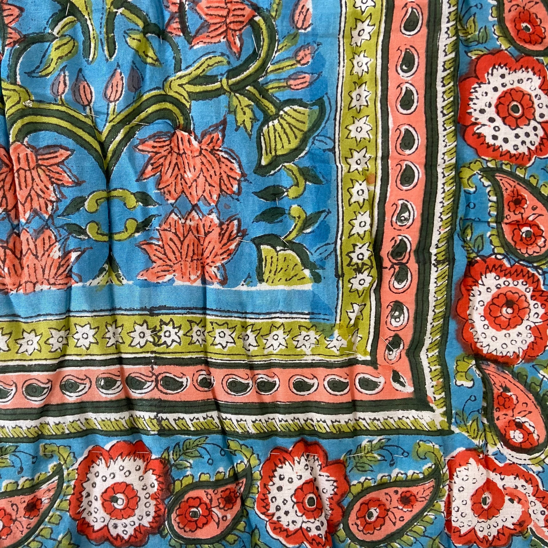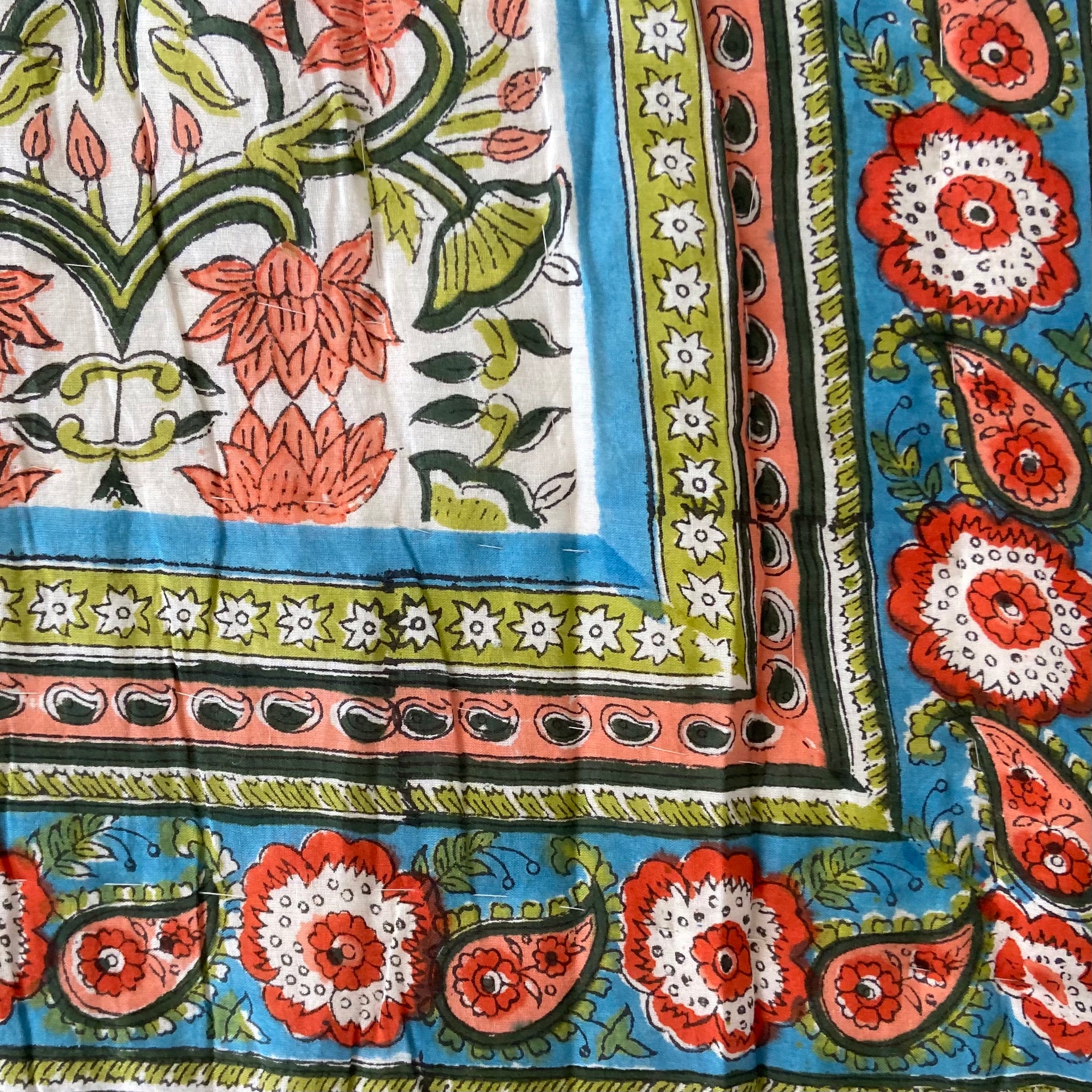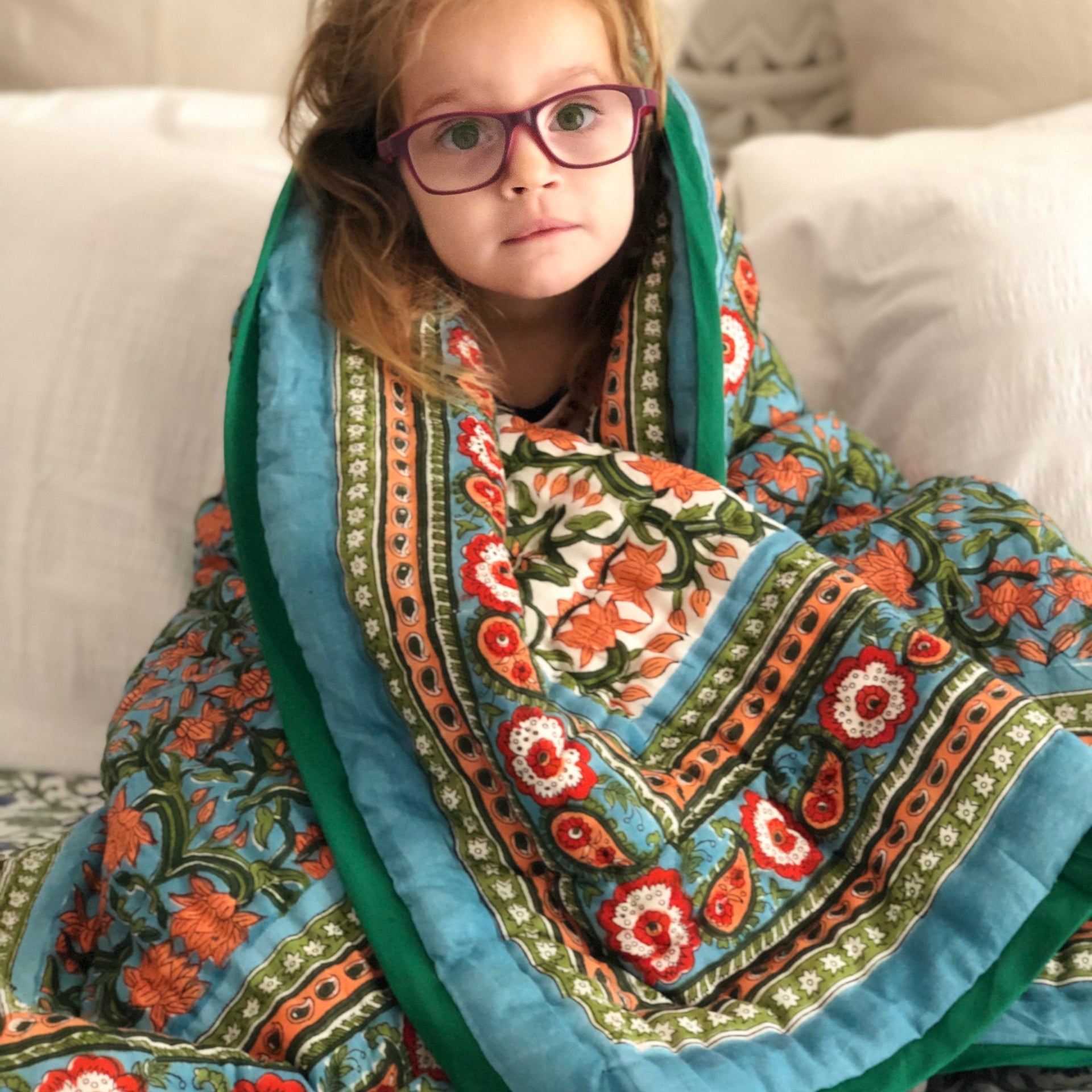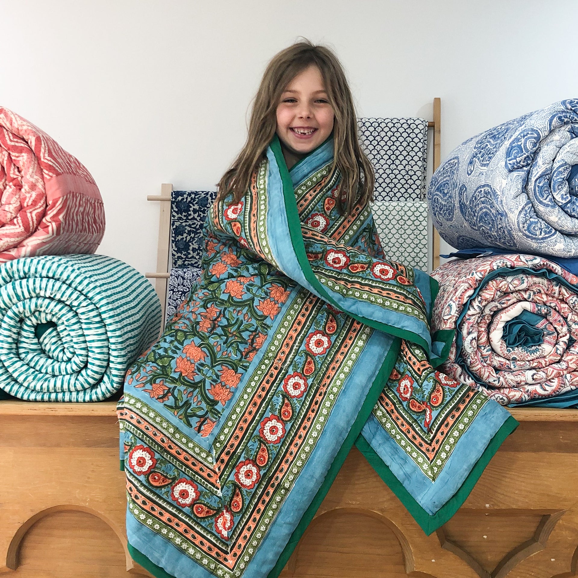 These quilts are lovingly hand-block printed by skilled artisans in Jaipur, India using traditional techniques. They are then filled with natural cotton padding and hand quilted by a skilled group of beautiful ladies in a labour of love that shines through in these beautiful heirloom quilts. Due to their handcrafted nature, irregularities may occur rendering each piece unique.