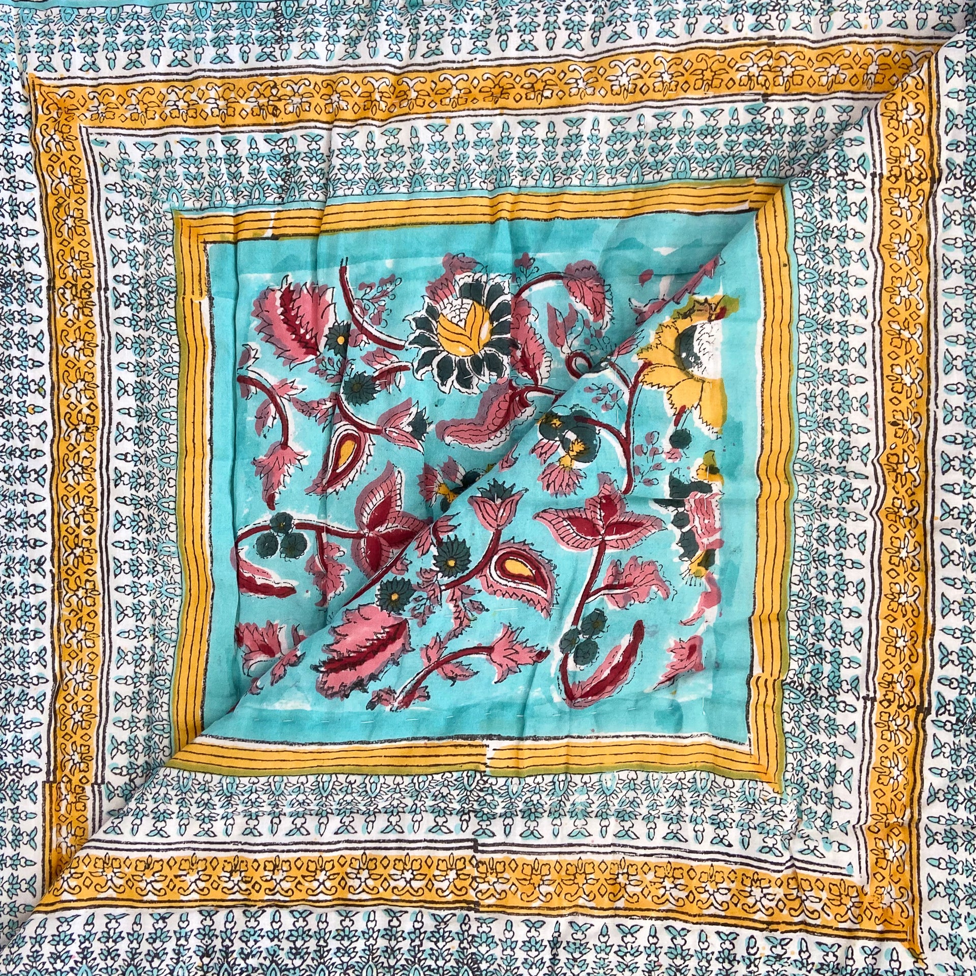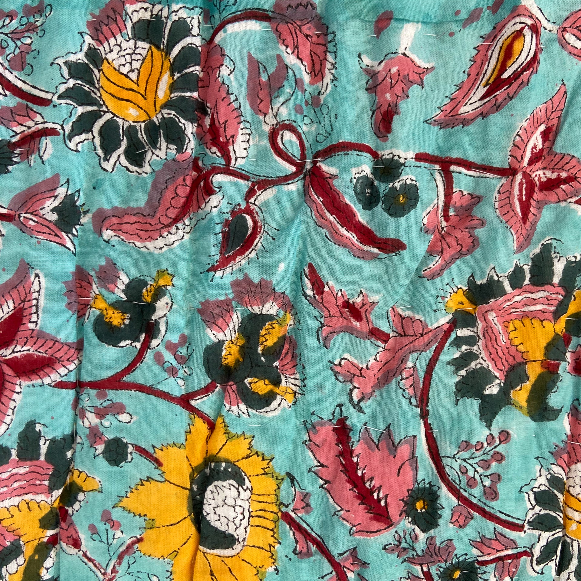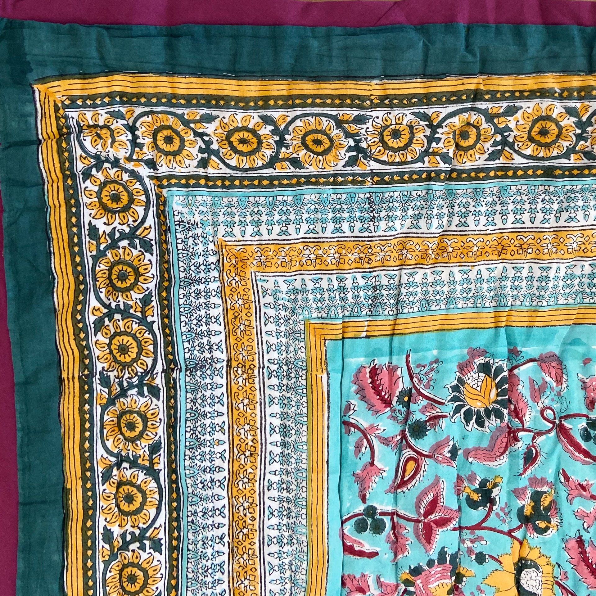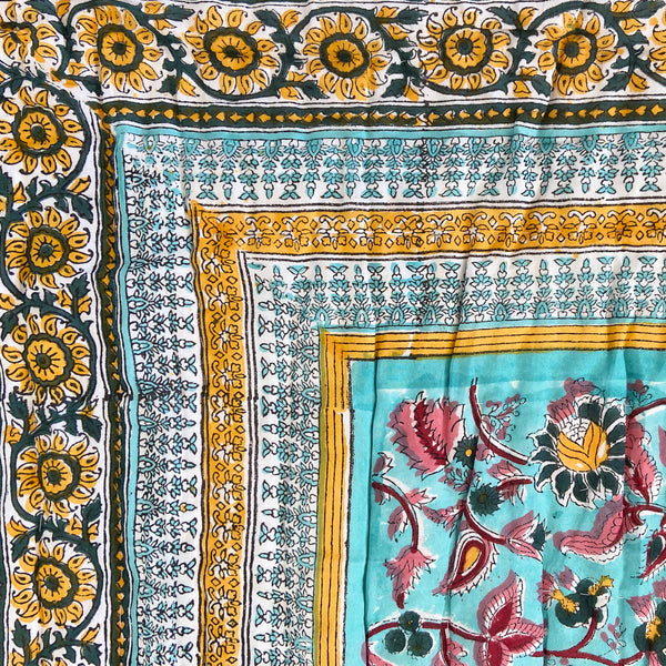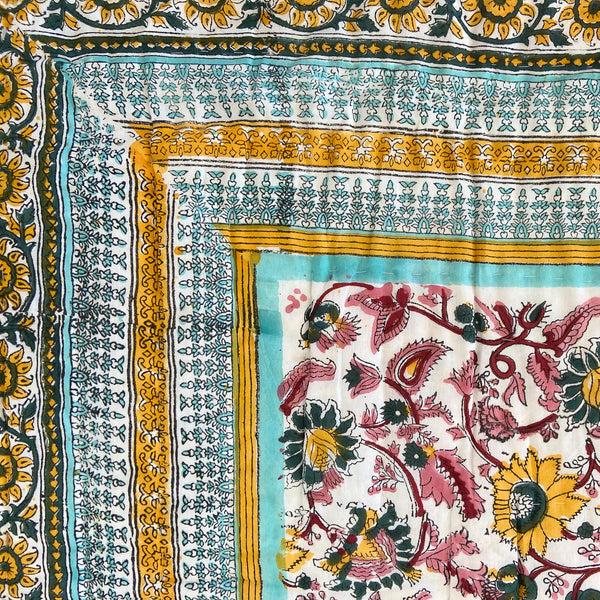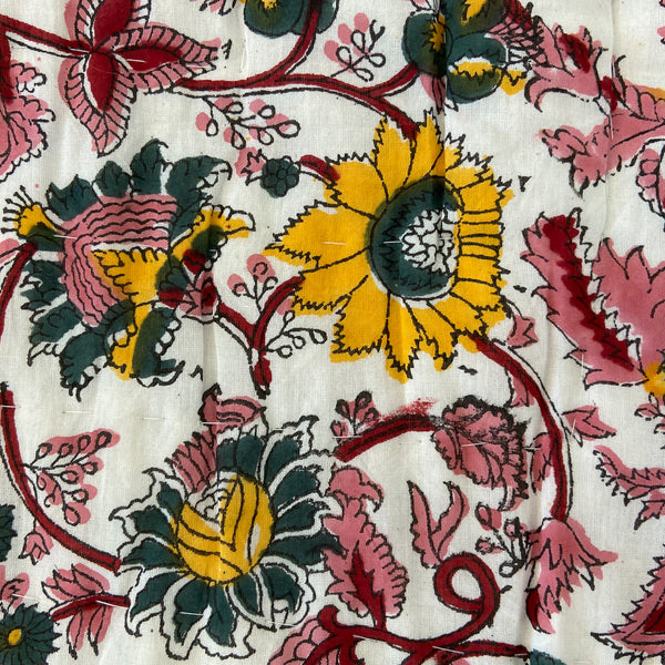 This lovely quilt features floral designs on both sides. A riot of colour in pink, yellow, jade, and green with a jade background on one side and white background on the reverse. Both sides have a deep decorative border. Beautiful...View more