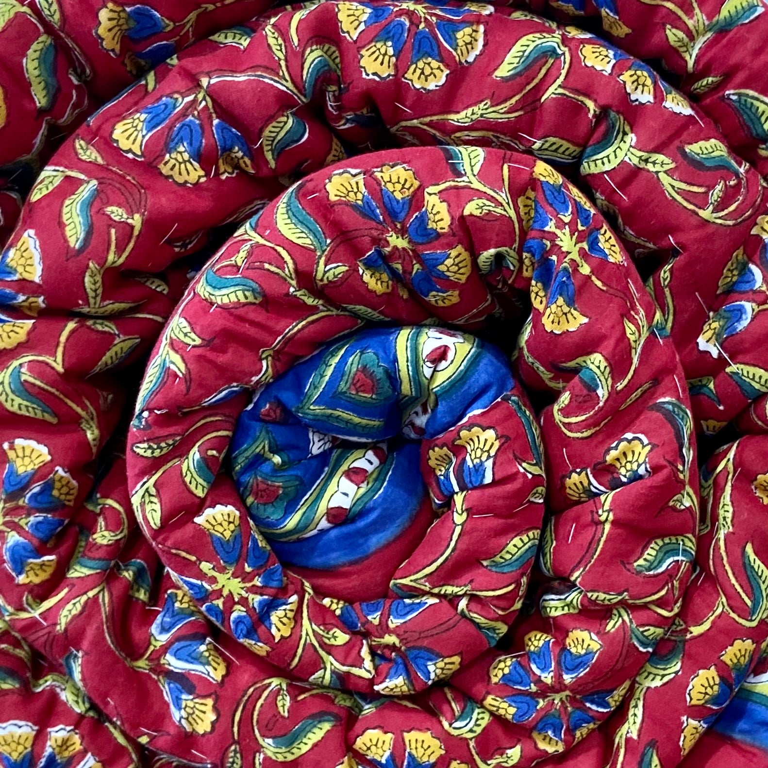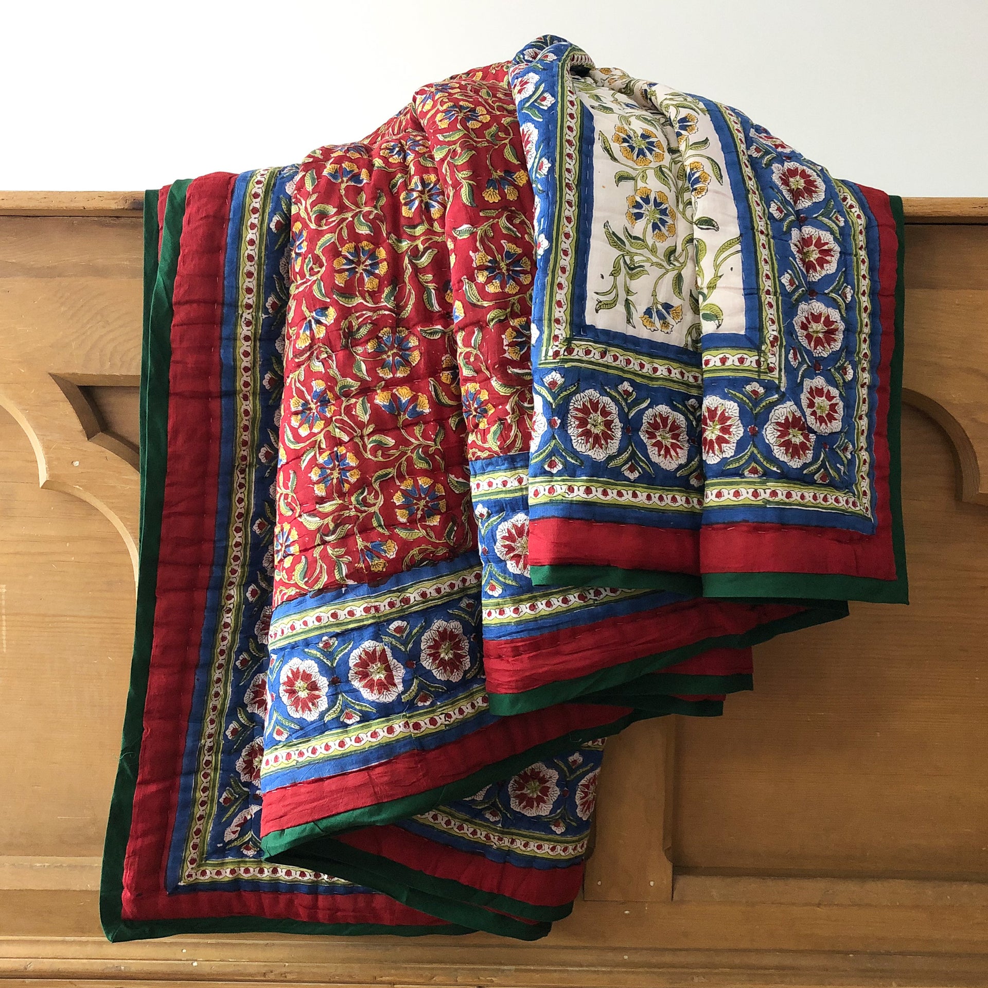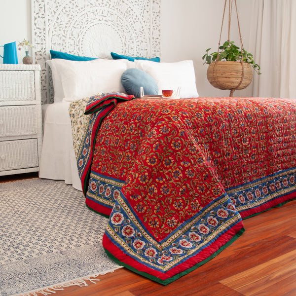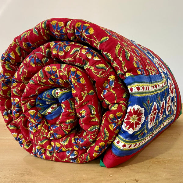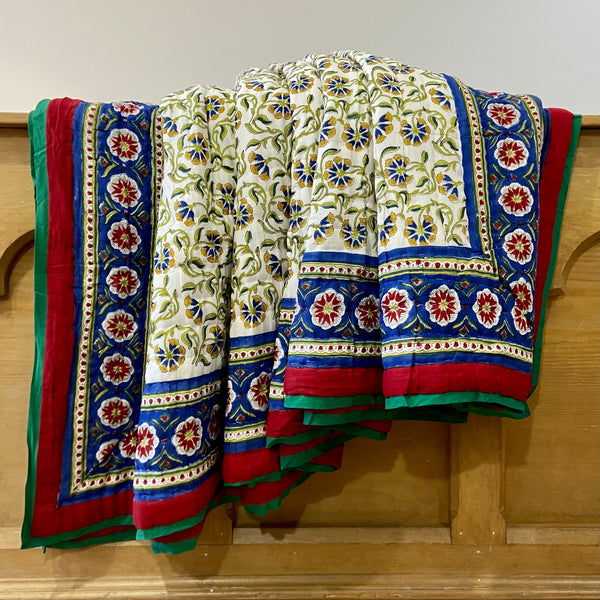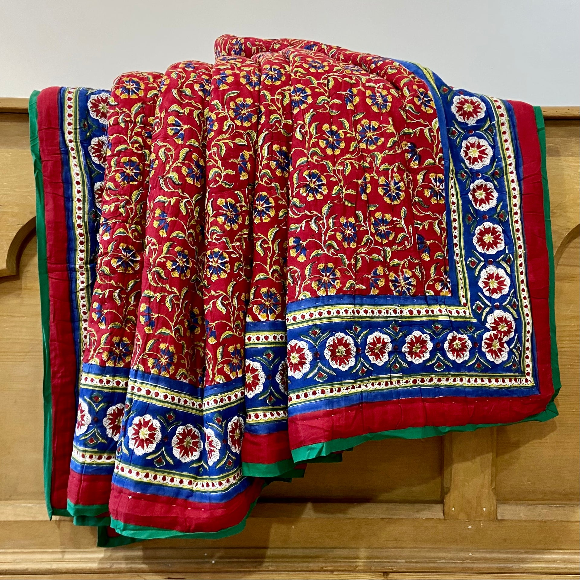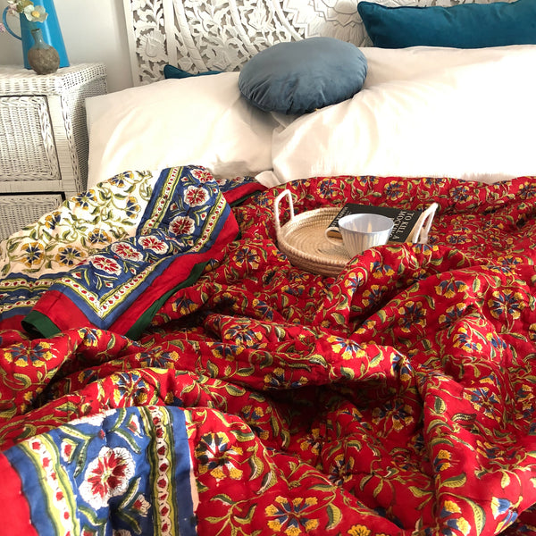 Quilt, hand made, hand block printed, 100% cotton, fair trade, slow fashion, reversible,