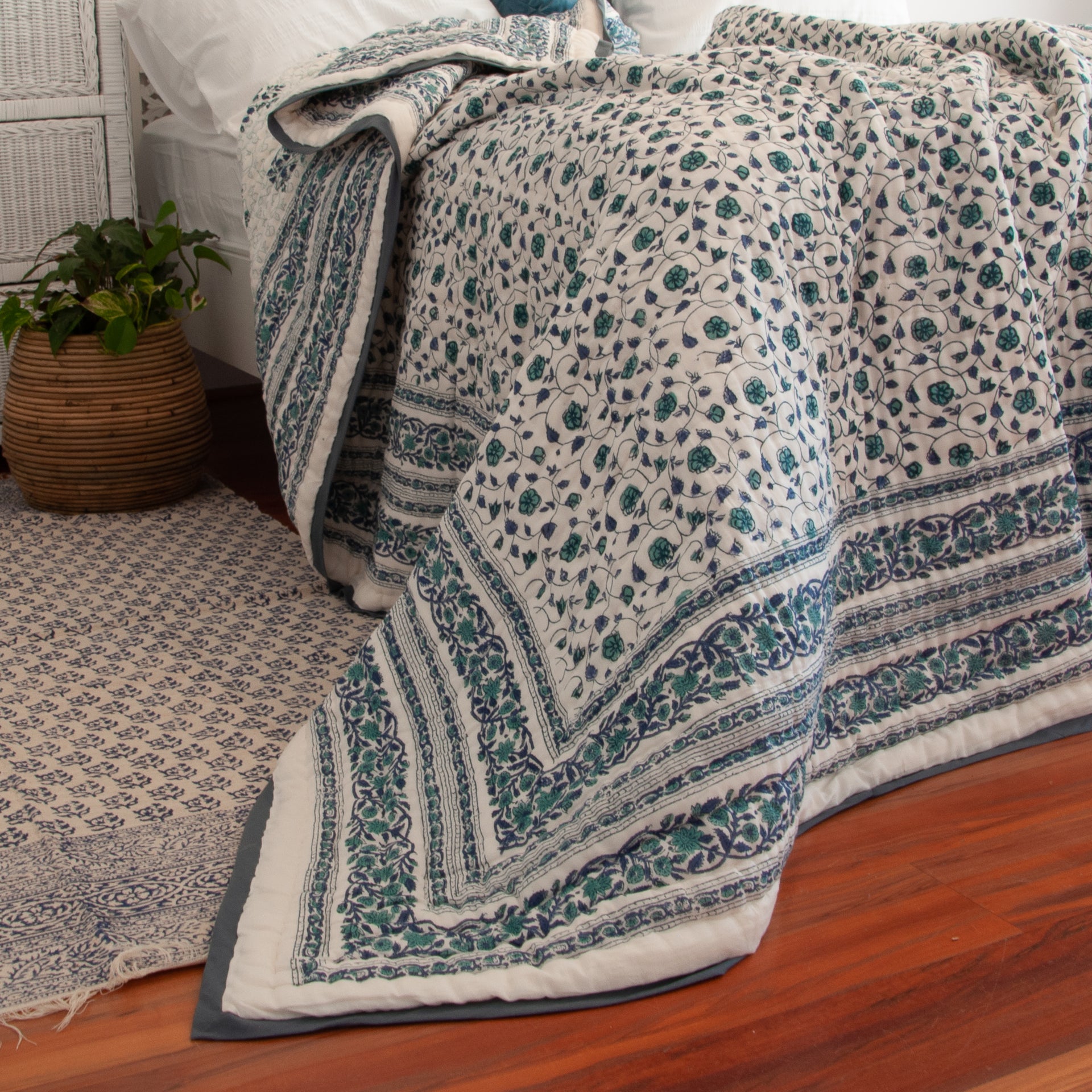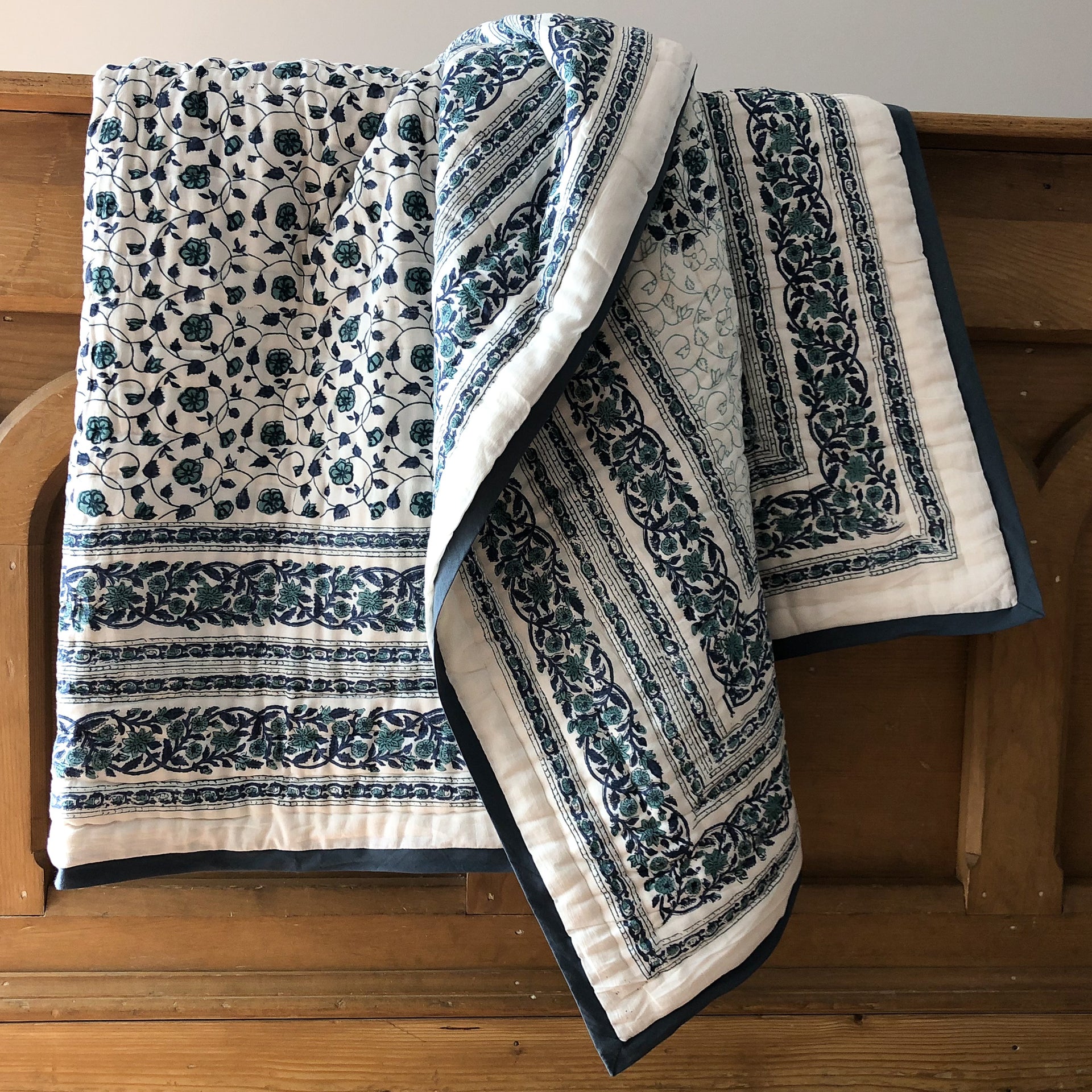 hand block printed 100% soft cotton filled quilt