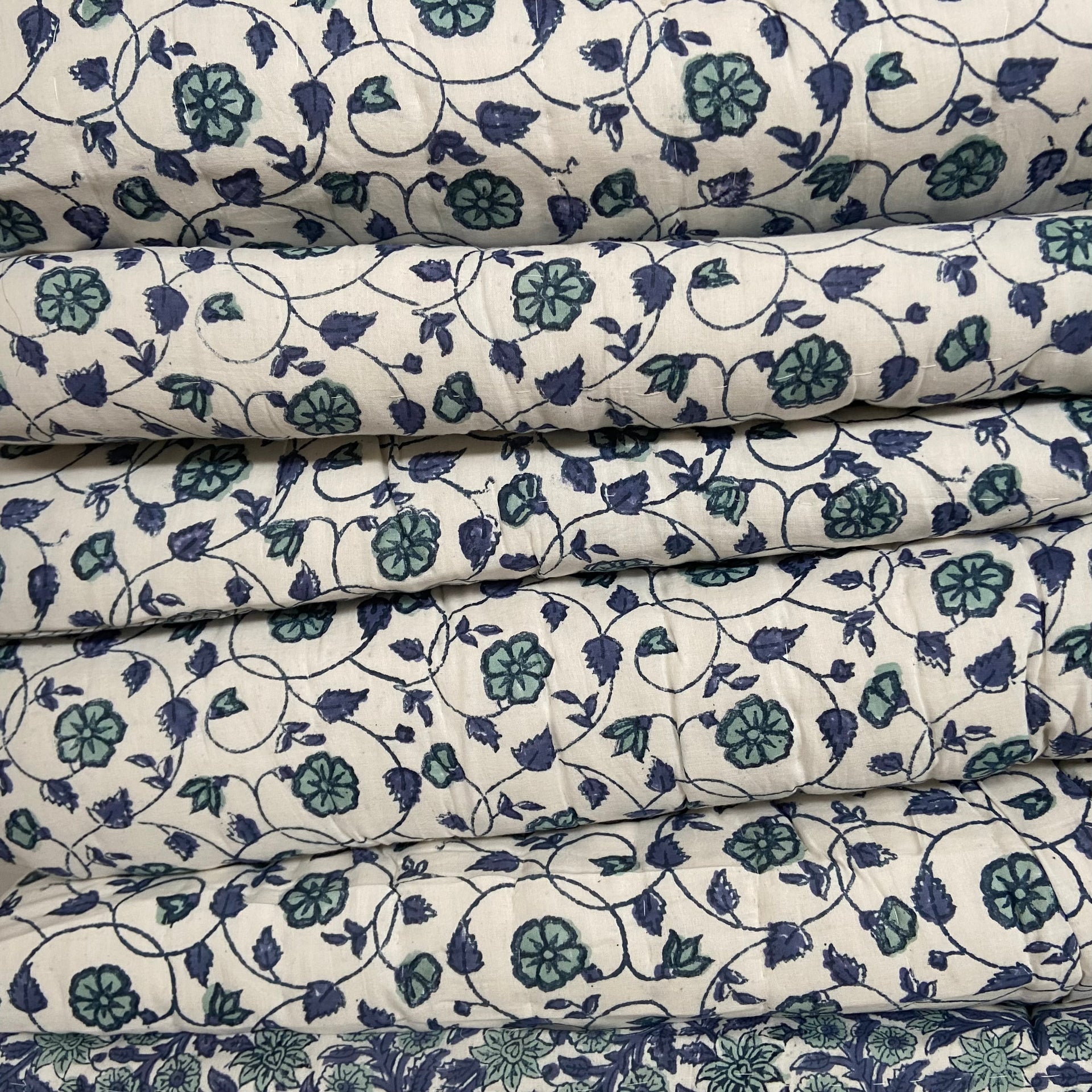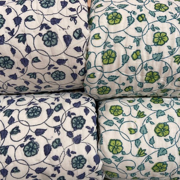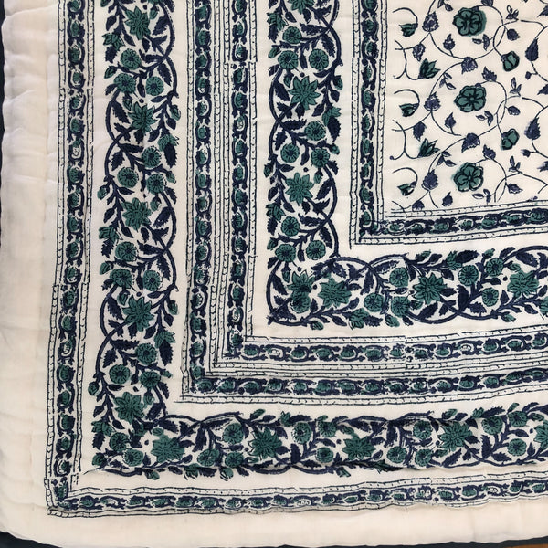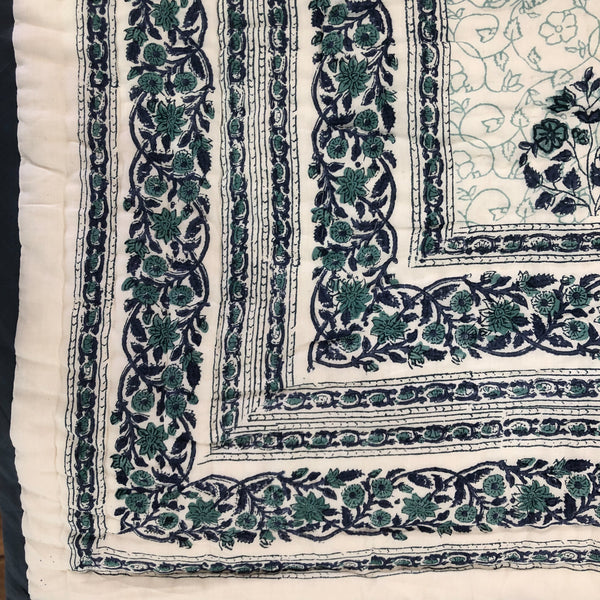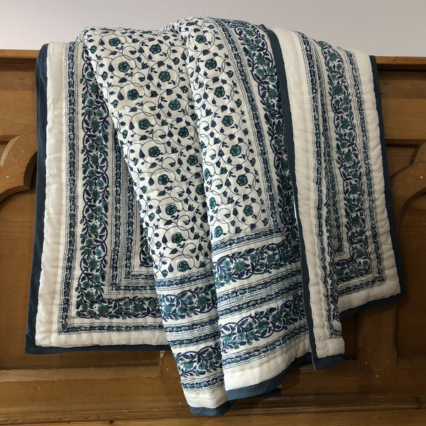 Handmade Indian Cotton Quilt- Floral Kali Blue
