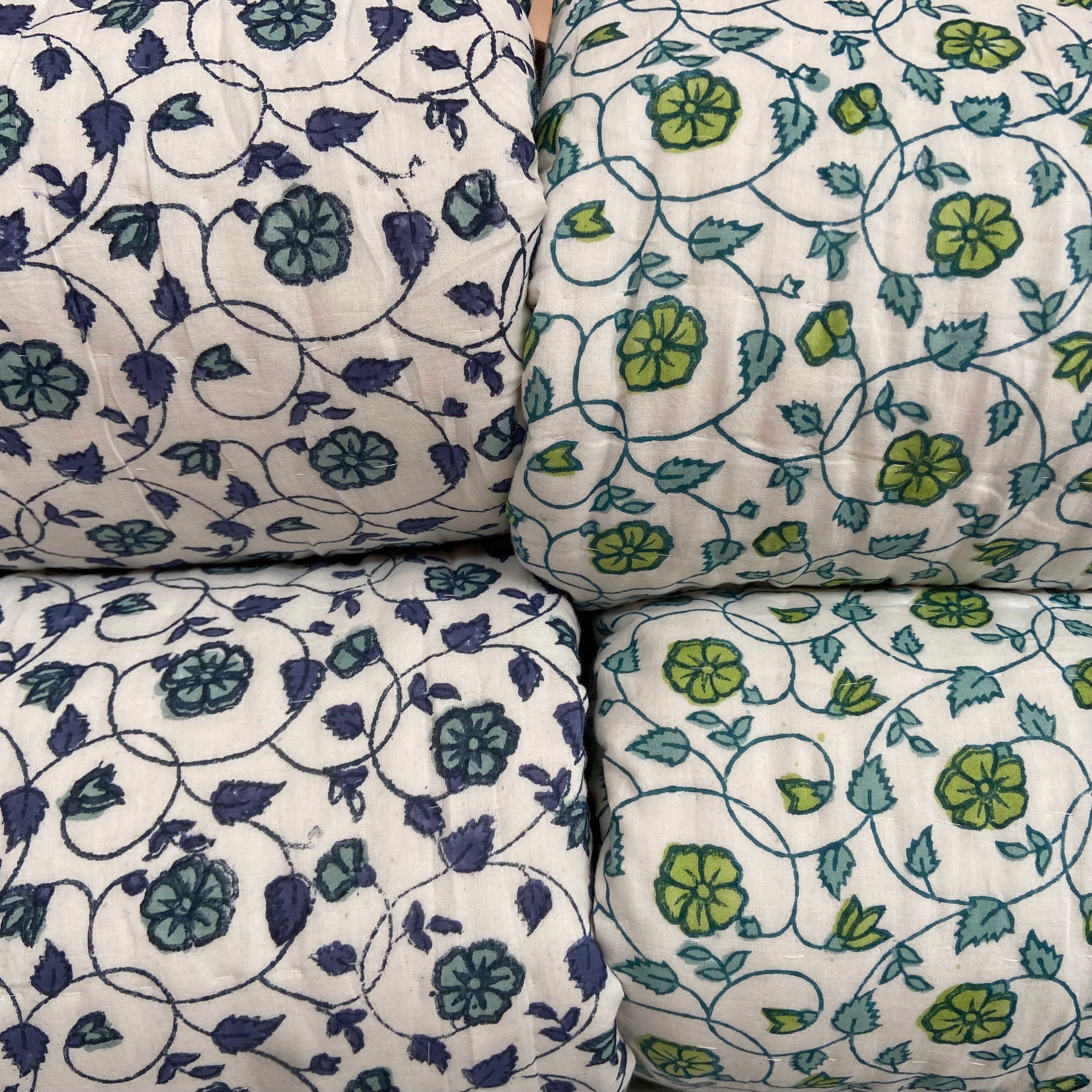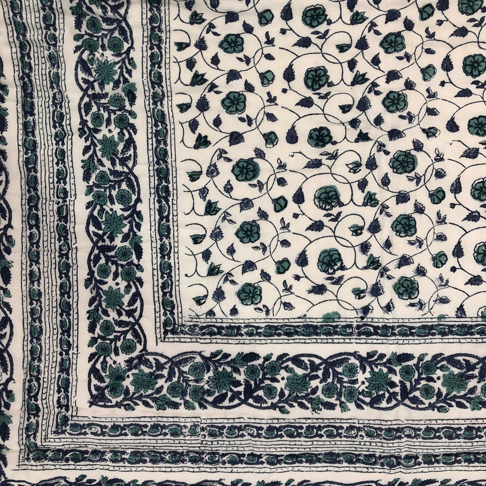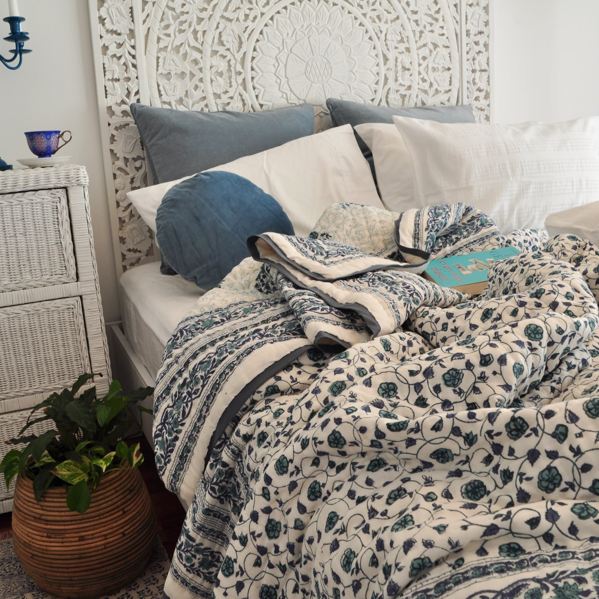 Handmade Indian Cotton Quilt- Floral Kali Blue