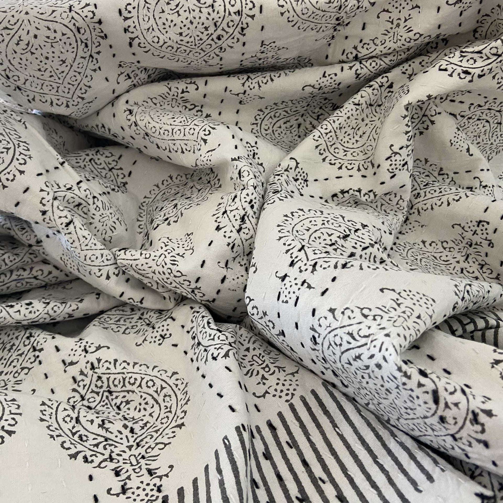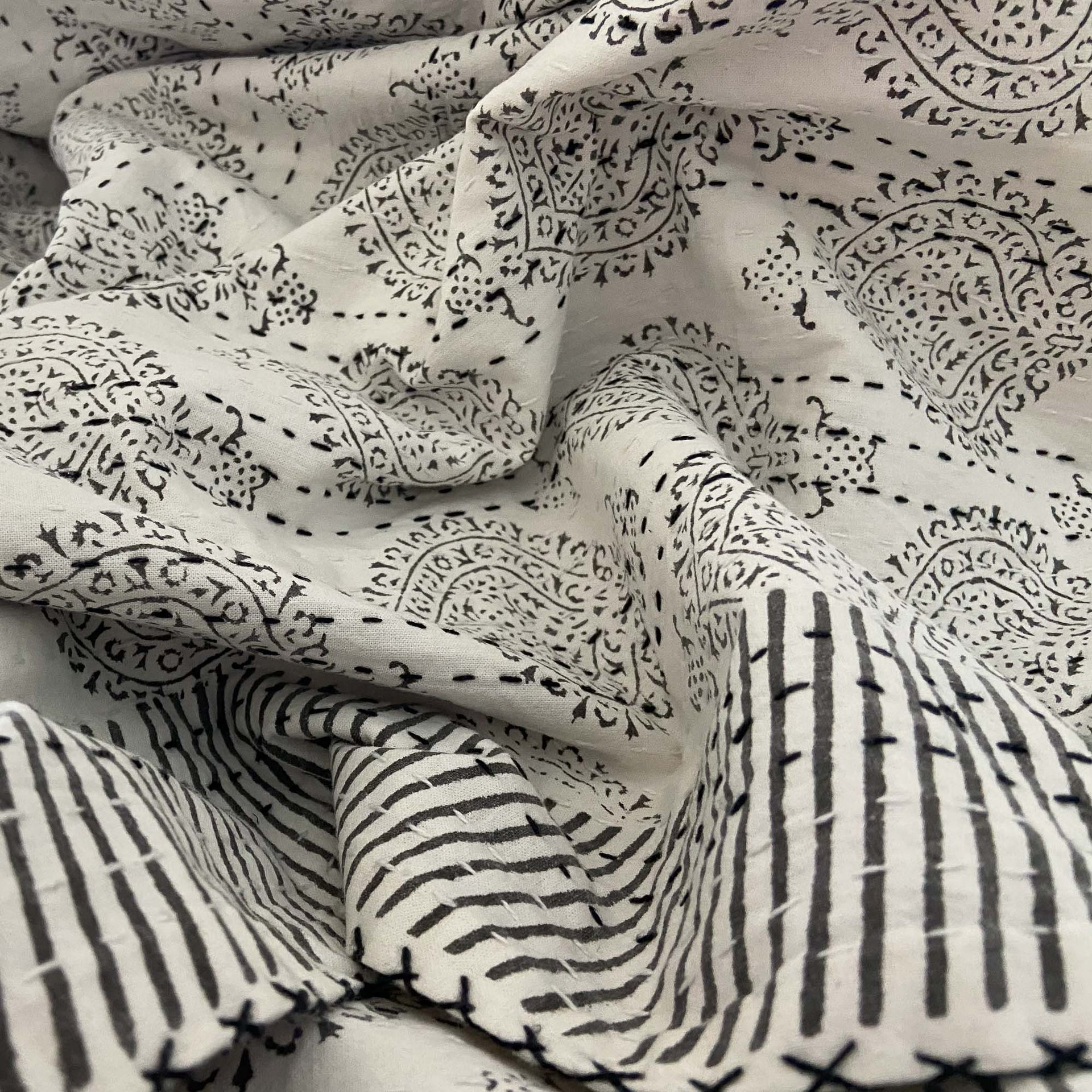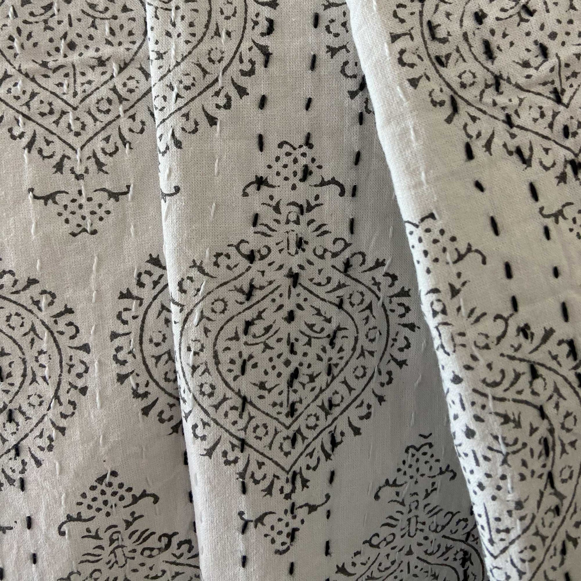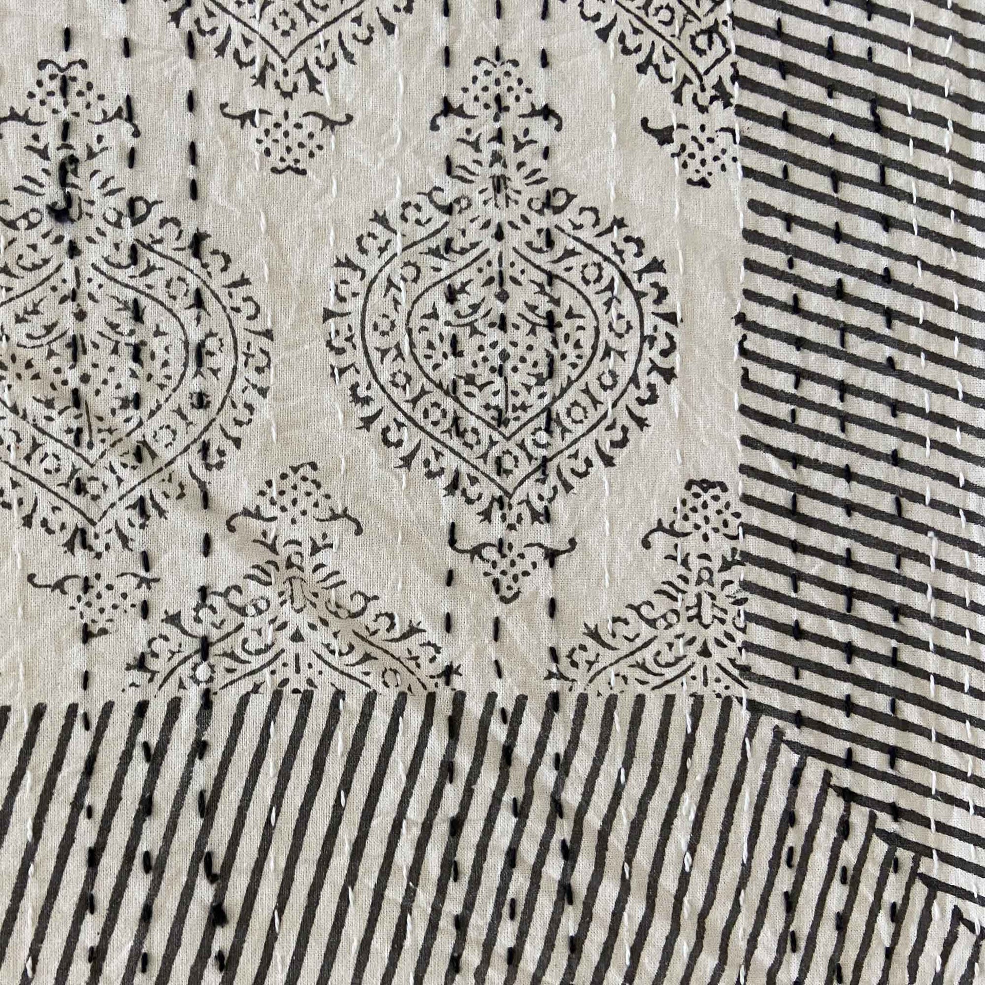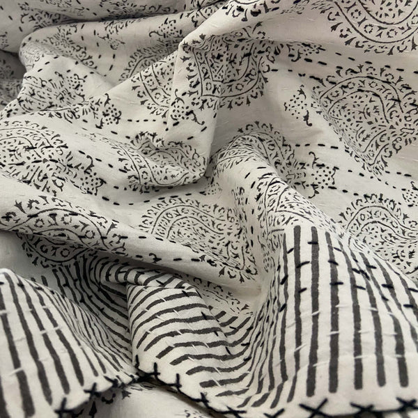 Hand Block Printed Kantha - Smoky Black