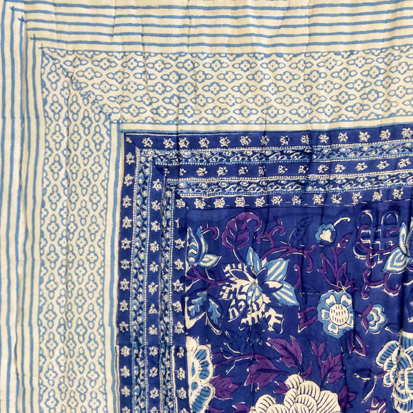 Handmade Indian Cotton Quilt- Beautiful Blue