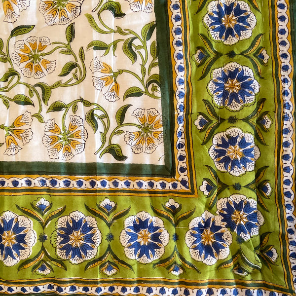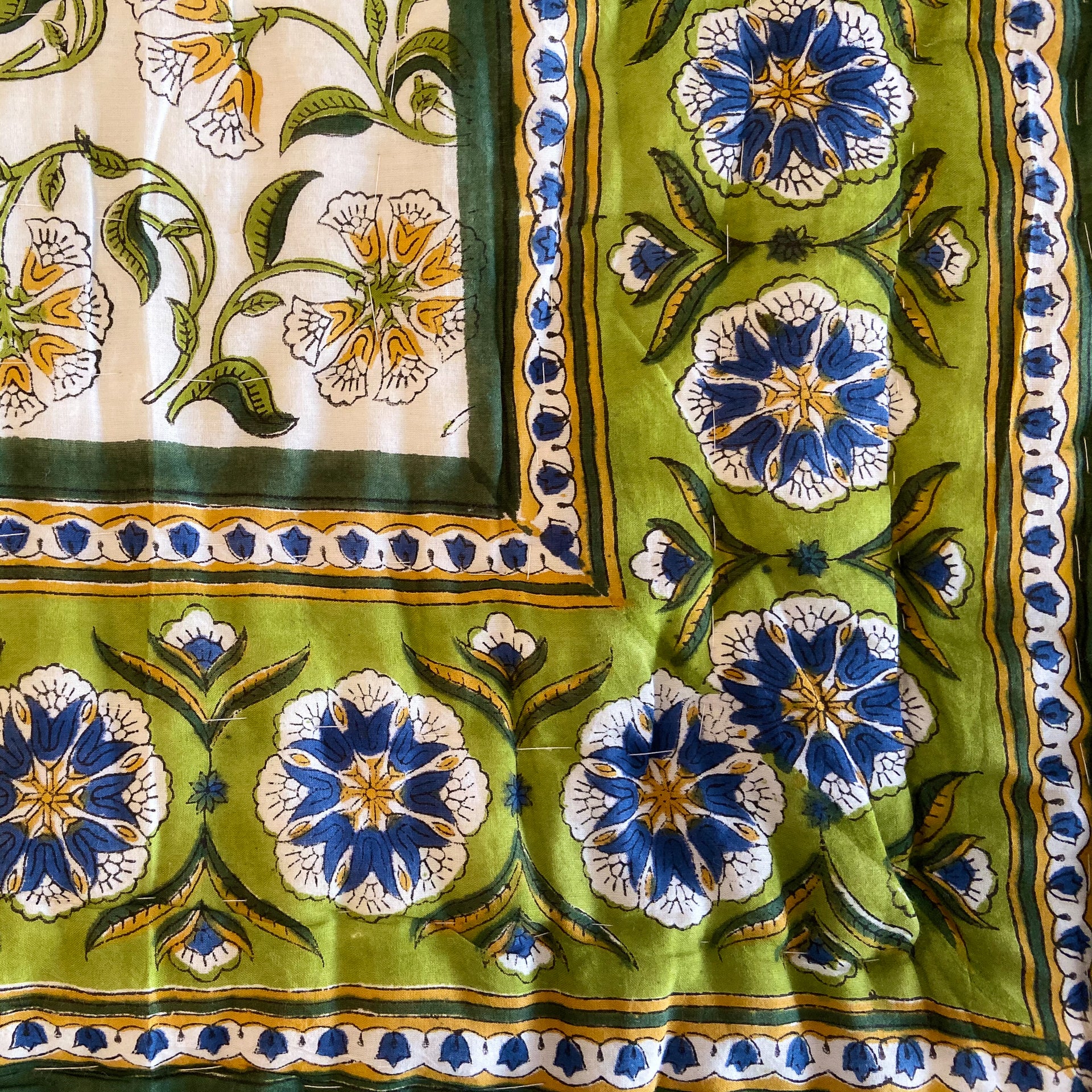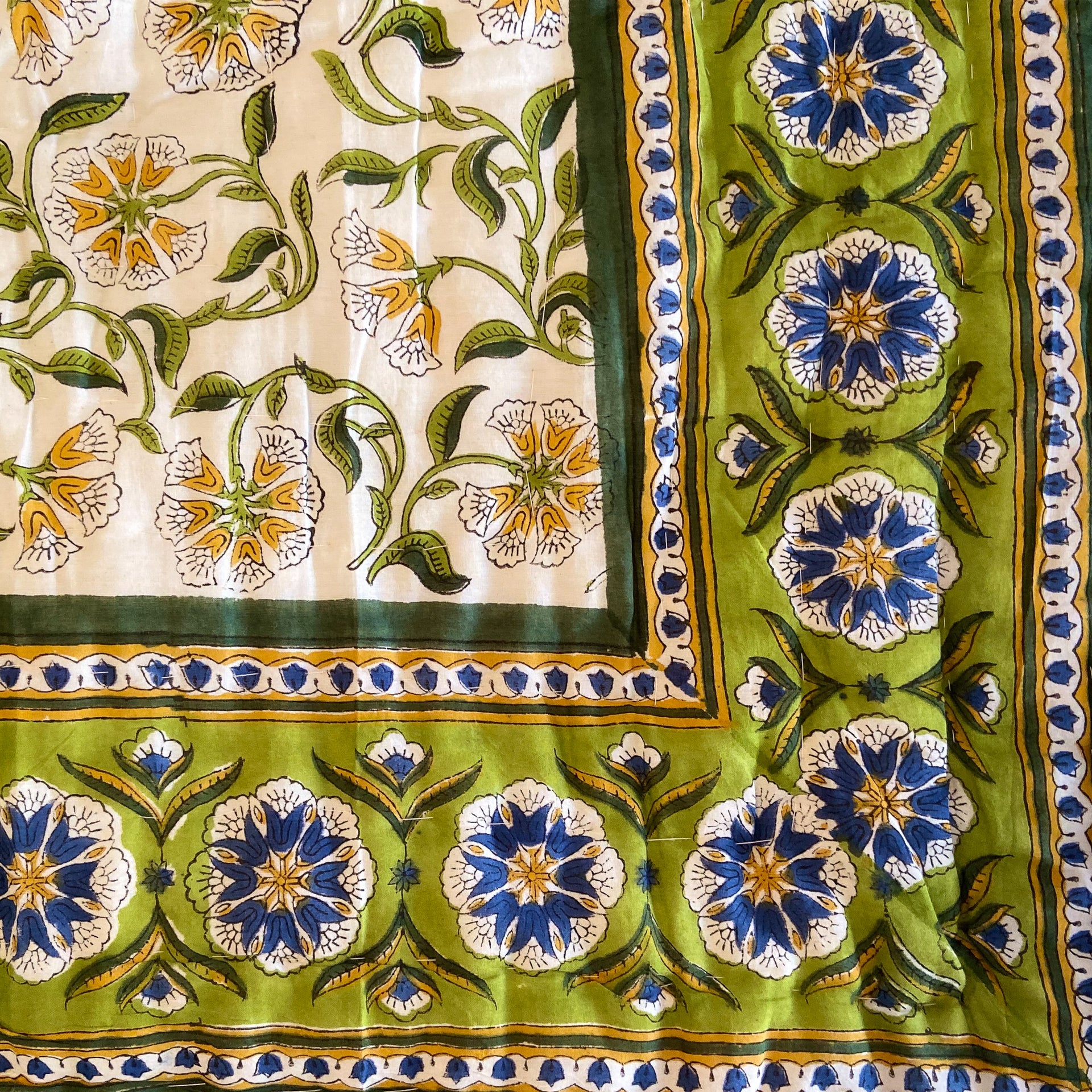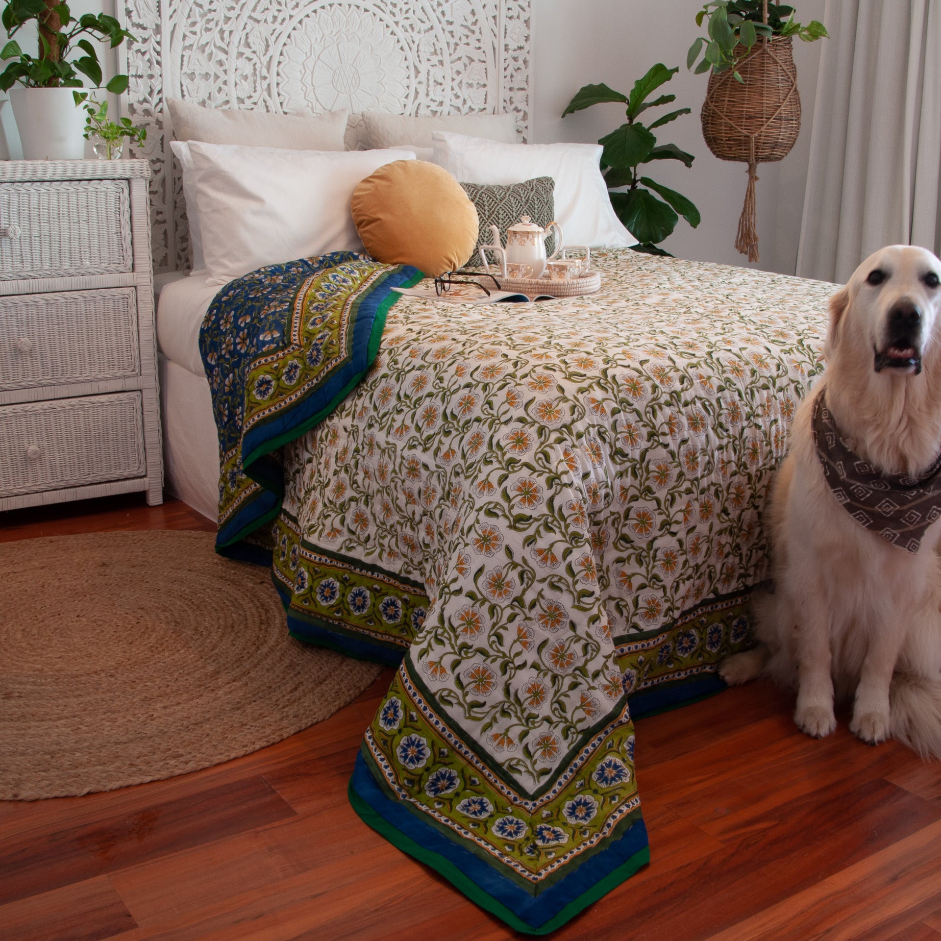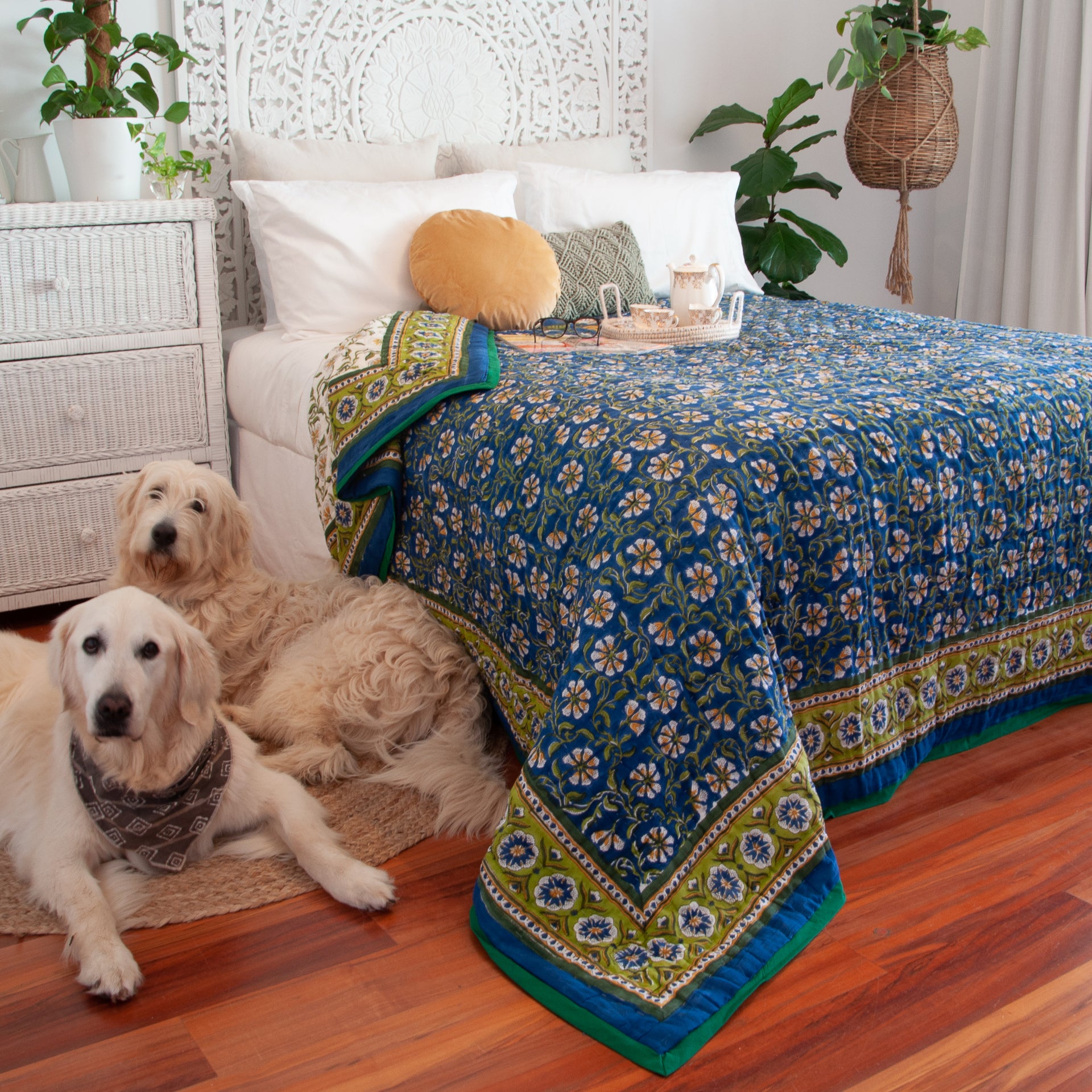 If you love colour, this is the quilt for you! Bright, rich blues and lime and soft green florals on one side with white, blue and green on the reverse. Both sides feature a deep complimentary border. Beautiful detailing and...View more