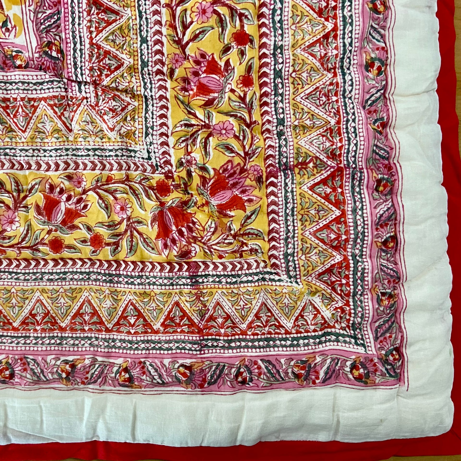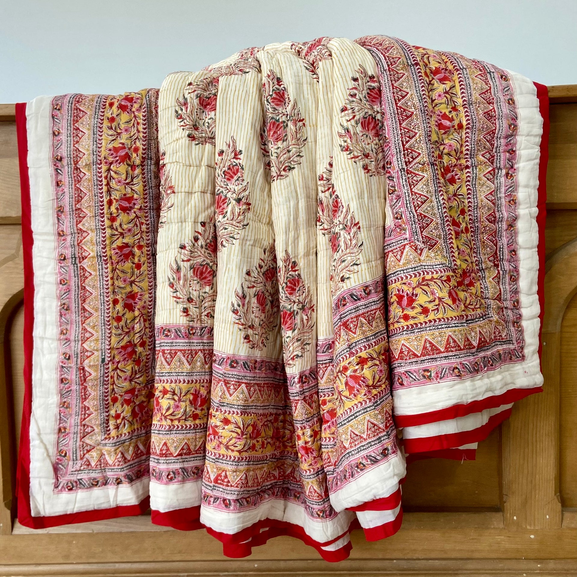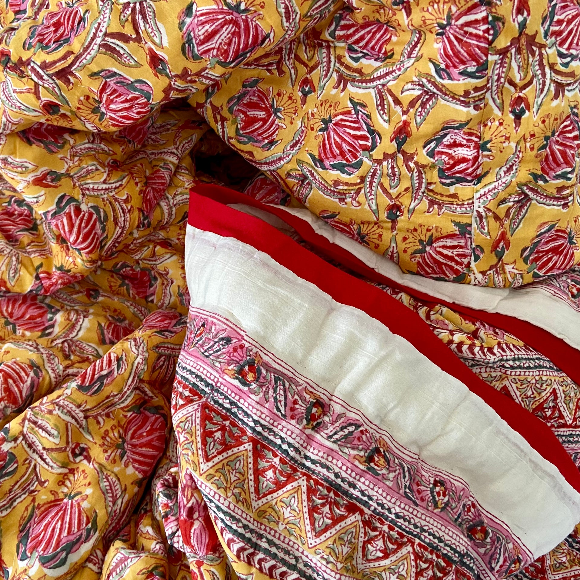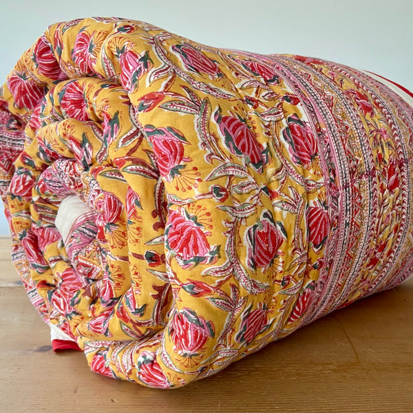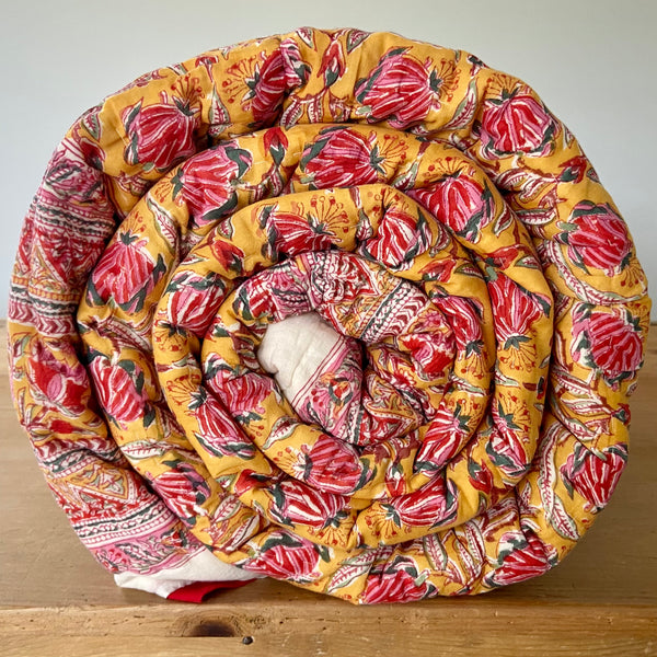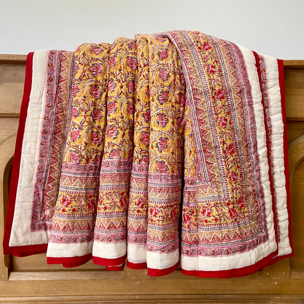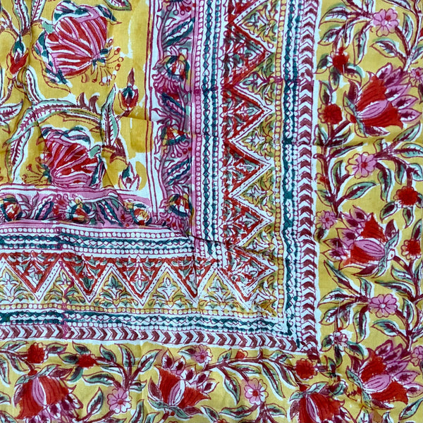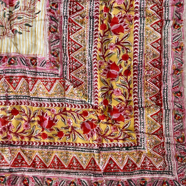 Beautiful King Indian cotton hand block printed bed quilt