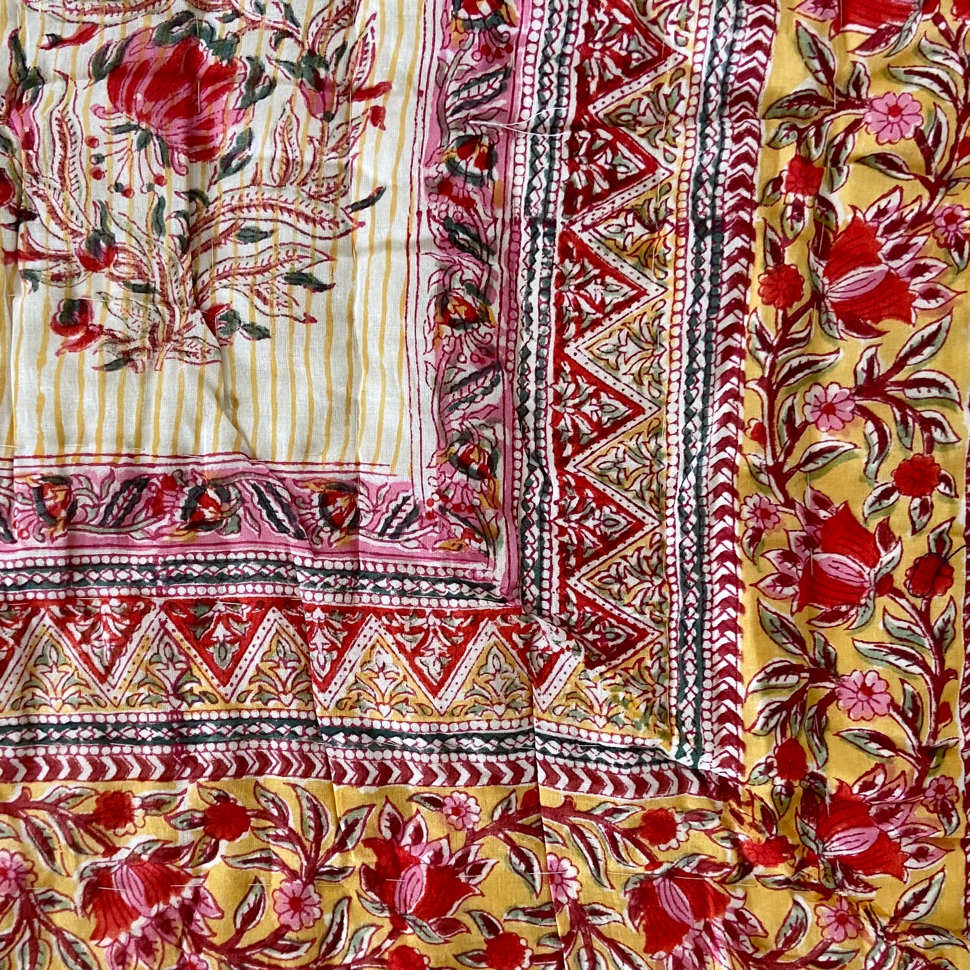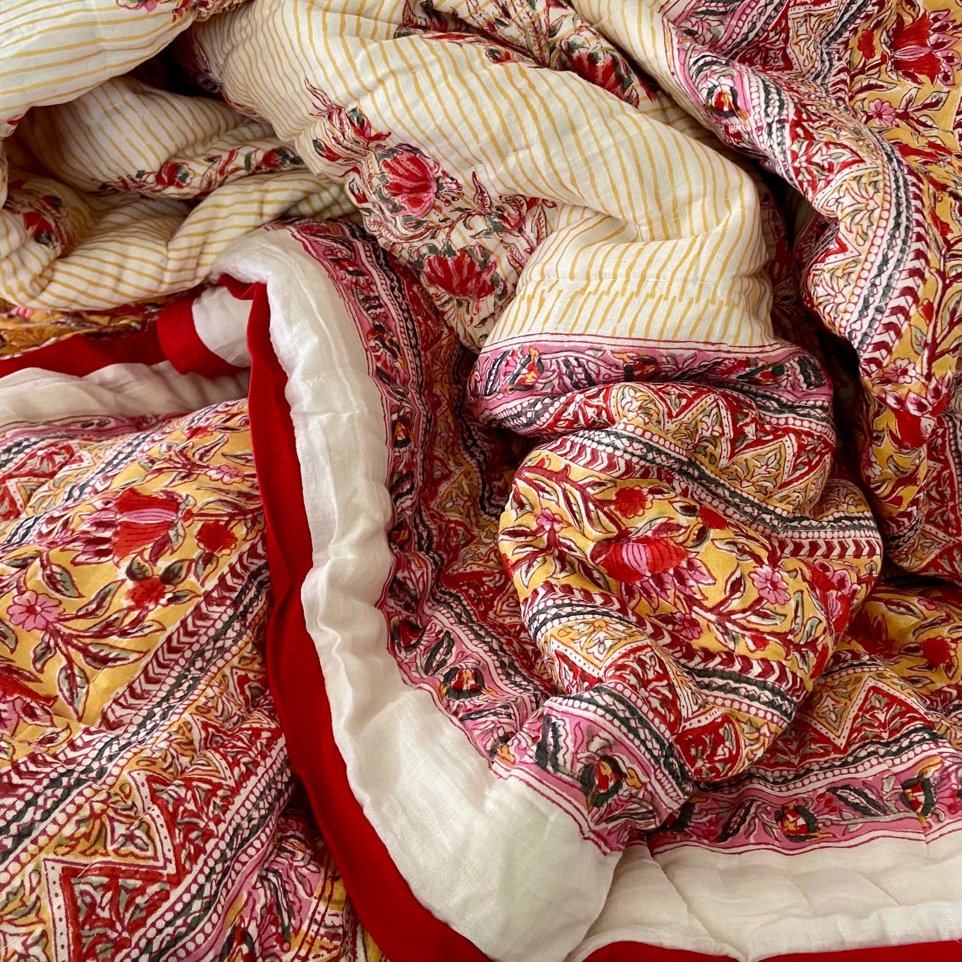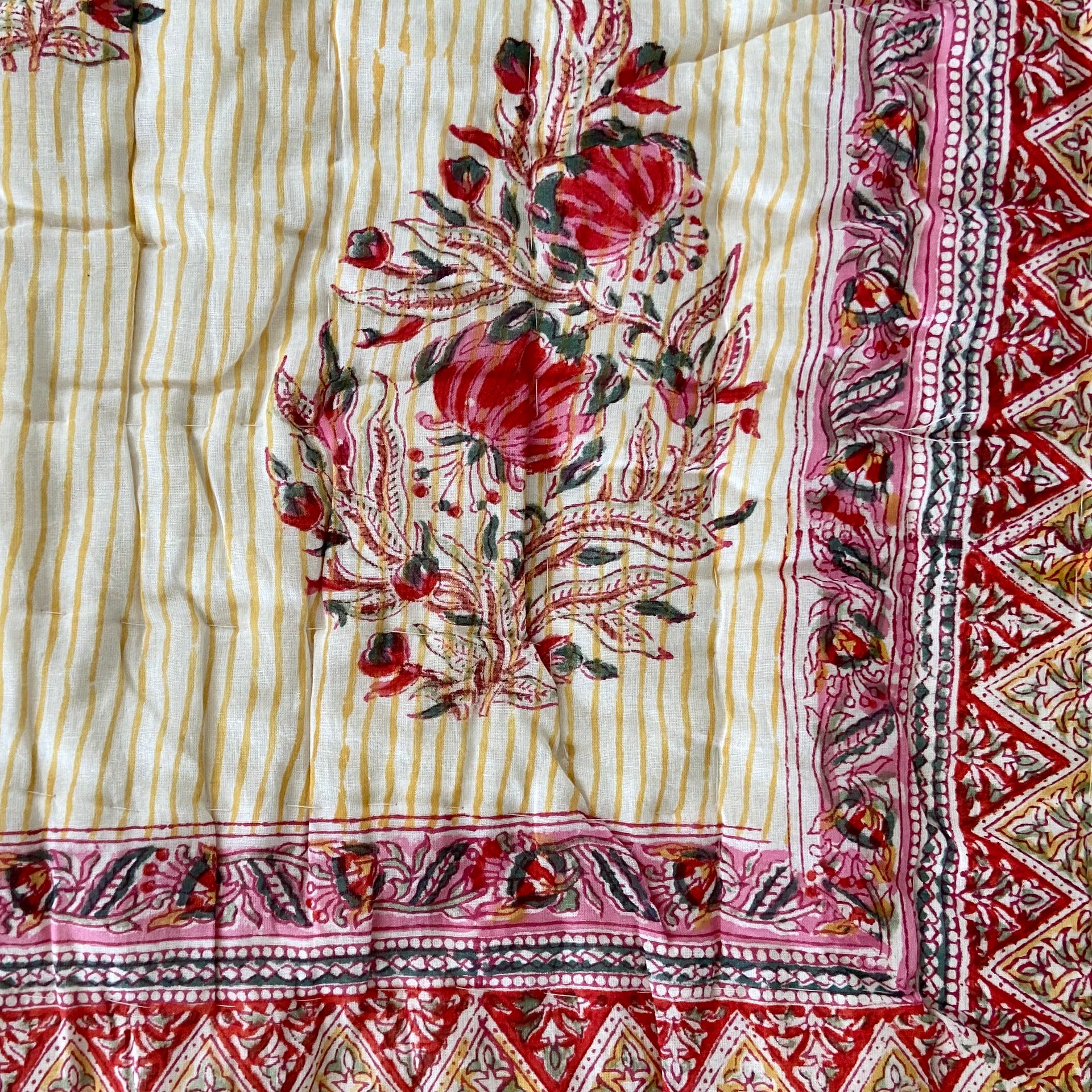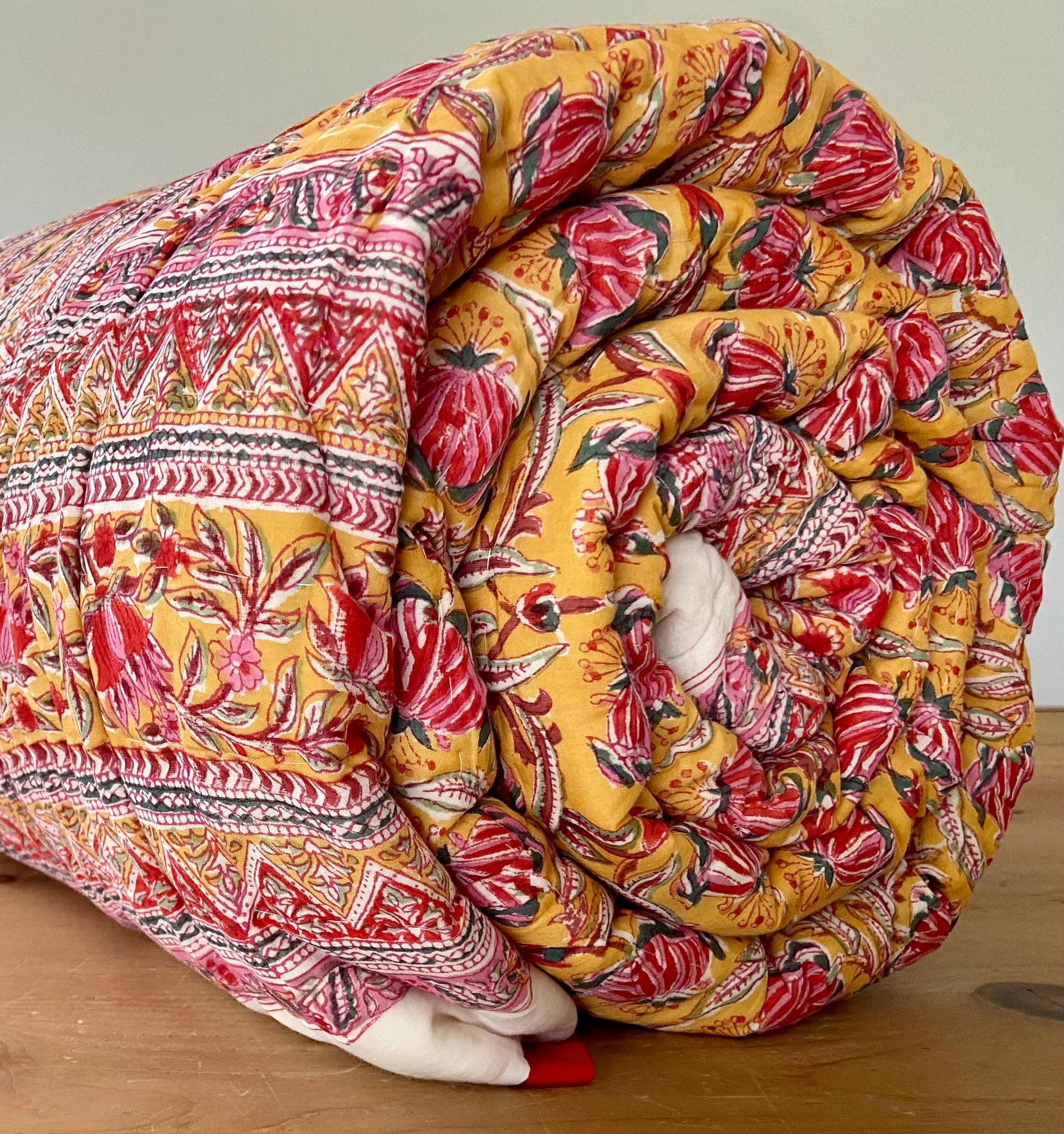 Beautiful King Indian cotton hand block printed bed quilt