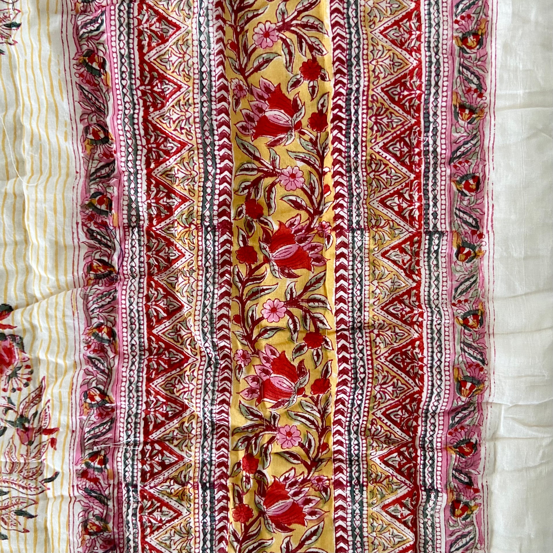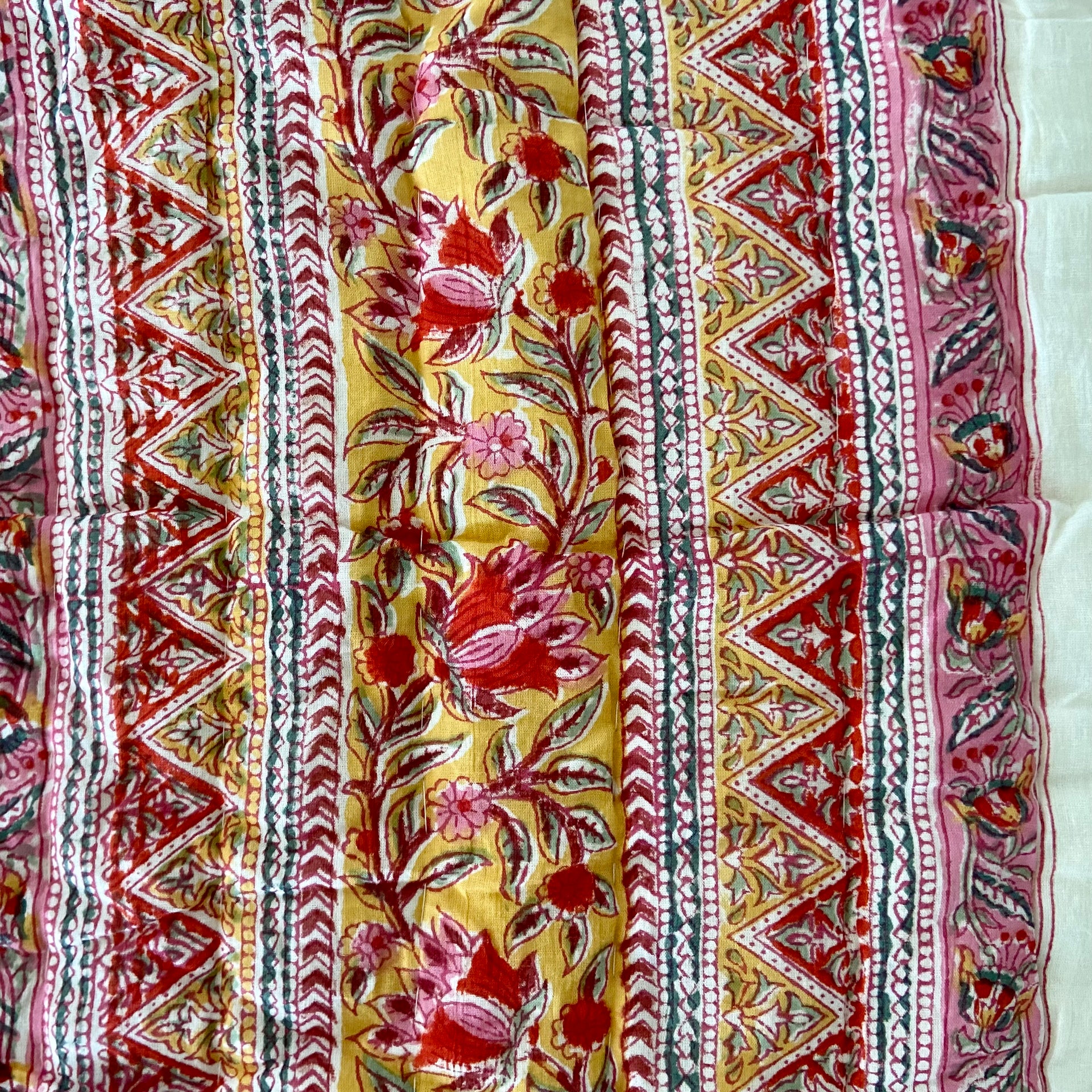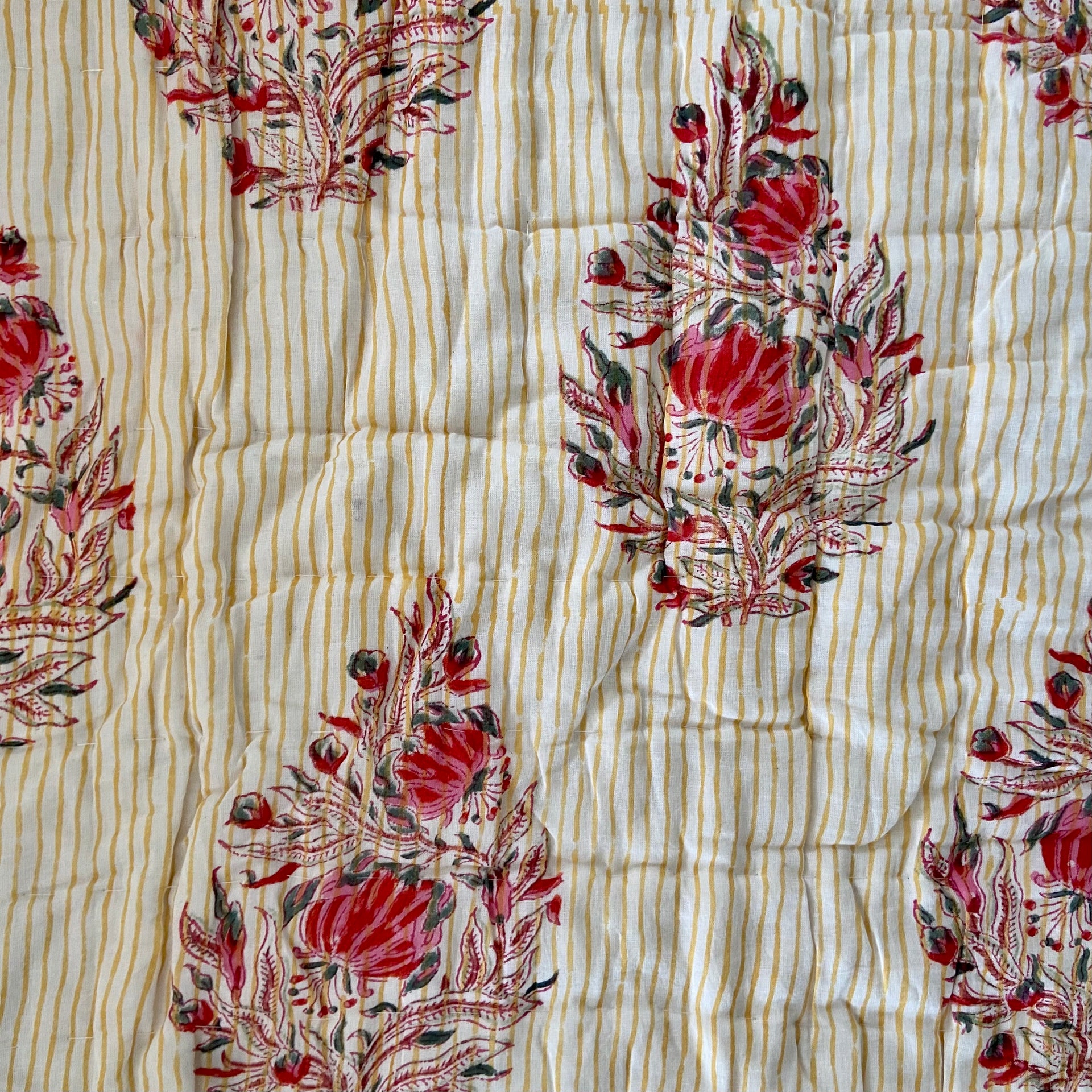 Handmade Indian Cotton Quilt- Frost Mustard Stripe