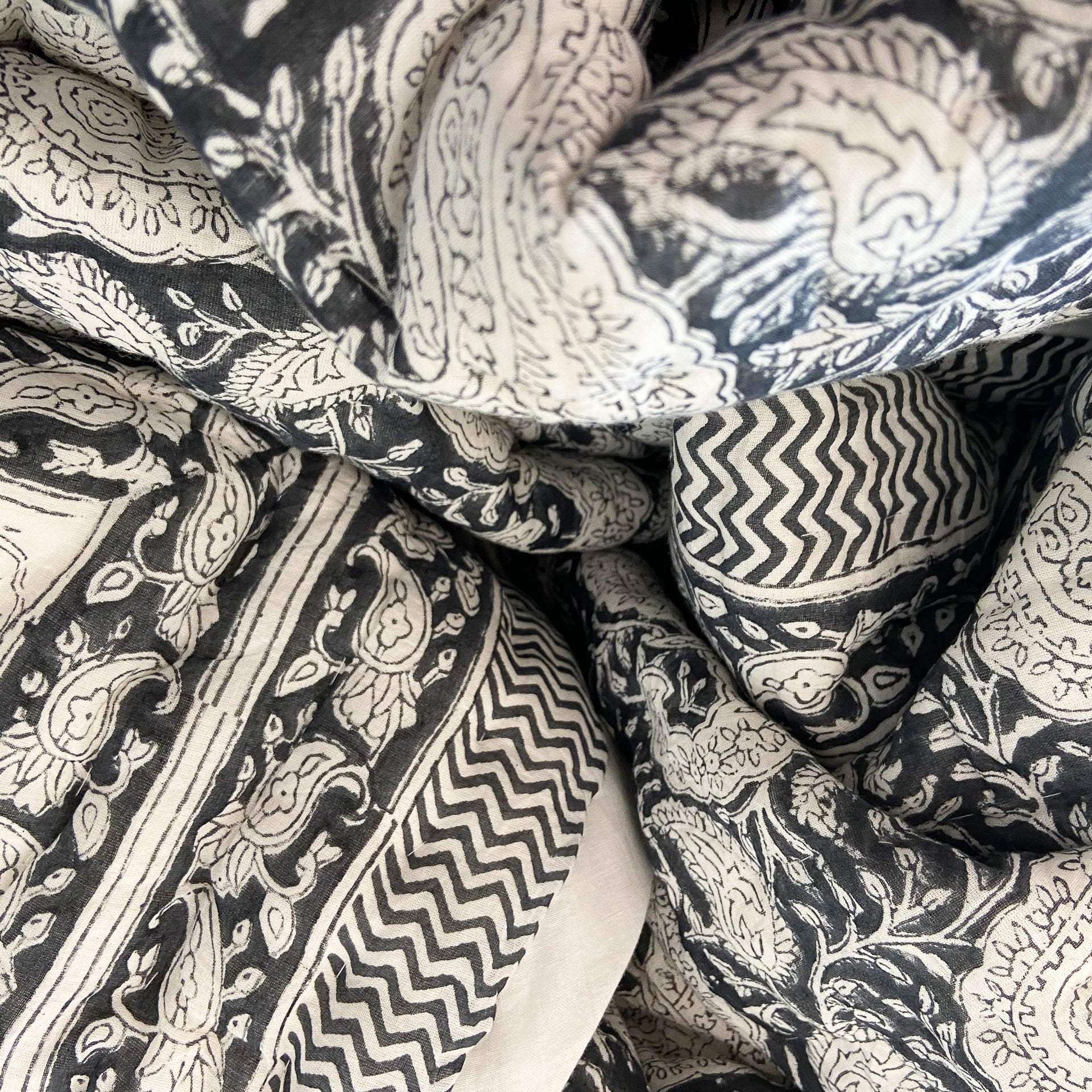 hand block printed soft cotton reversible cotton filled fair trade, sustainable cot quilt