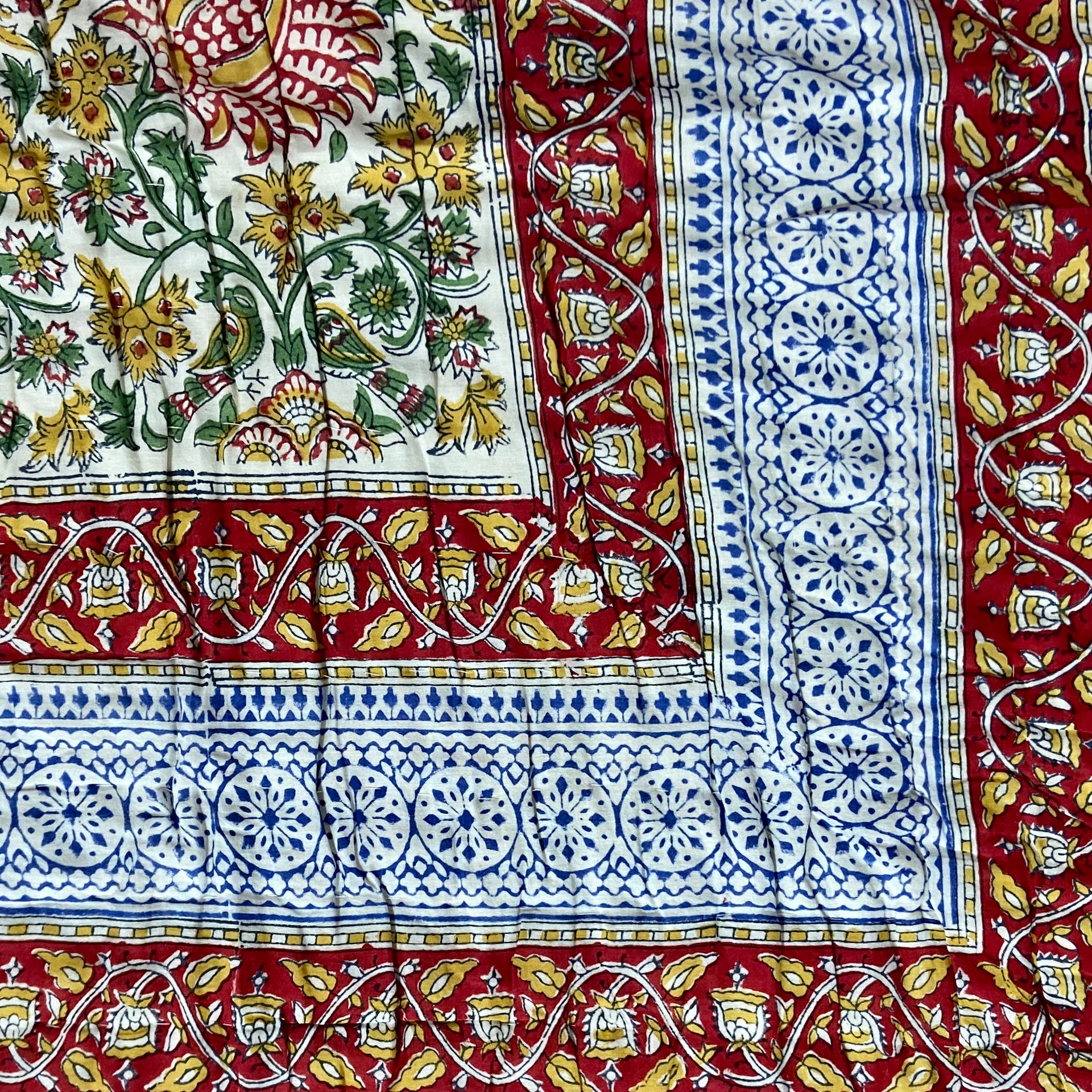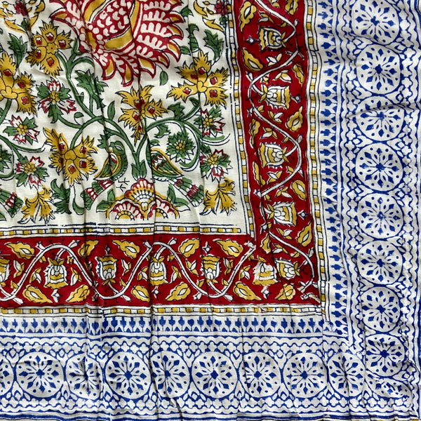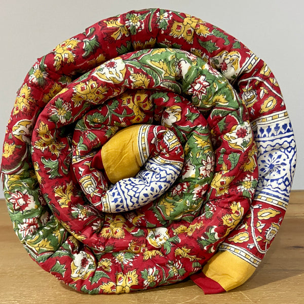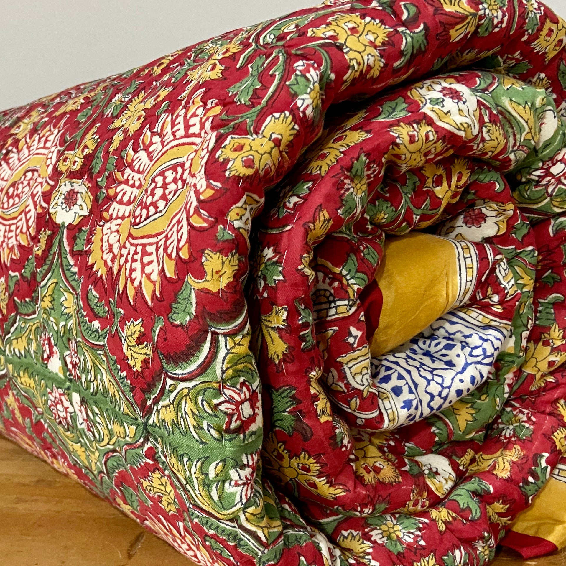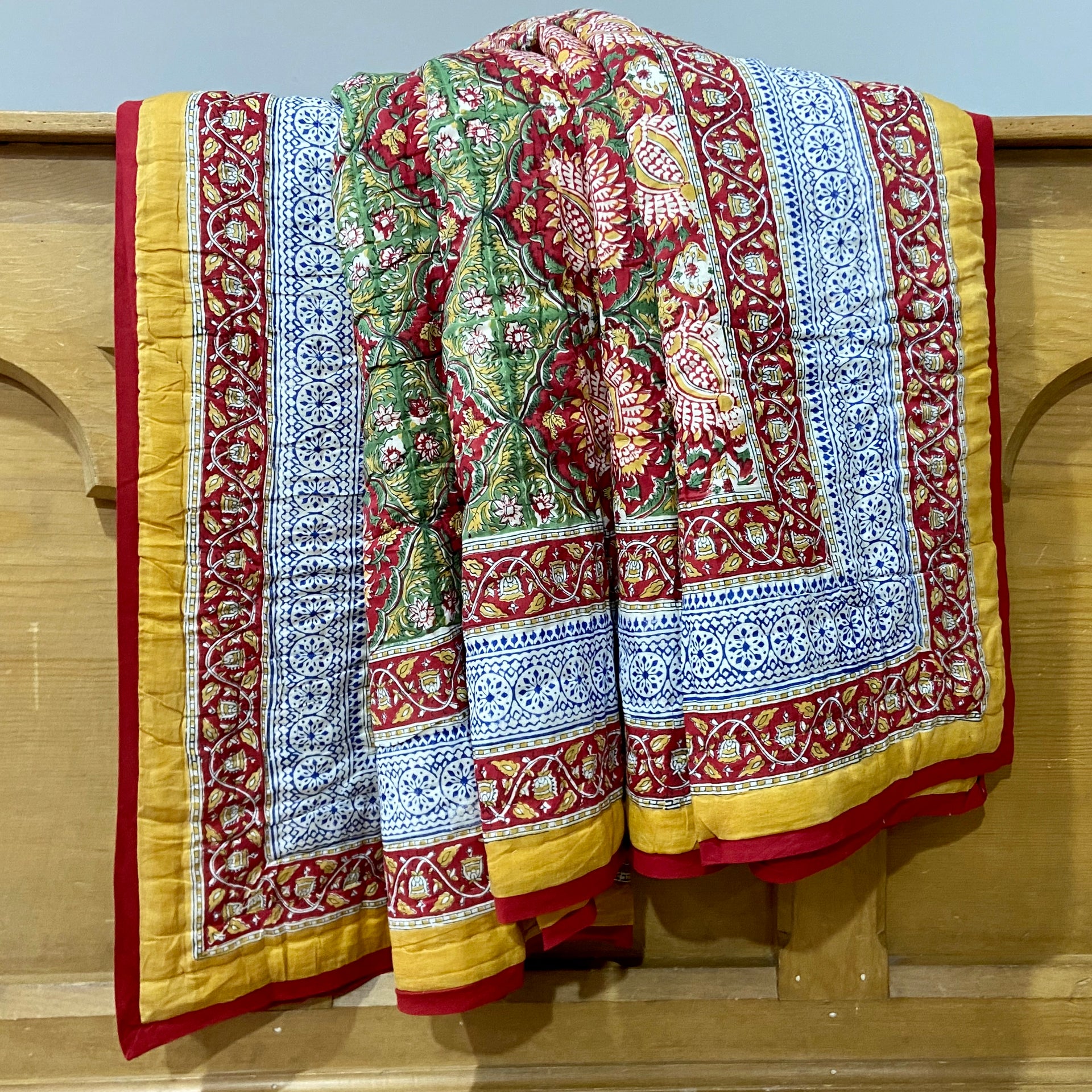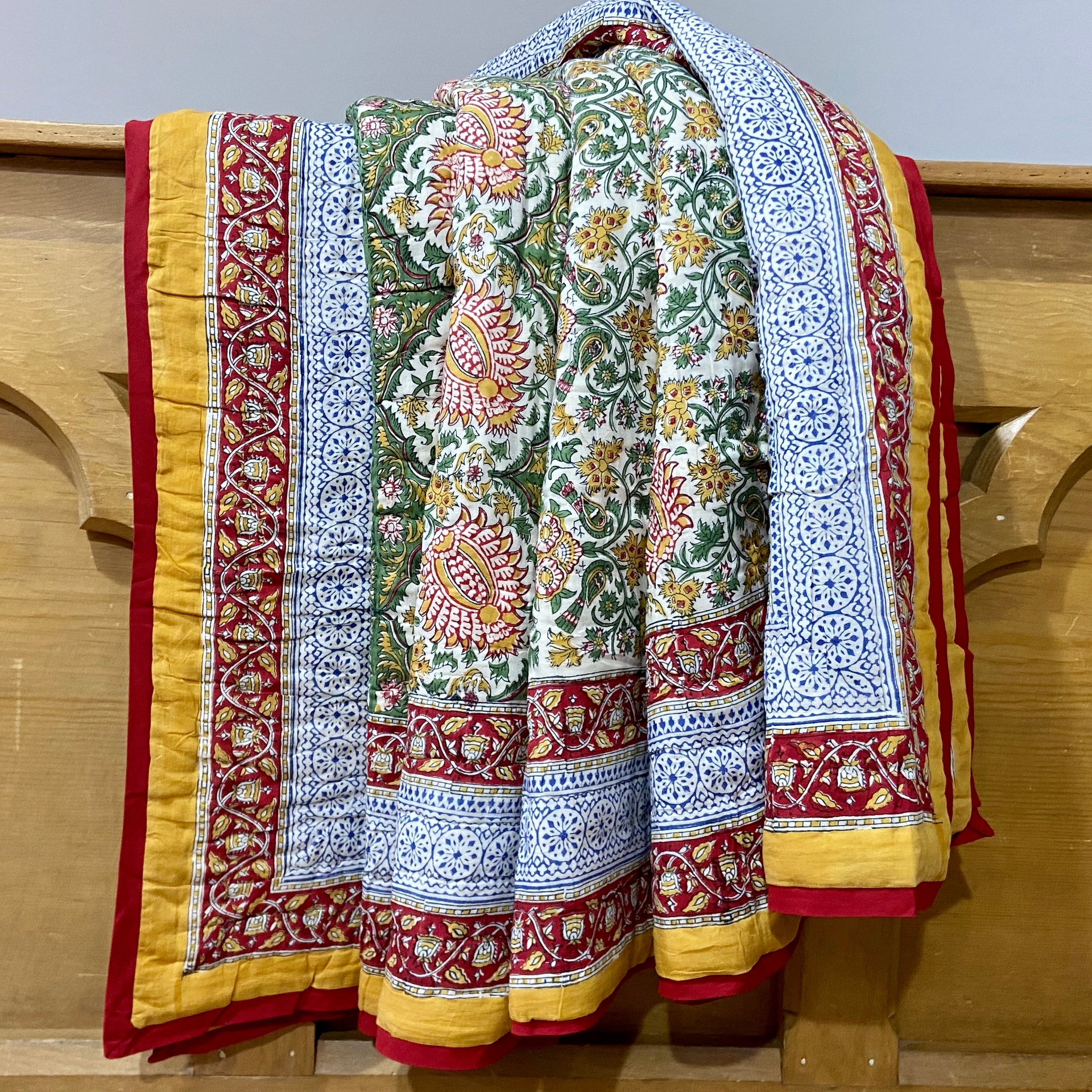 Hand Block Printed Queen Quilt. Pure, soft cotton, Fairtrade, unique authentic