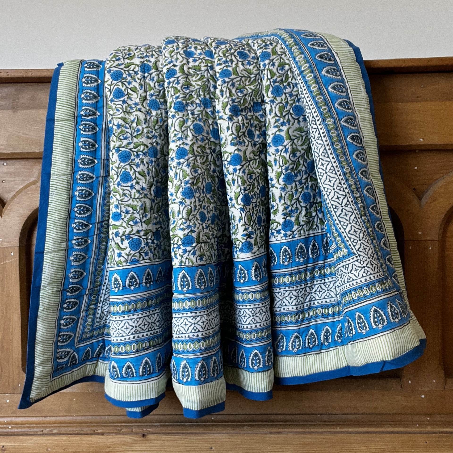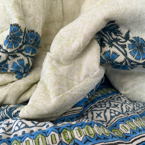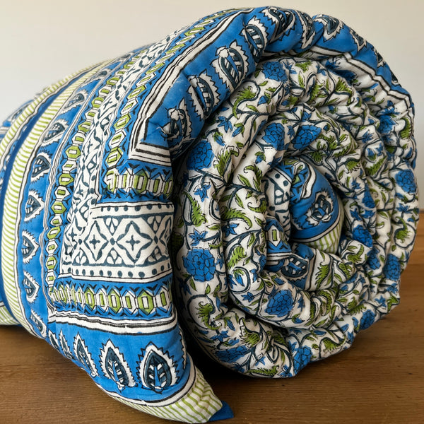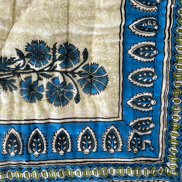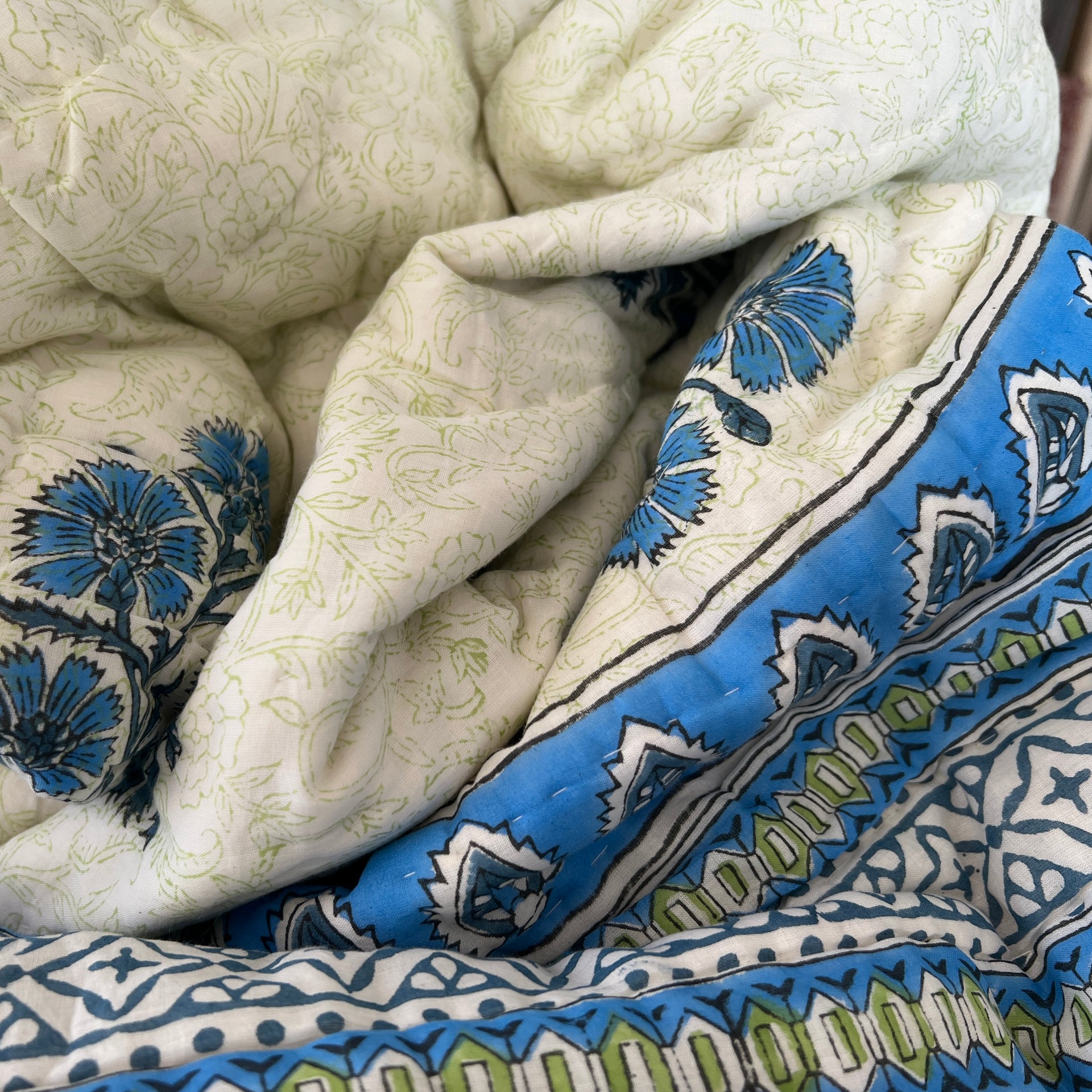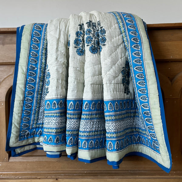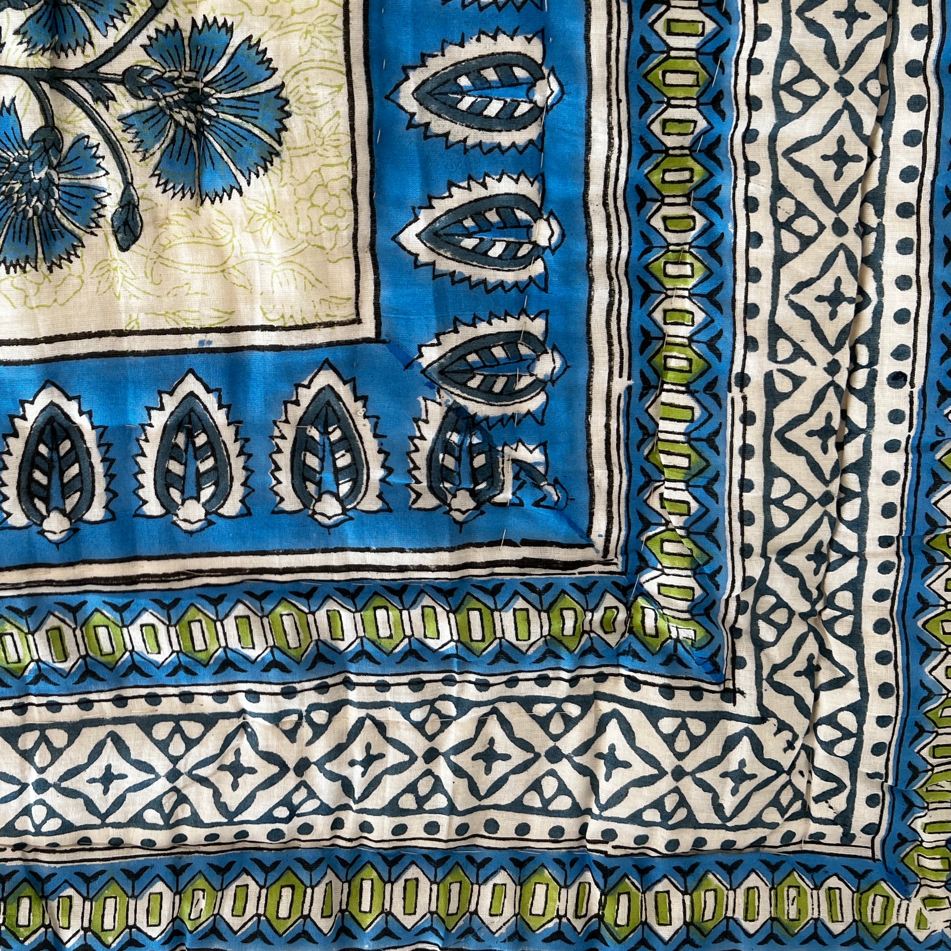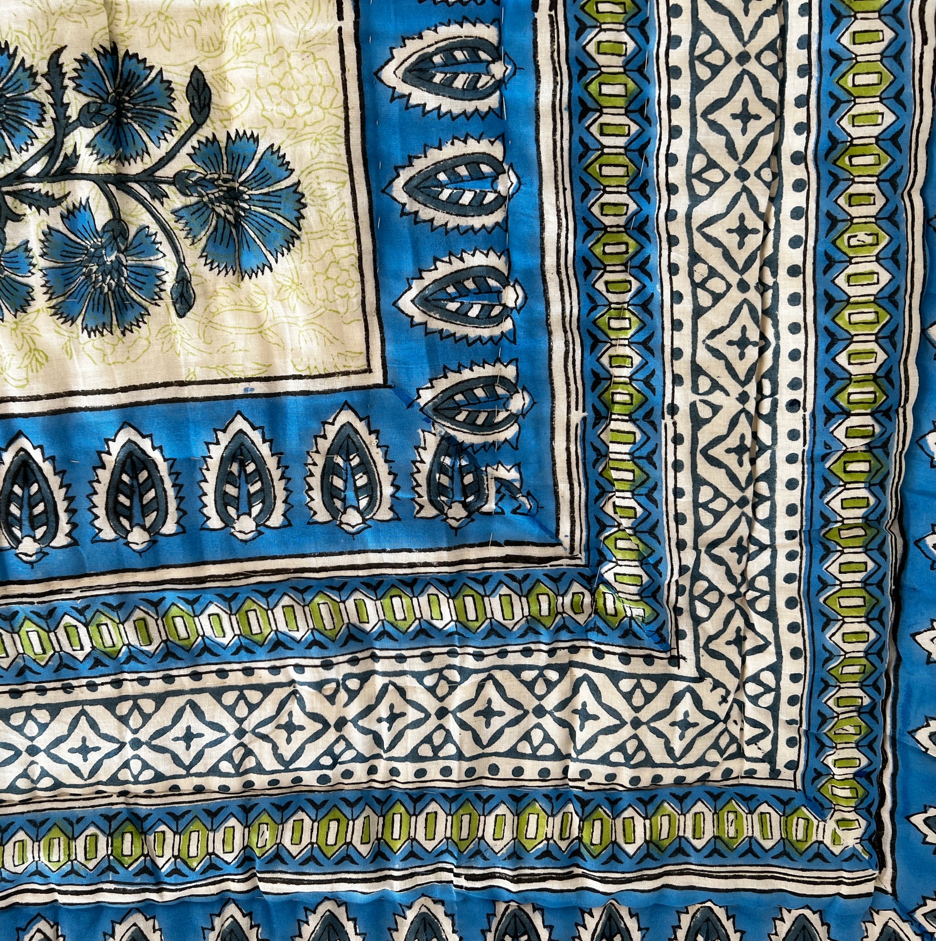 Handmade Indian Cotton Quilt - Desert Blossom Blue