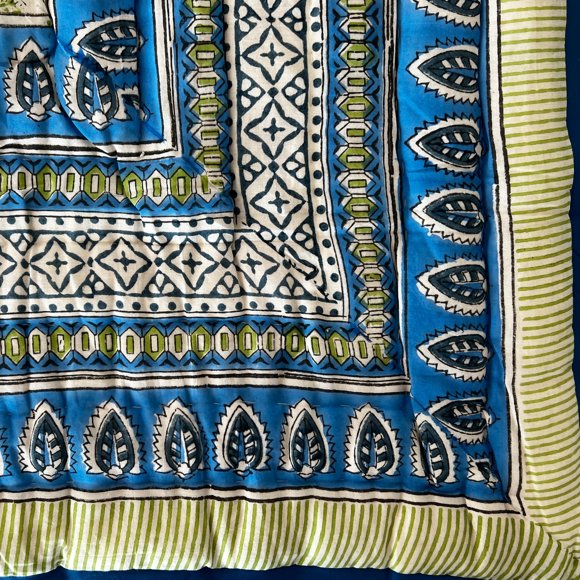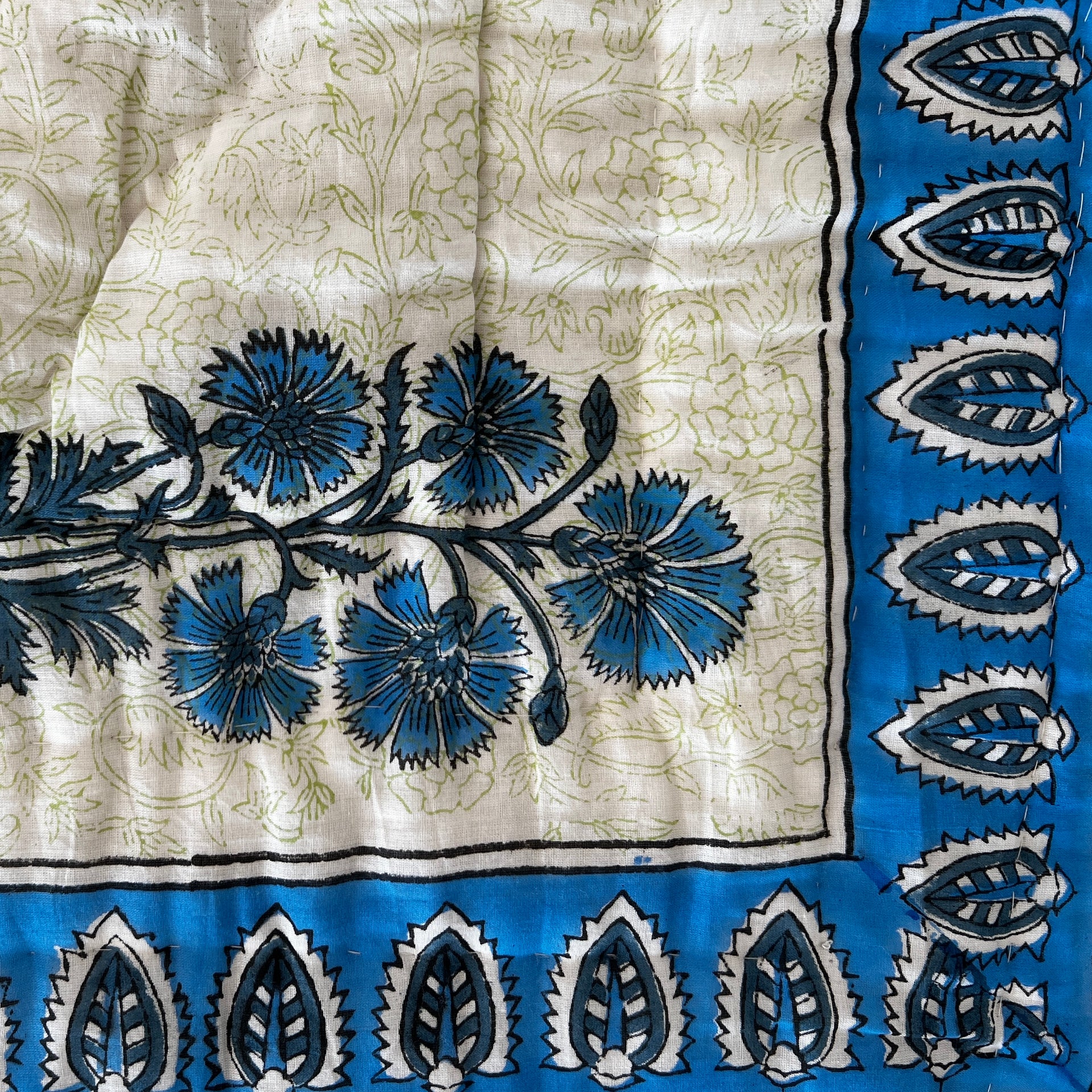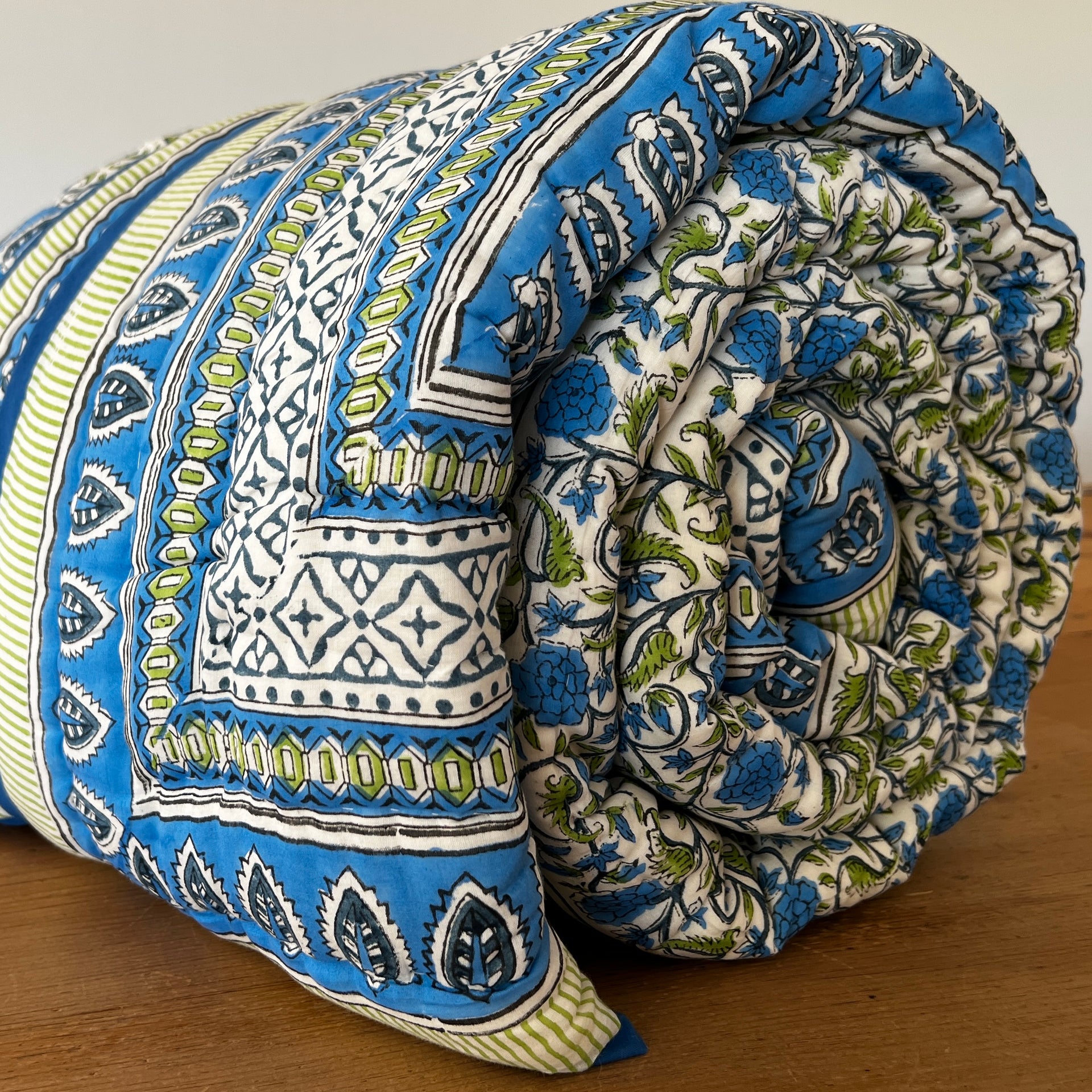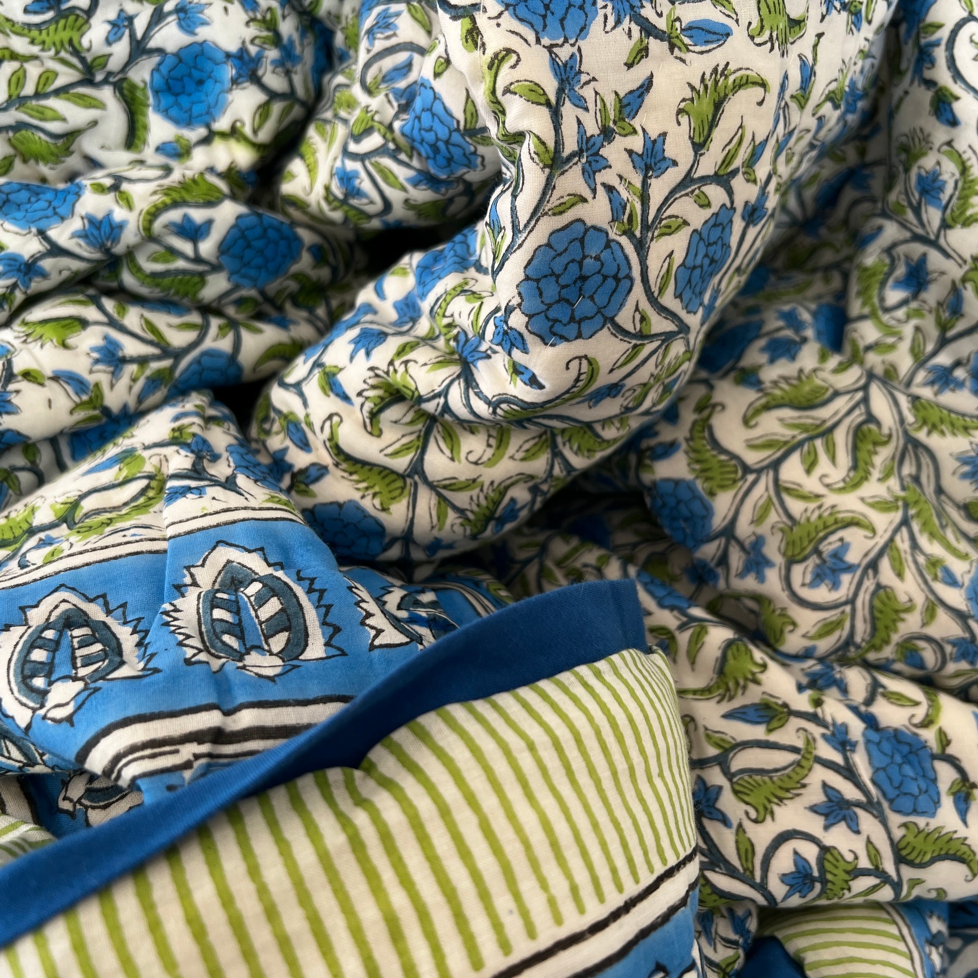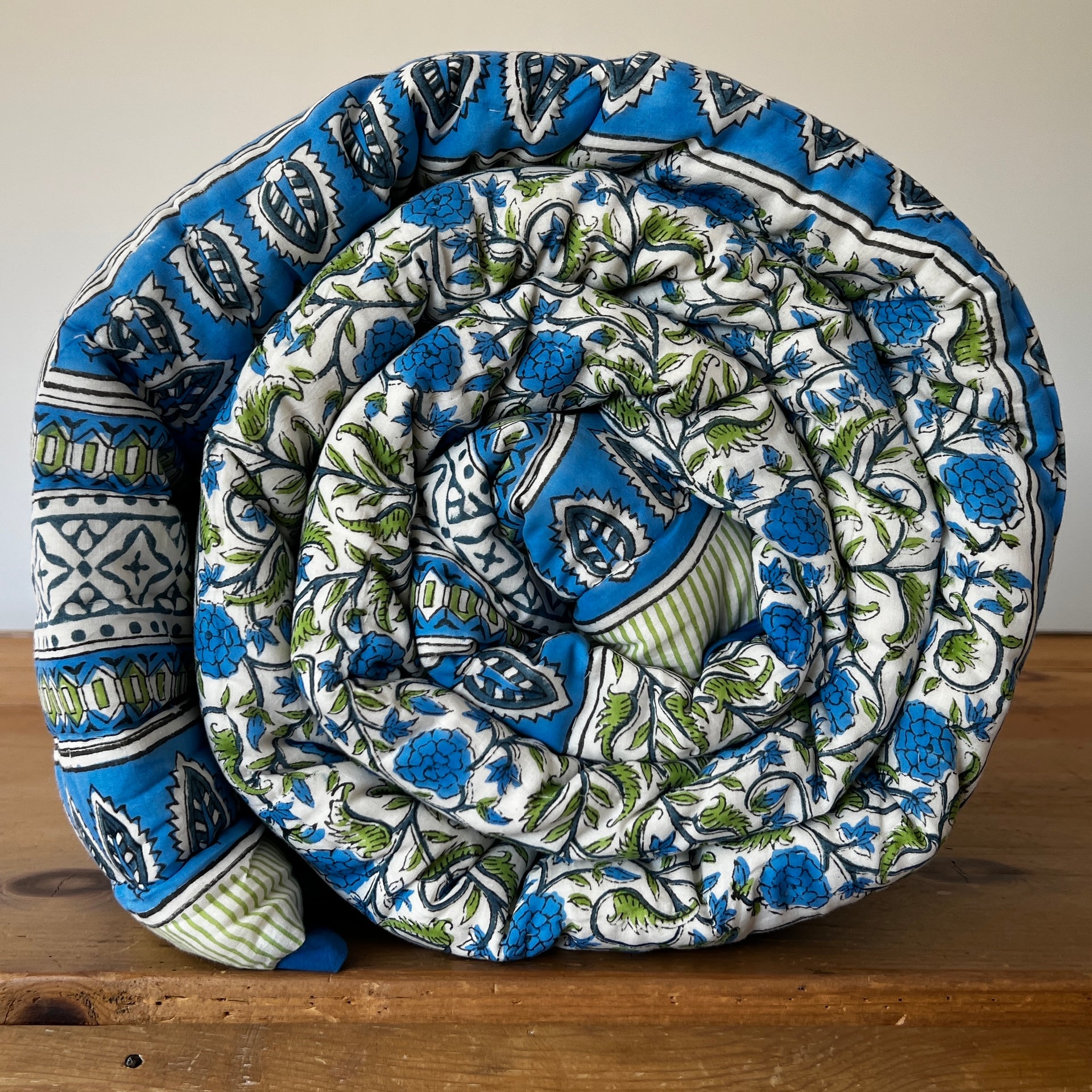 Handmade Indian Cotton Quilt - Desert Blossom Blue