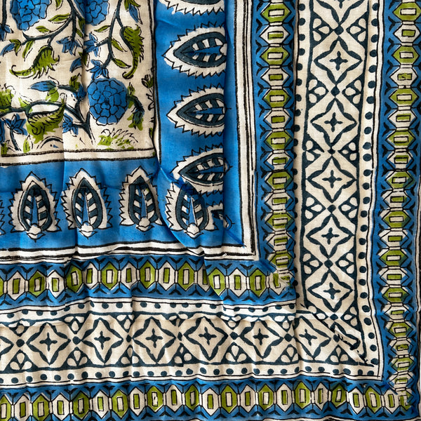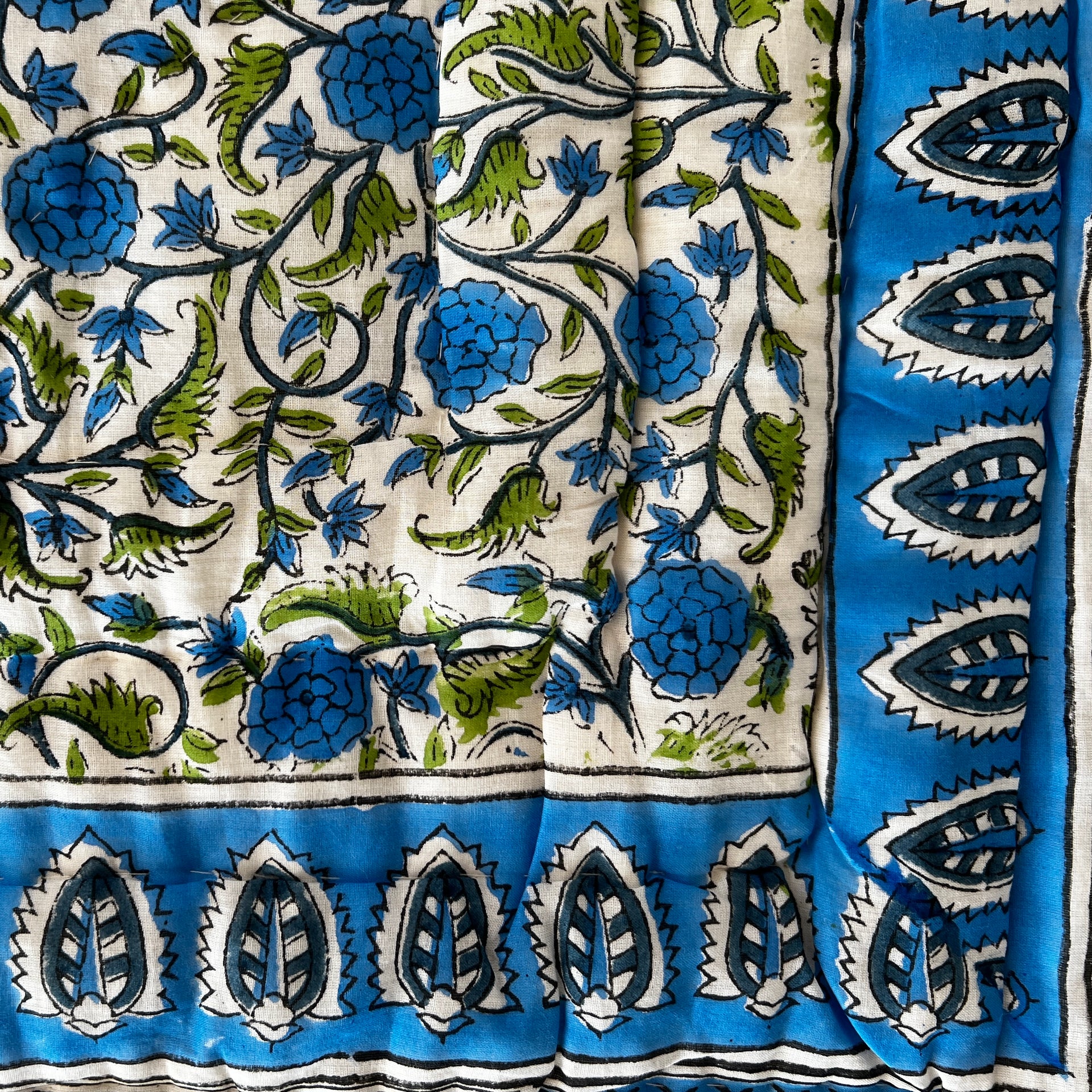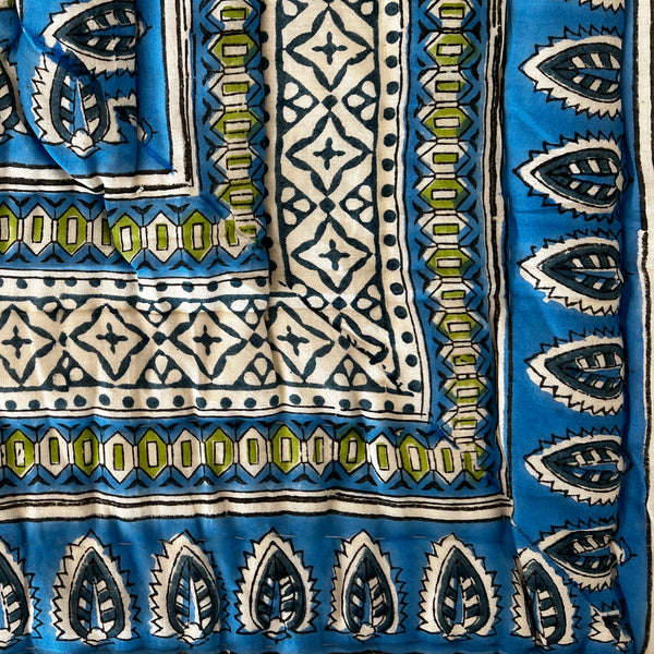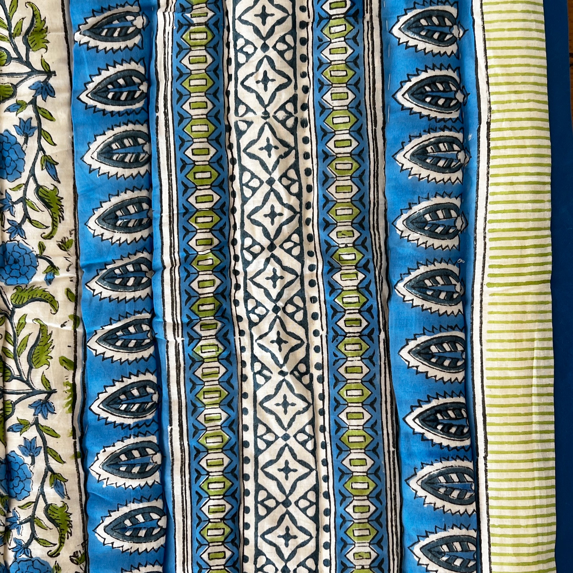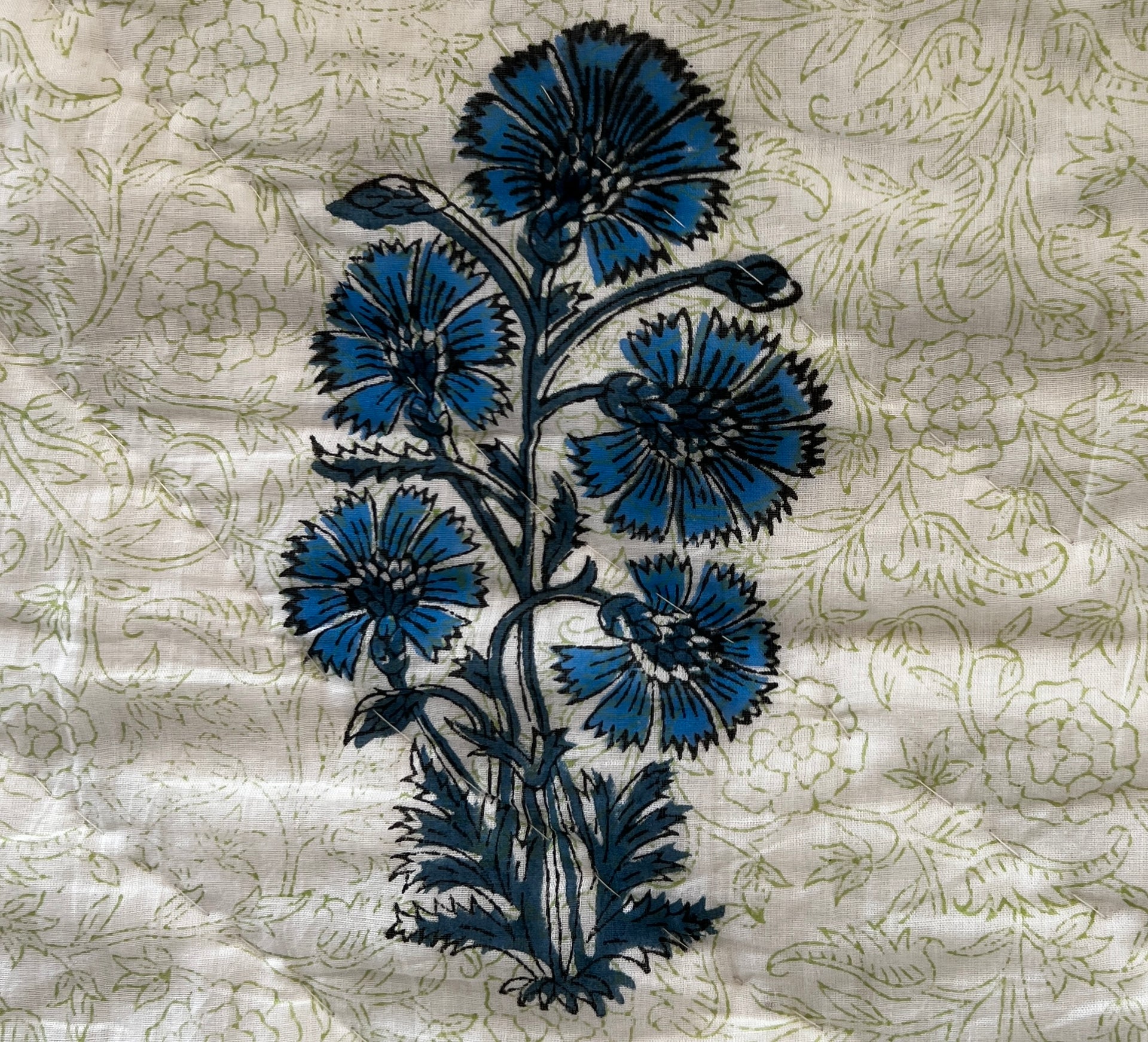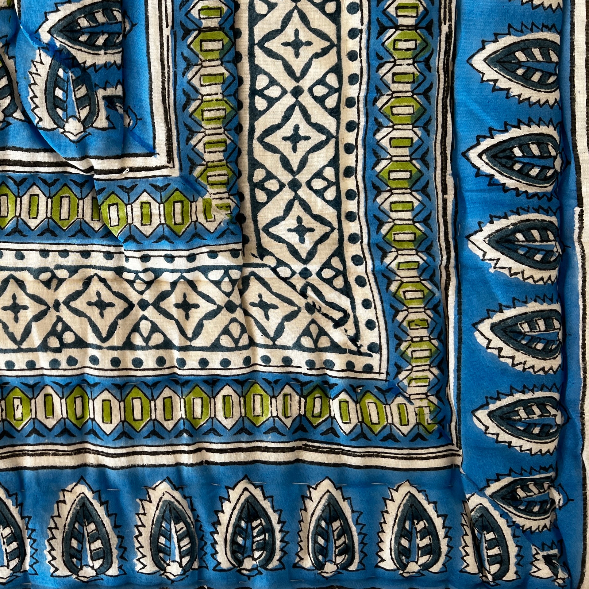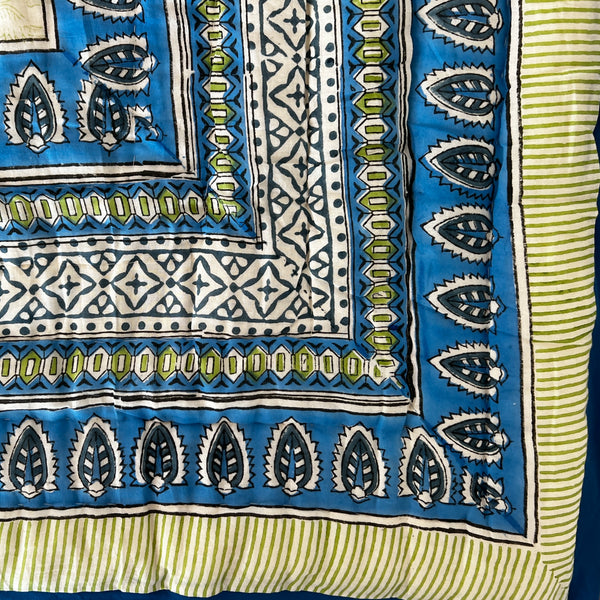 Handmade Indian Cotton Quilt - Desert Blossom Blue