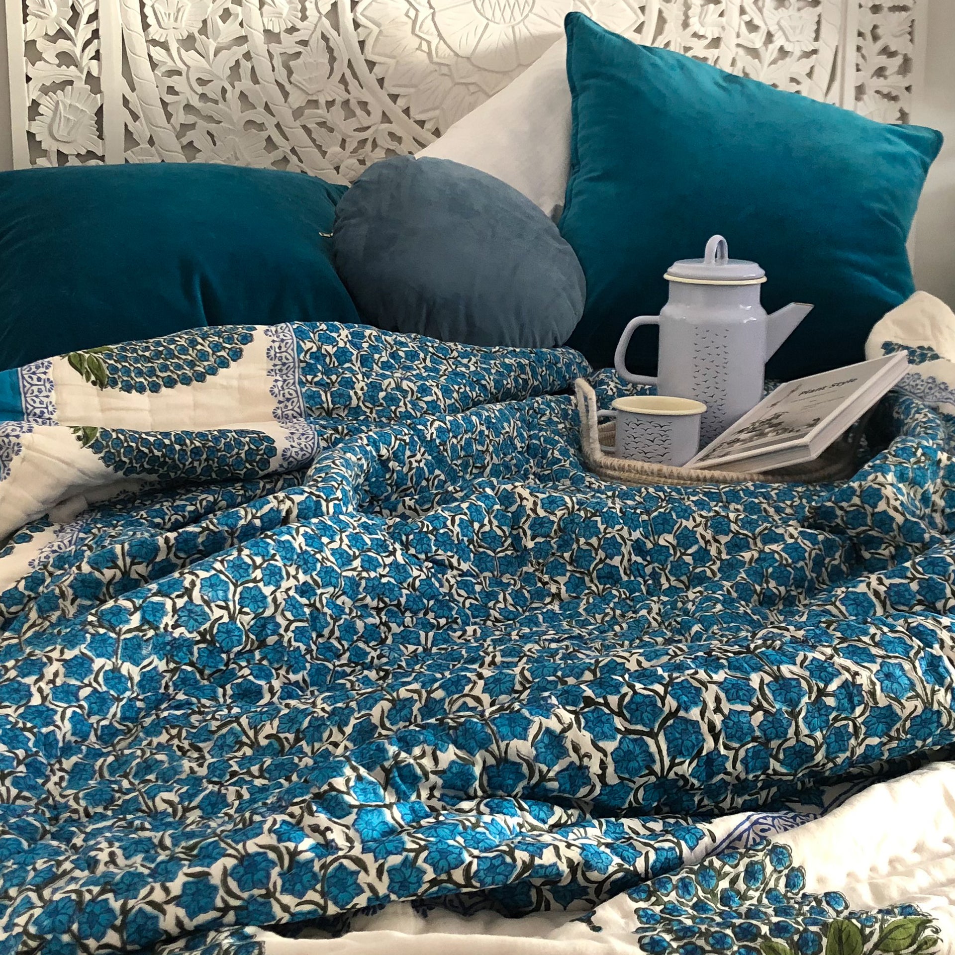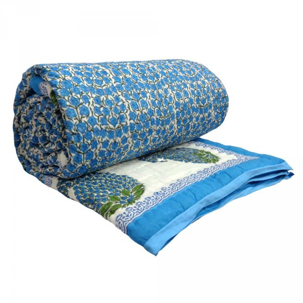 hand block printed 100% soft cotton filled quilt