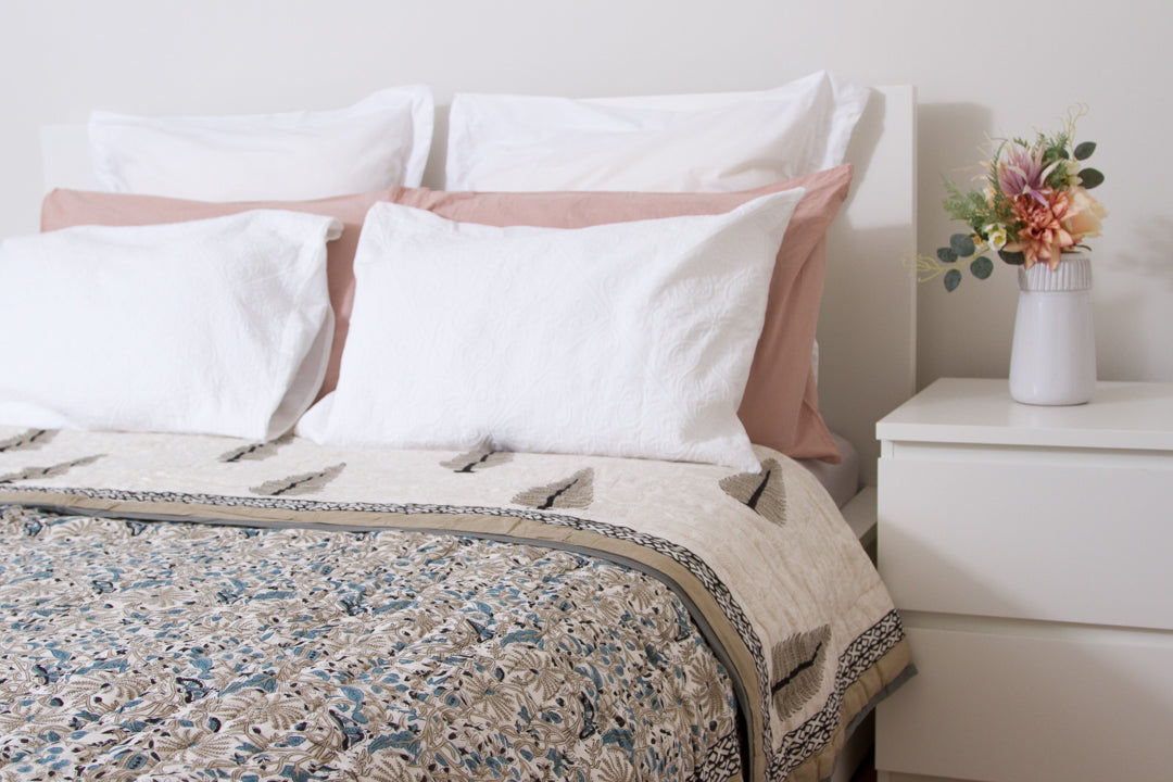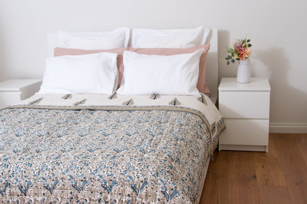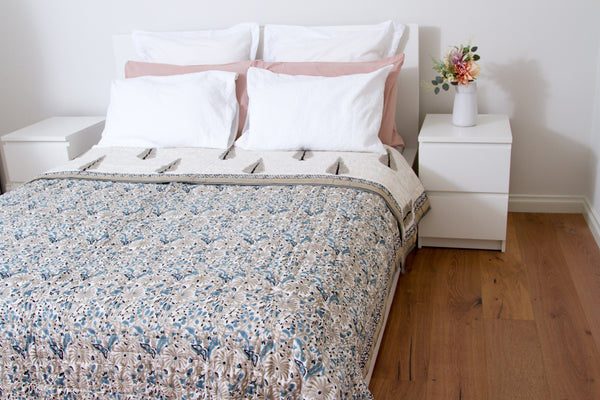 If you like Hampton's blues and greys, this is the quilt for you!  It features a beautiful, intricate pastel floral design on a white background with complementary colours on the reverse.  Both sides feature a simple narrow border and the...View more