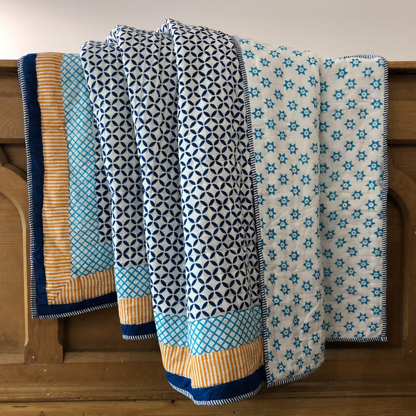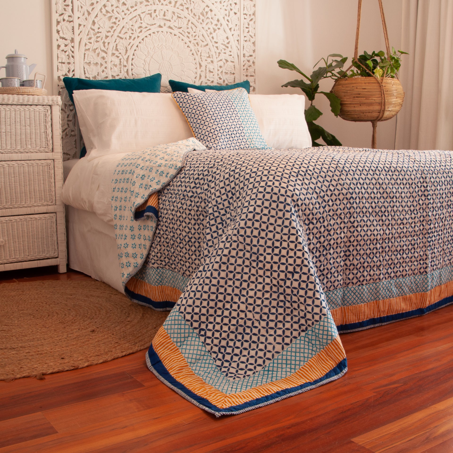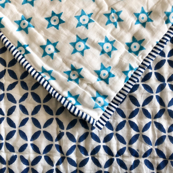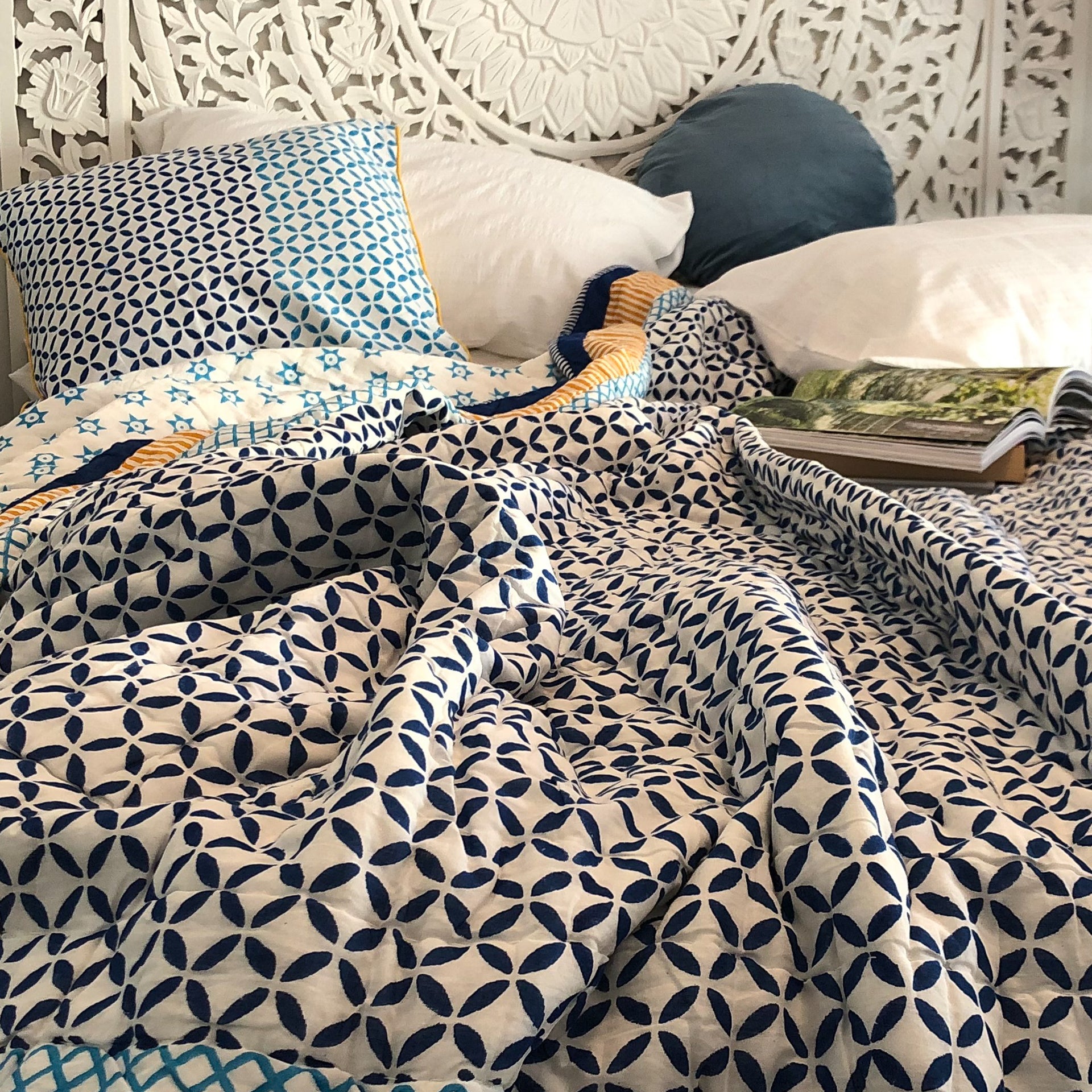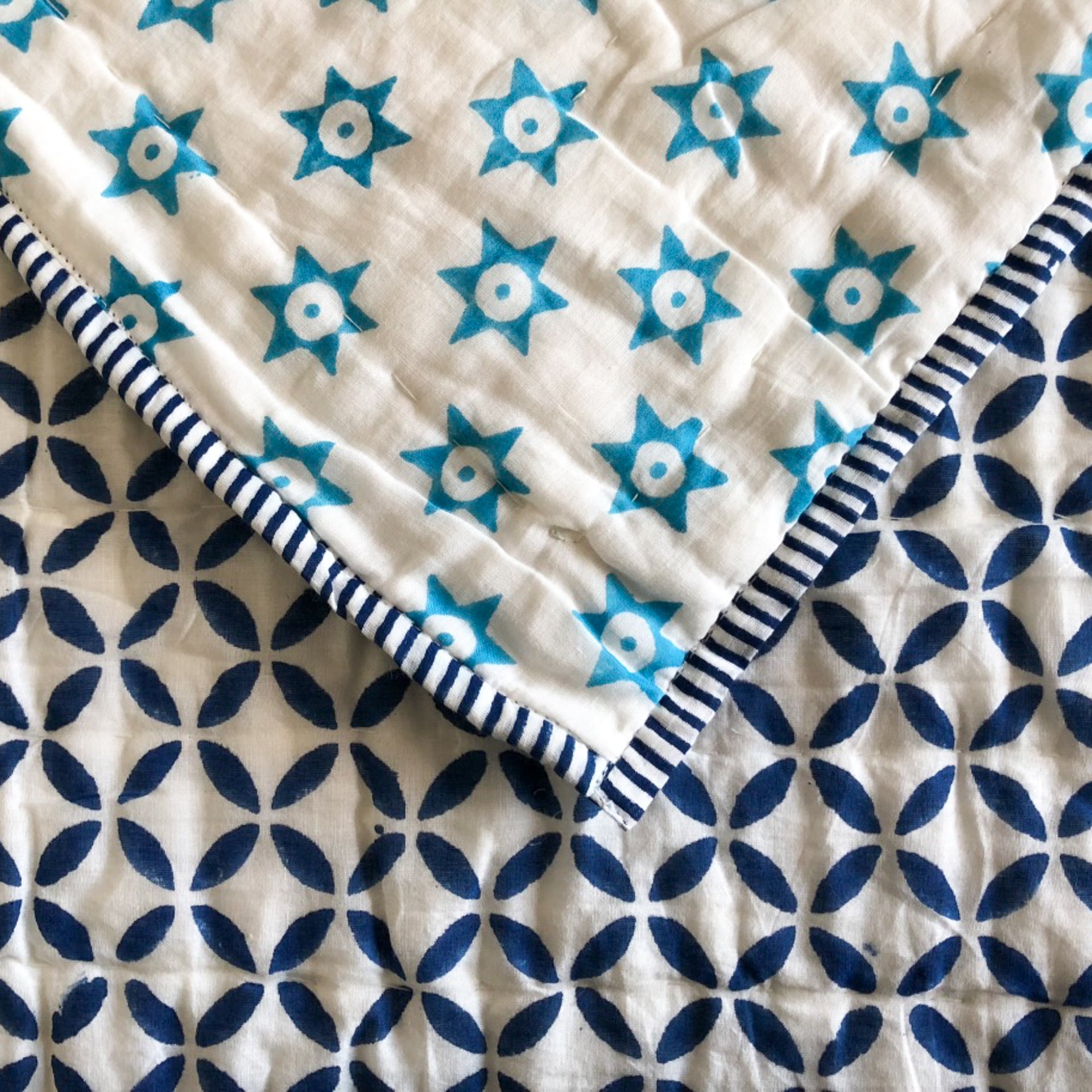 Quilt, hand made, hand block printed, 100% cotton, fair trade, slow fashion, reversible,