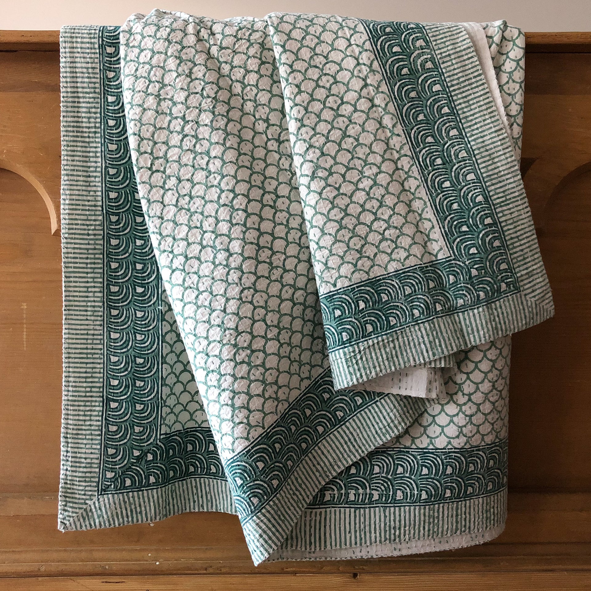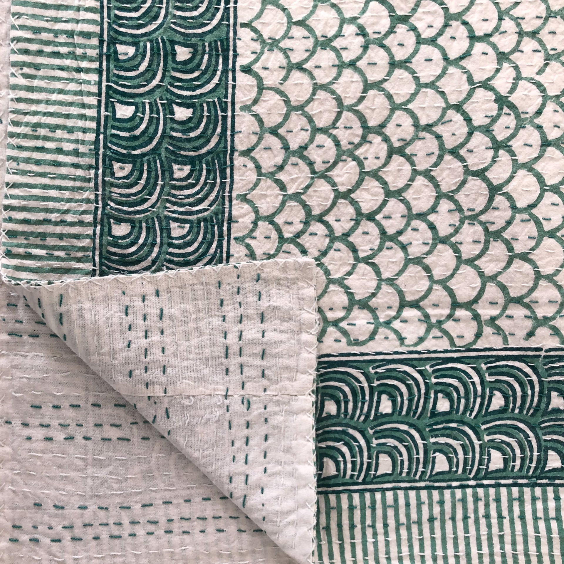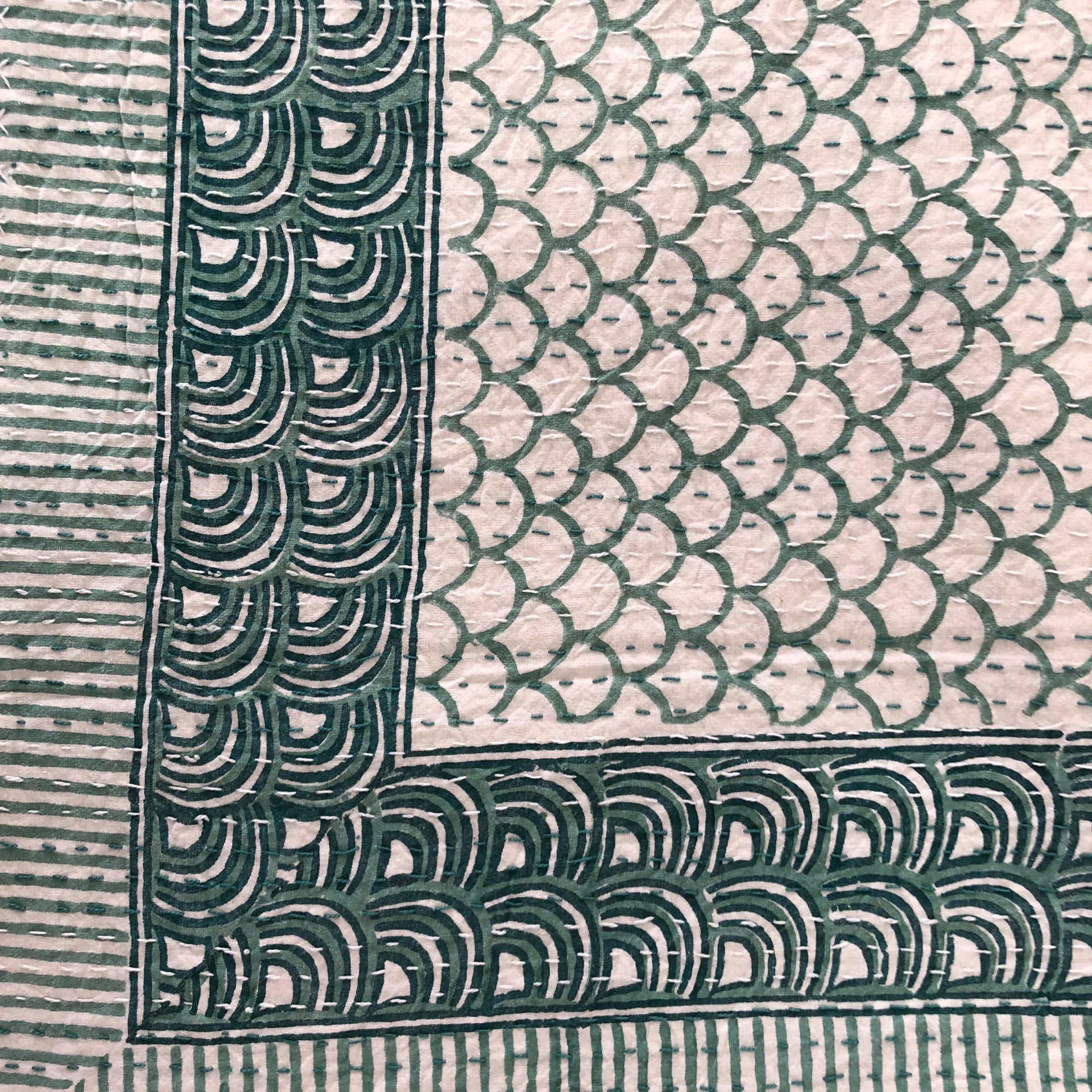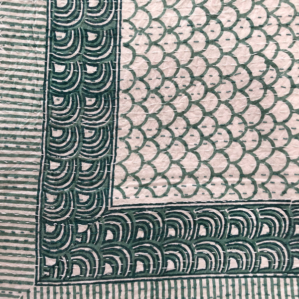 Hand Block Printed Kantha Quilt - Teal Mermaid