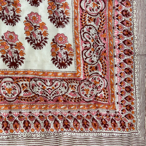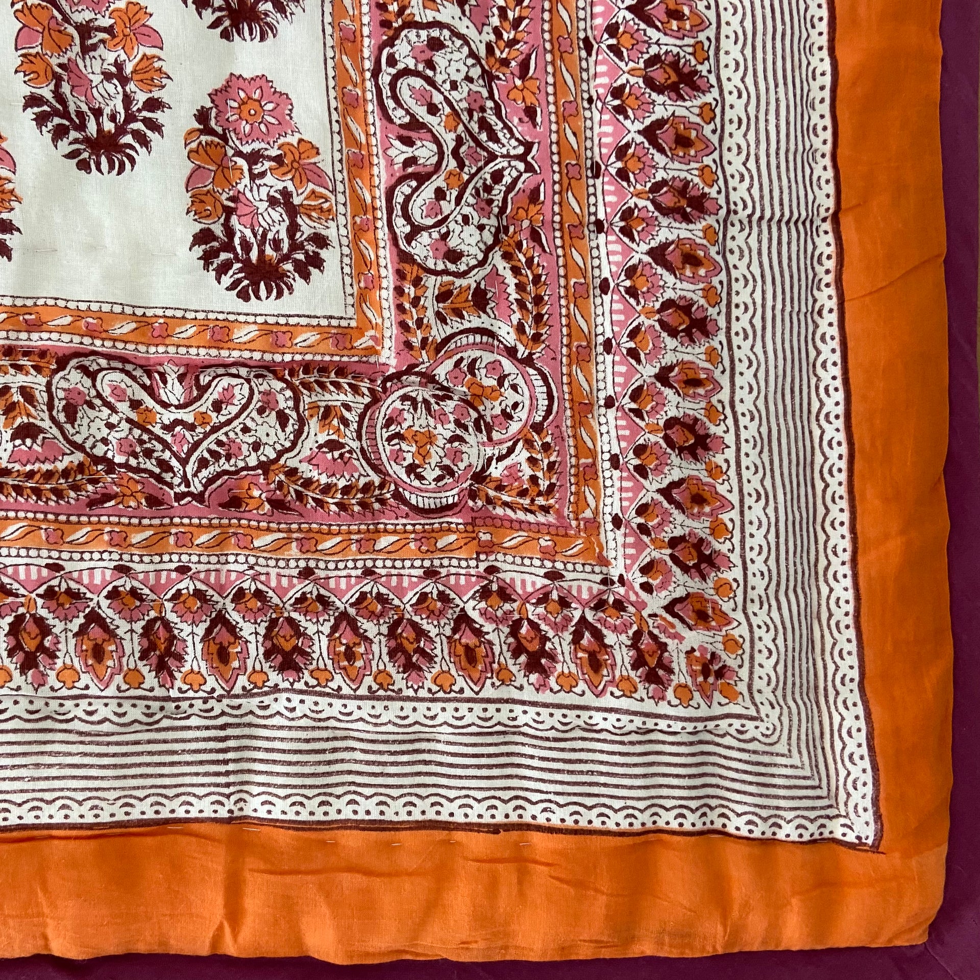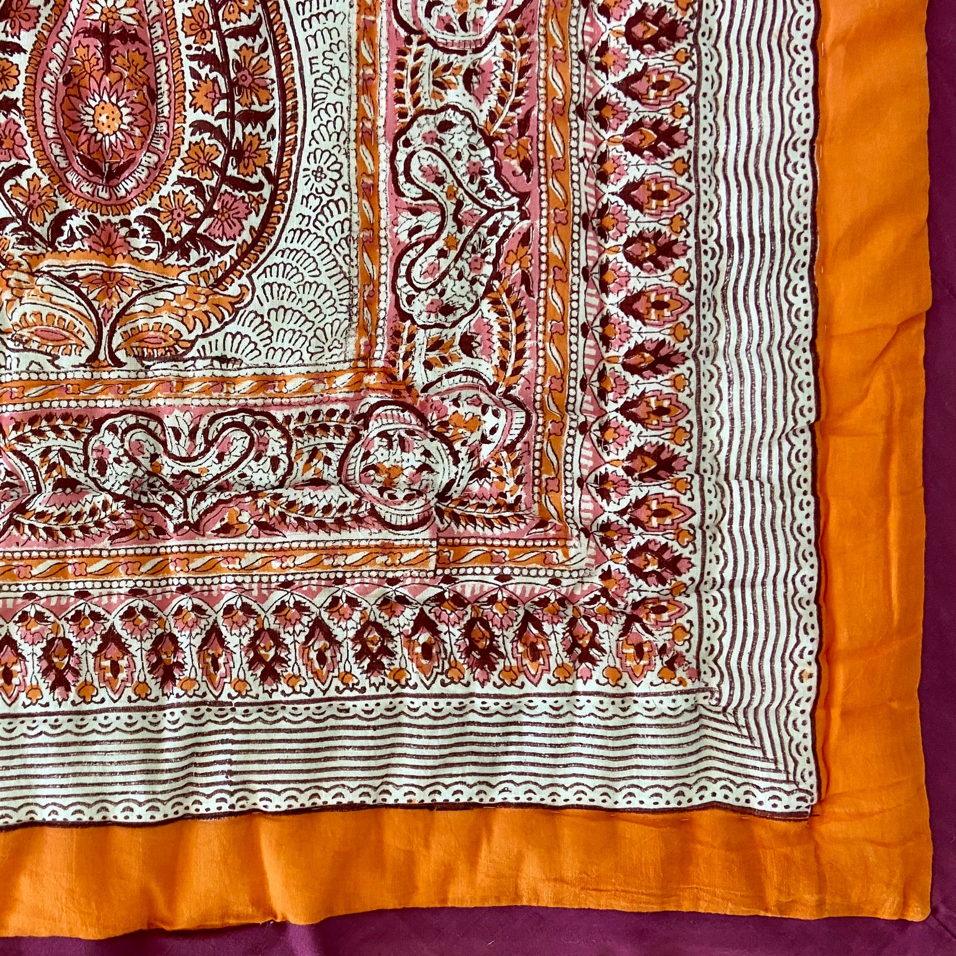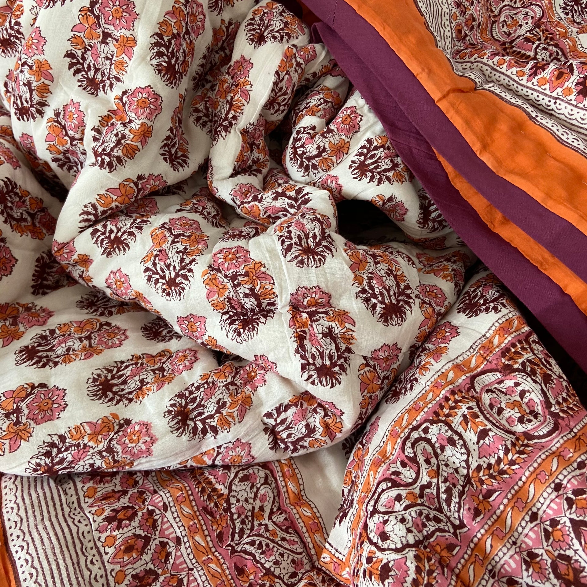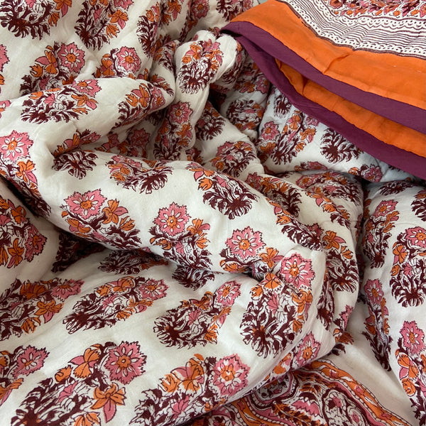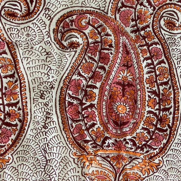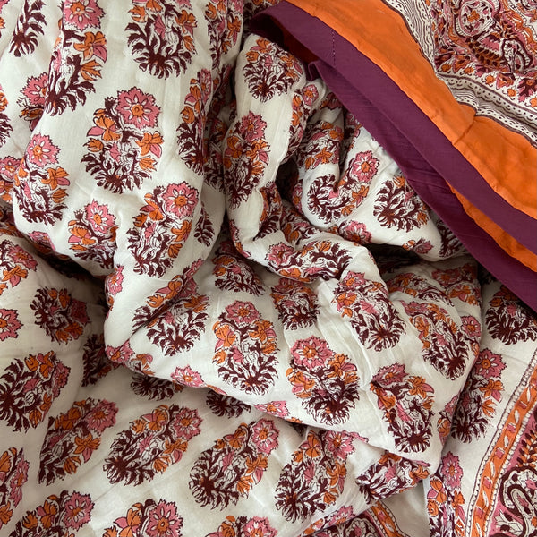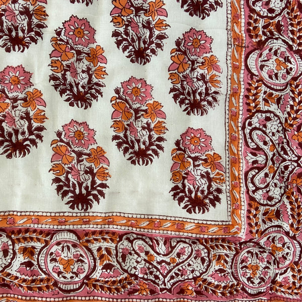 Hand Block Printed Quilt - Big Paisley Pink/Orange