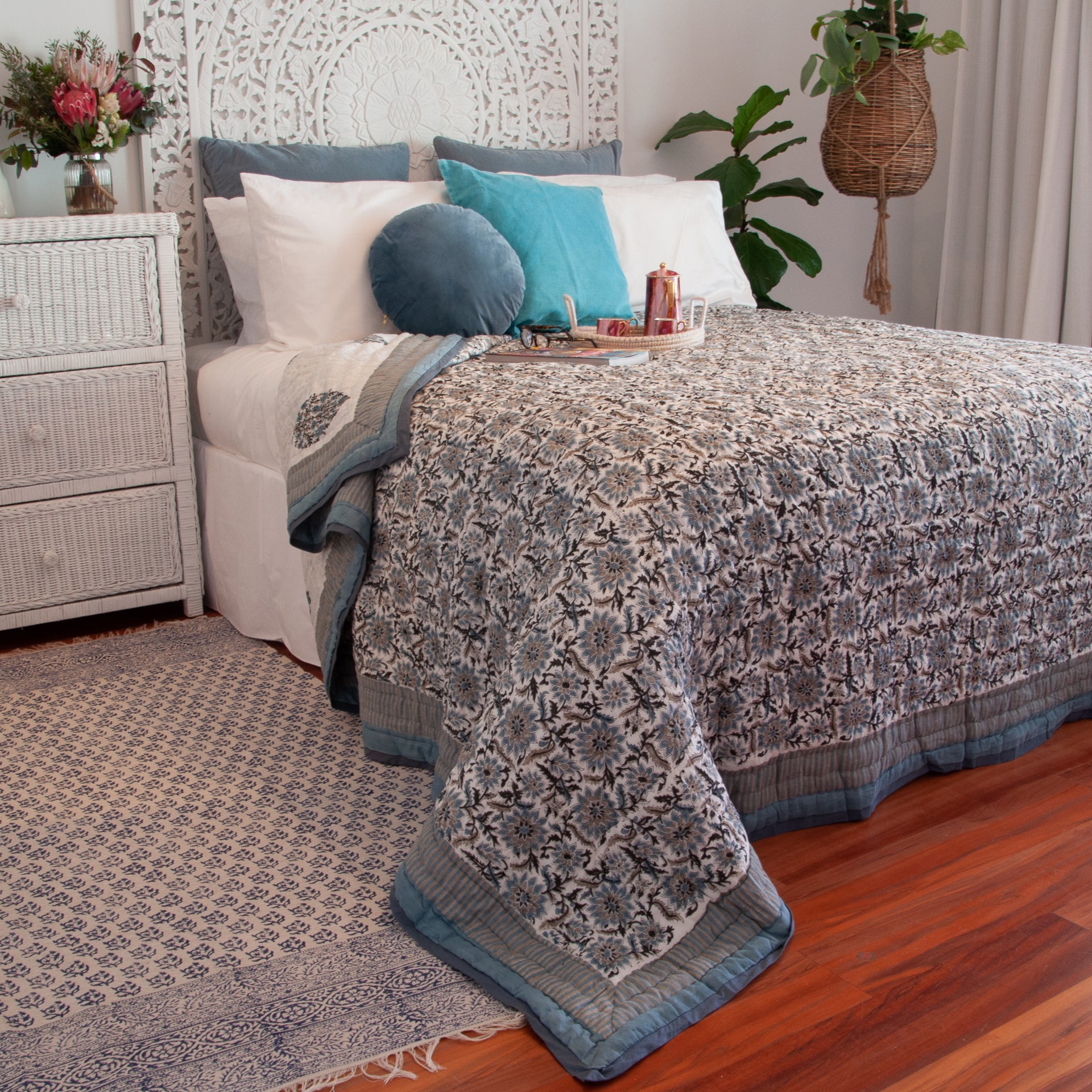 Madhubala Grey 40cm square hand block Printed cotton cushion cover