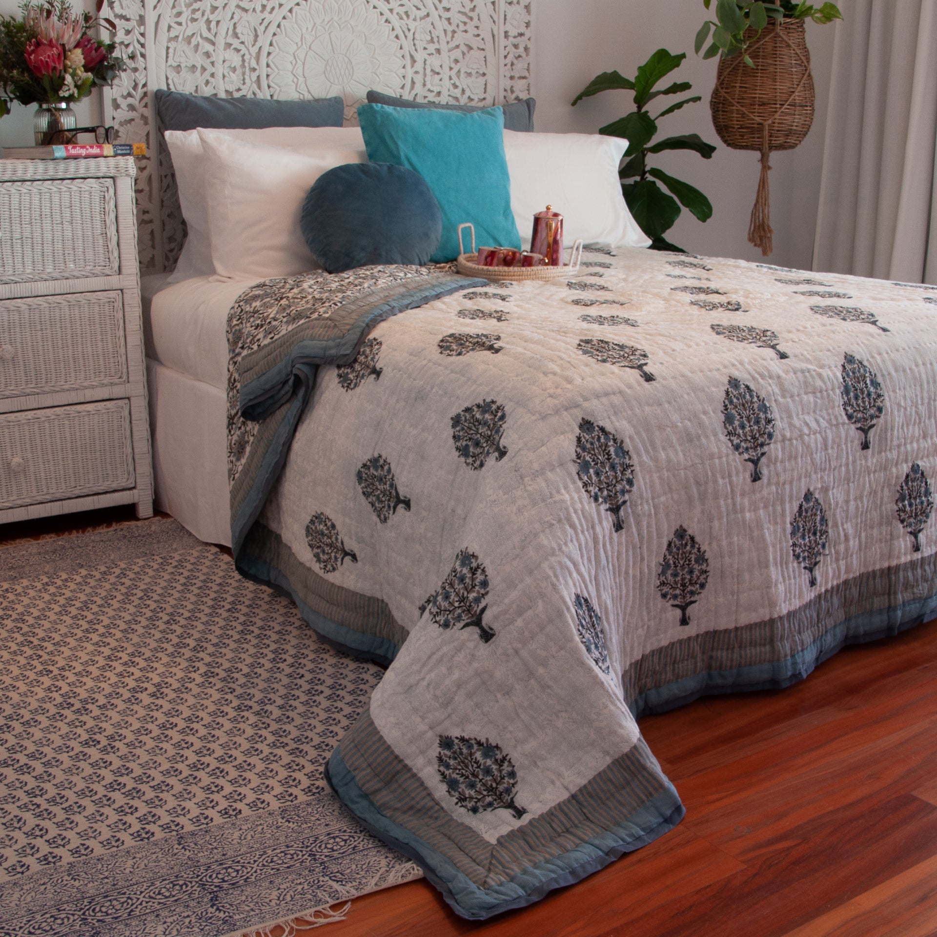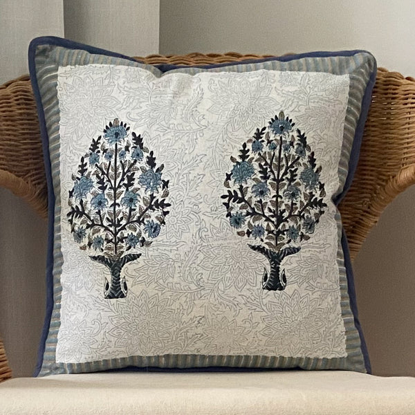 Hand Block Printed Cushion Cover - Madhubala Grey