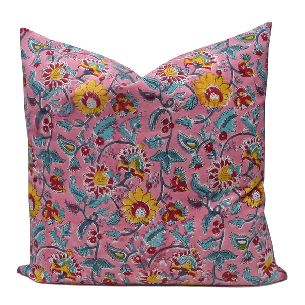 Hand Block Printed Cushion Cover - Phuljhari Pink