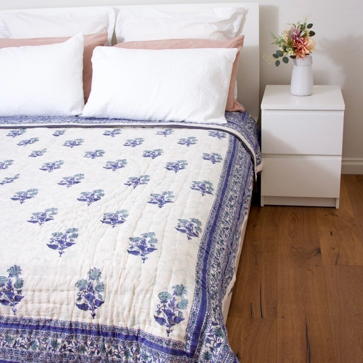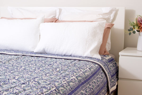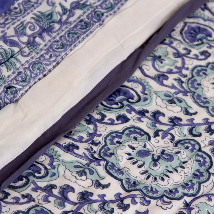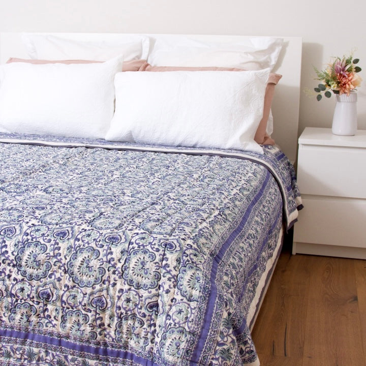 This pretty, super soft quilt is perfect as a single layer in warmer weather and as an extra layer in cooler times.  Made from 100% premium cotton voile, it has a Moroccan design in rich blues and soft greens with...View more