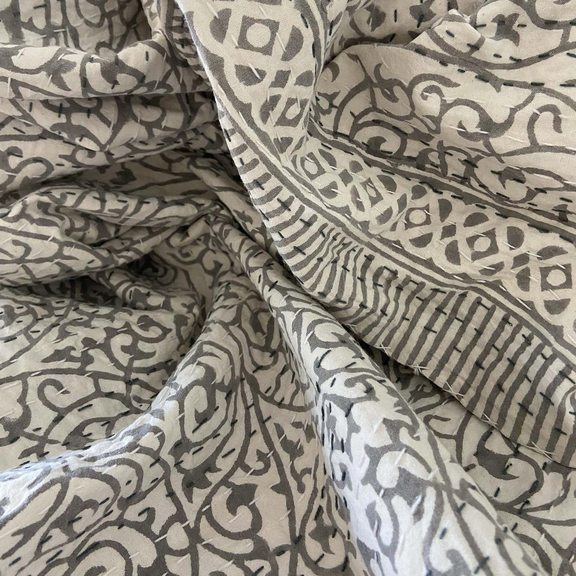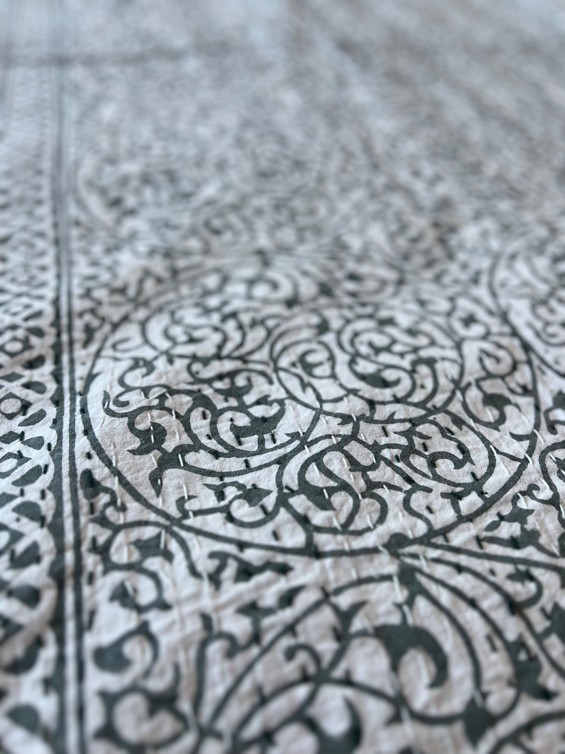Pure cotton Kantha quilt - Circular Vine - Fair trade and sustainable