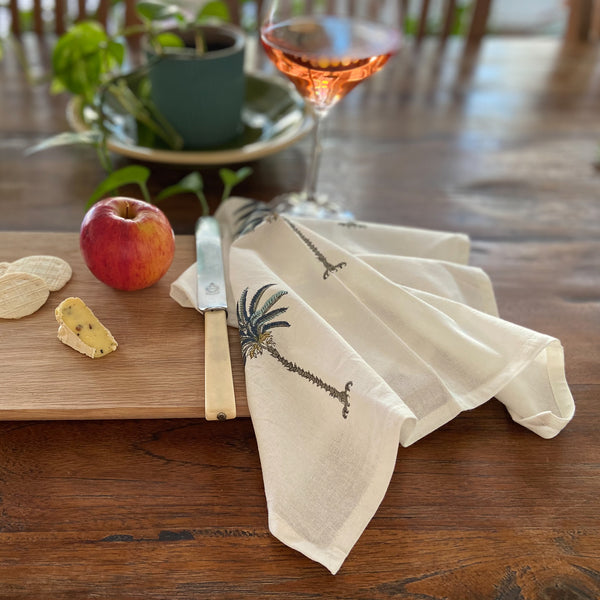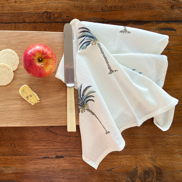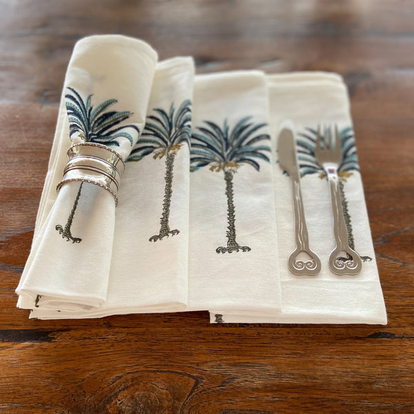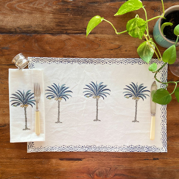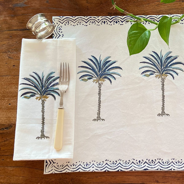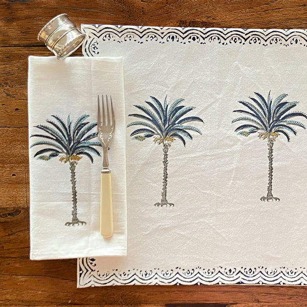 Hand Block Printed Napkins - Blue Palm Tree - 4