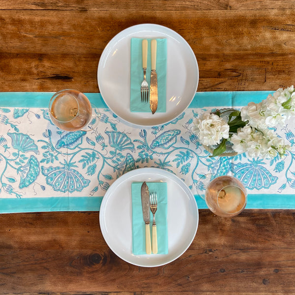 Product type: Hand Block Printed table cloths rectangular and round all sizes. Cornflower blue