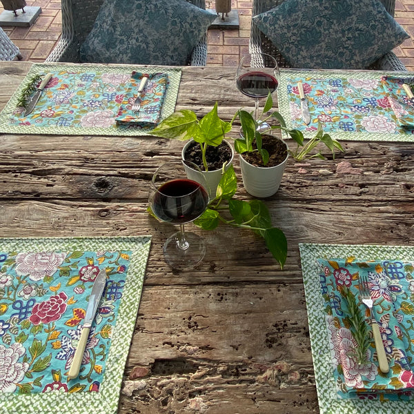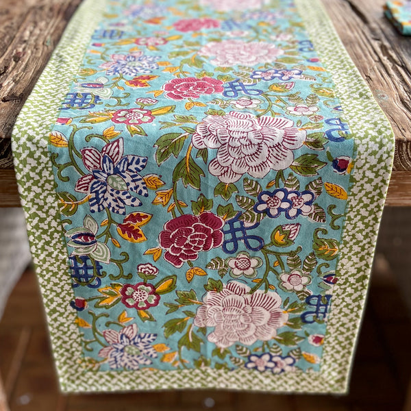 Hand Block Printed Table Runner - Jade