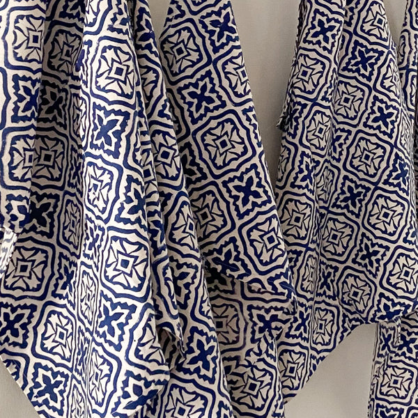 Product type: Hand Block Printed table cloths rectangular and round all sizes. Cornflower blue